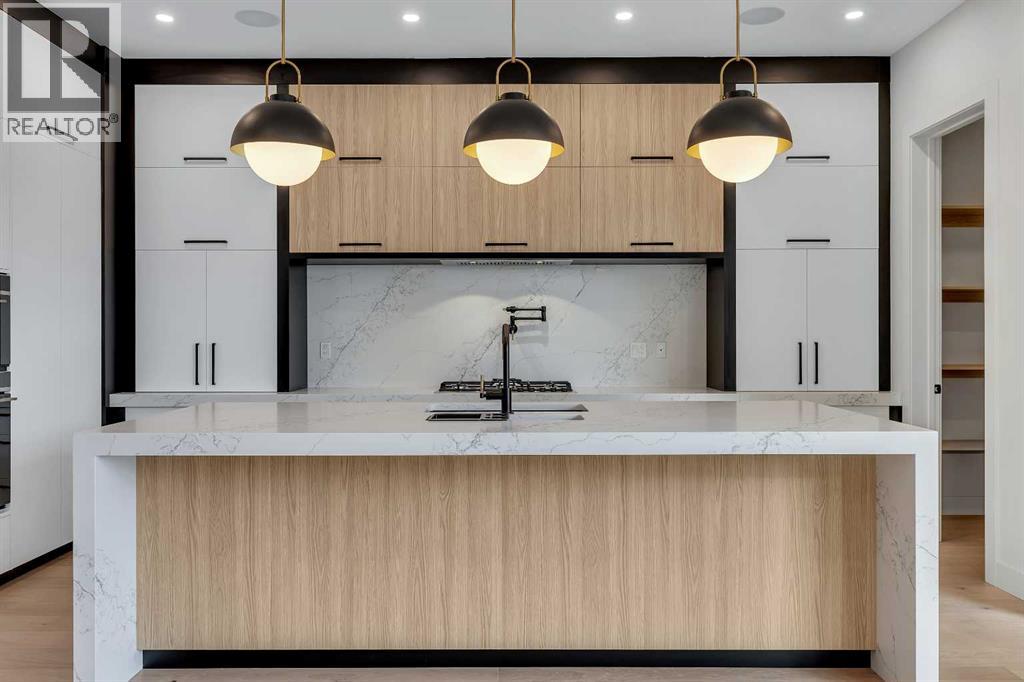 Welcome to HARMONY HAVEN — A stunning modern farmhouse that embodies the essence of contemporary living while embracing the warmth of rustic charm. Designed by PHASE ONE DESIGN and expertly built by DOMINIUM RESIDENTIAL, this home is perfectly situated in the desirable community of Currie, just 7 minutes from Downtown Calgary. With 3,256 square feet above grade and over 4,300 square feet of developed living area, HARMONY HAVEN offers ample space for both relaxation and entertaining. As you approach, the sleek, modern façade draws you in, promising the elegance that awaits within.The heart of this home is the exquisite kitchen, featuring a striking waterfall island, a through sink, and top-of-the-line Fisher & Paykel built-in panel-covered fridge and freezer. Cooking enthusiasts will appreciate the natural gas stove with pot filler, convection oven, and speed oven/microwave, all complemented by stylish three-tone custom cabinetry illuminated by under-cabinet lighting.The spacious living room is designed for comfort, showcasing built-in shelving, a cozy fireplace, and a stunning lighting fixture that adds a touch of sophistication. This inviting space offers beautiful views of the picturesque streetscape, creating a serene atmosphere.Safety is prioritized with stairway lighting, guiding you throughout the home. The double car garage is fully finished with paint and epoxy flooring, featuring a charging point for your electric vehicle—perfect for the eco-conscious homeowner.HARMONY HAVEN is equipped with advanced technology, including rough ins for voice commands, wiring for cameras, four two-speaker zones, indoor ceiling speakers with woofers, outdoor speakers for the deck, and myQ garage door openers for remote access. The fully landscaped yard is enclosed with premium vinyl fencing, providing both privacy and style.Retreat to the elegant ensuite, where you'll find heated floors, a spacious double vanity with custom mirrors, and a luxurious freestanding t ub. The second floor includes the luxurious primary bedroom and two large secondary bedrooms and bathroom plus a laundry room, storage close all perfect for family or guests.The loft floor consists of a bonus room, a large home office and an additional bedroom/flex room with a full bathroomThe breathtaking lower level is an entertainer's dream, featuring custom built-ins, a grand wet bar, and generous natural light. This versatile space also includes a large flex room and an additional bedroom.Located in one of Calgary’s premier inner-city communities, HARMONY HAVEN offers easy access to parks, dog parks, walking and biking trails, and over 12 schools catering to all age groups. This exceptional home seamlessly blends elegant design with modern conveniences, making it a must-see for any discerning buyer. Don’t miss your opportunity to claim this luxurious residence as your own! (31493607)