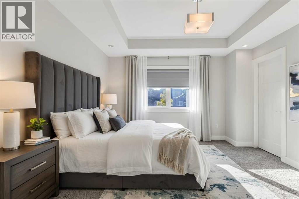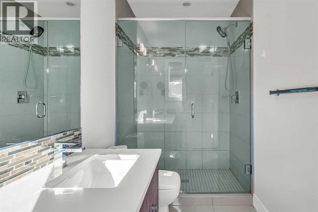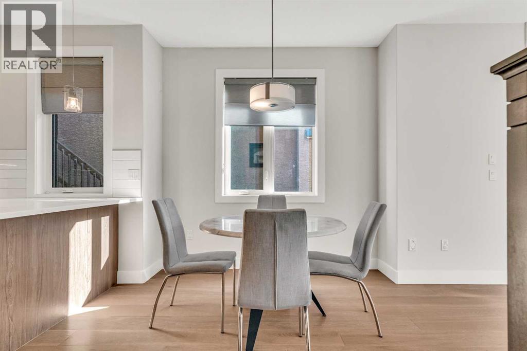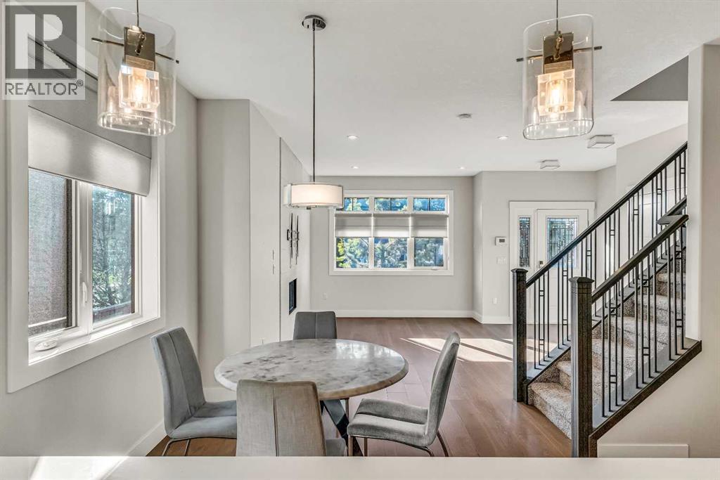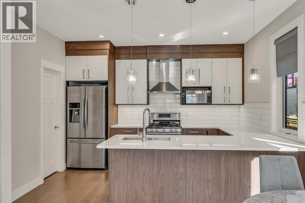 FRONT UNIT with WEST EXPOSURE, CENTRAL AC, and a thoughtful layout designed for comfort and flexibility. NATURAL LIGHT fills the main level where a front living room overlooks the street and a GAS FIREPLACE with floor-to-ceiling tile adds a relaxing focal point. Wide-plank HARDWOOD floors extend into a central dining area with a table and chairs included. The modern kitchen is appointed with QUARTZ COUNTERTOPS, a peninsula island, GAS STOVE, FULL HEIGHT CABINETS, CORNER PANTRY, and stainless steel appliances. A tucked-away powder room completes the main floor. Upstairs, a SKYLIGHT brightens the stairwell and illuminates the upper level. The primary bedroom is spacious with a COFFERED CEILING, WALK-IN CLOSET with BUILT-IN ORGANIZERS, and a LUXURIOUS ENSUITE featuring a DUAL VANITY and STAND-UP SHOWER. A second bedroom includes its own 4PC ENSUITE with skylight, creating a DUAL PRIMARY FLOORPLAN ideal for guests, roommates, or family members. The FINISHED BASEMENT expands the living space with a rec room perfect for movie or game nights, a THIRD BEDROOM that offers flexibility for guests, a teenager’s retreat, or a quiet home office, a 3PC BATH with a sleek stand-up shower for modern convenience, and a thoughtfully placed laundry area with washer/dryer included for everyday practicality. Outside, a PRIVATE FRONT COURTYARD creates ample outdoor space to barbeque and unwind, complemented by low-maintenance landscaping. A SINGLE GARAGE provides secure parking and storage. Situated in the established neighborhood of KILLARNEY/GLENGARRY, this home balances quiet residential streets with urban convenience. Westbrook LRT, Killarney Aquatic Centre, and numerous local parks are nearby along with schools, coffee shops, and restaurants on 17th Avenue. Quick access to downtown and major routes ensures effortless connectivity. This thoughtfully designed residence combines style, comfort, and a walkable location for a lifestyle that feels both connected and at ease. (31496101)