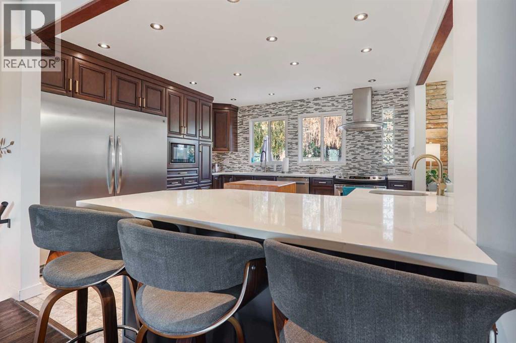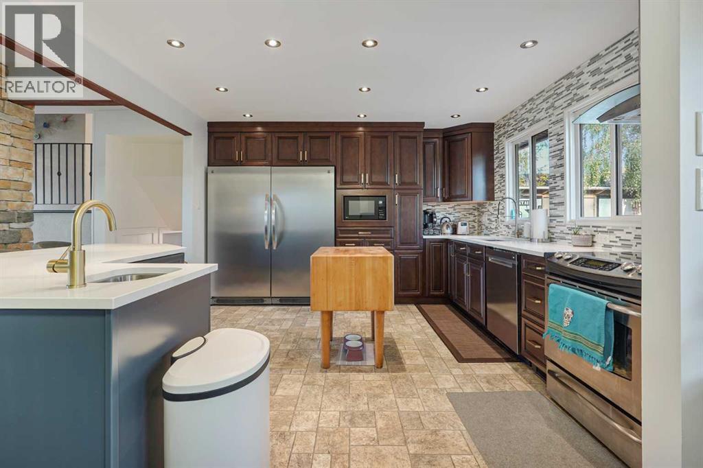 Welcome to this classically styled 3-level split offering the perfect blend of comfort, charm, and modern updates. With 4 bedrooms, 2 bathrooms, and a beautifully designed open-concept main floor, this home is ideal for families, professionals, or anyone looking to enjoy both indoor and outdoor living. Step into the open-concept main floor, where you'll find gleaming hardwood floors, a cozy gas fireplace, and a modern kitchen featuring stainless steel appliances and updated cabinetry—perfect for entertaining or quiet nights at home. The lower level has been thoughtfully transformed into a luxurious private primary suite, complete with a second fireplace, a spacious walk-in closet, and a recently renovated 4-piece ensuite. Enjoy spa-like features including a soaker tub, separate tiled shower, heated floors, and convenient in-suite laundry. The upper level offers three bright bedrooms and a full bathroom—ideal for children, guests, or flexible space like a home office or hobby room. From the dining area, walk out to your private backyard oasis, featuring a stunning 32’ x 16’ in-ground pool, composite decking, an outdoor change room, permanent holiday lighting, and lush professional landscaping—a dream setting for summer entertaining or quiet relaxation. The front yard offers beautiful curb appeal with a new front deck facing a nearby playground, and a professionally landscaped front yard that welcomes you home in style. Newer insulated siding provides the cost effective and comfort any family needs! This unique and well-cared-for property on the edge of the Sugar Bowl is ready for its next chapter—don’t miss your chance to make it yours. Book your private showing today! (31497222)