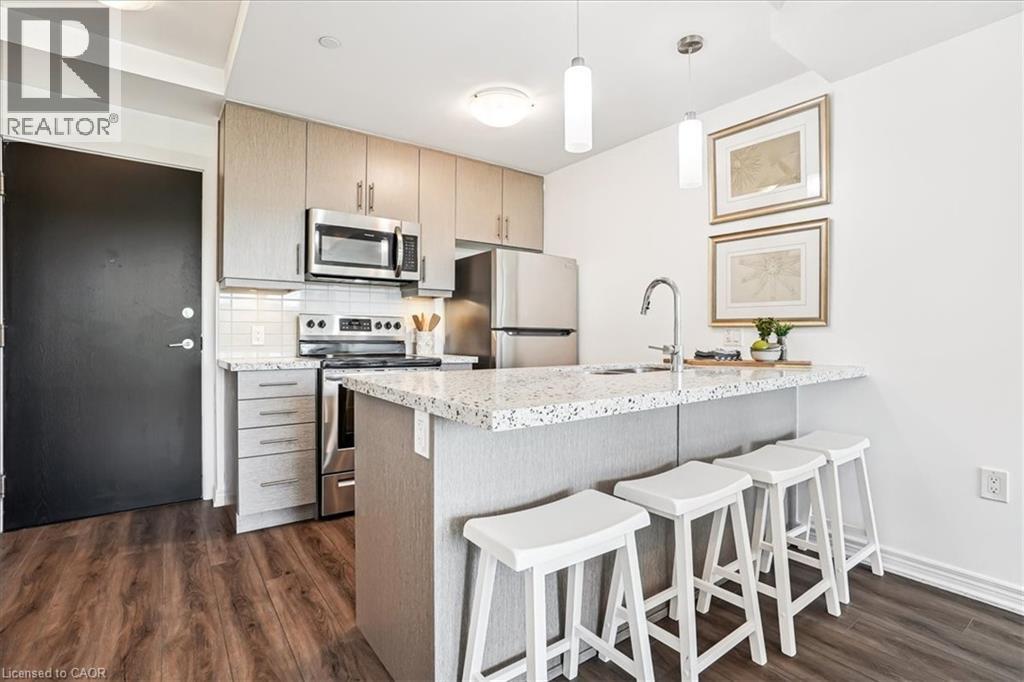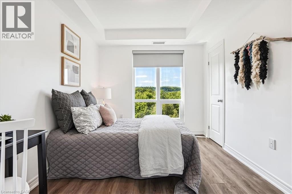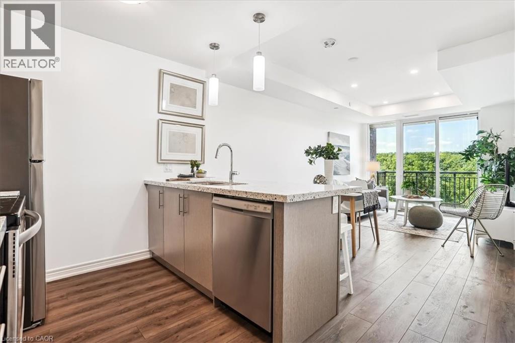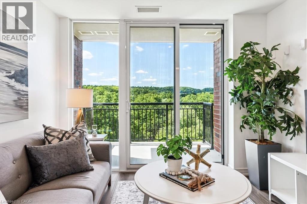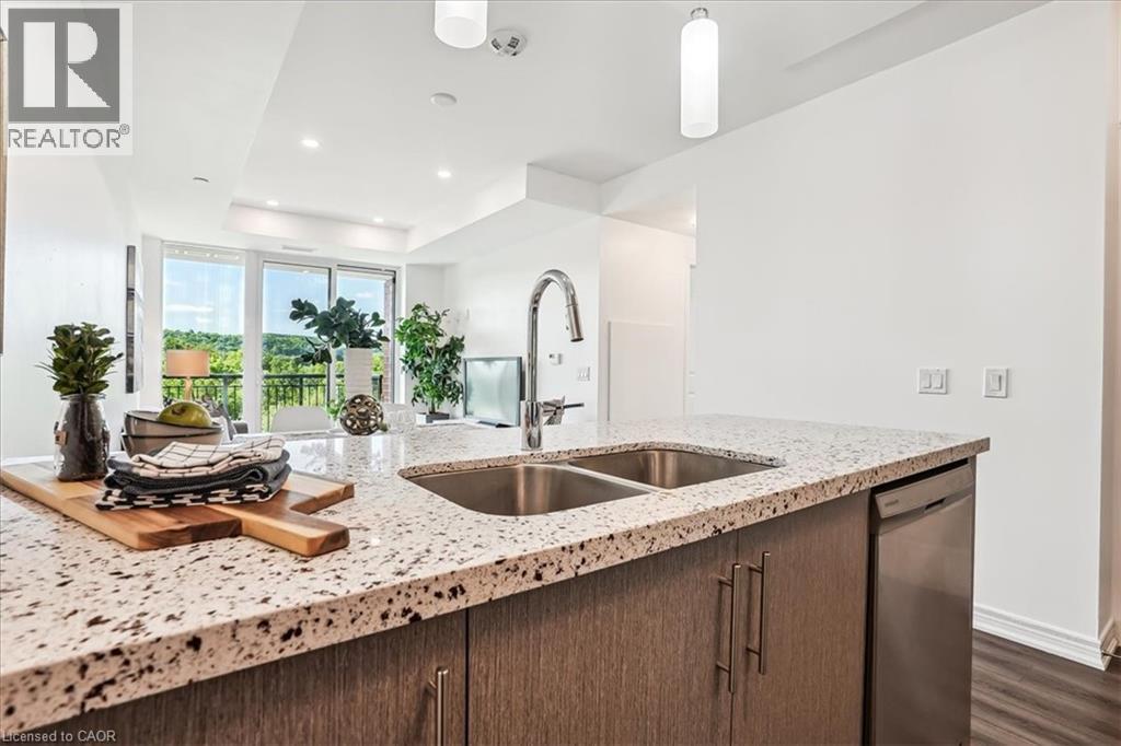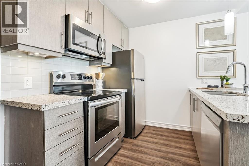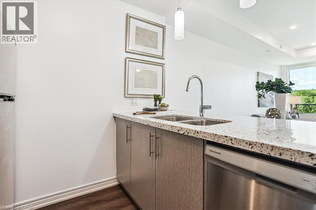 RAVINE VIEW , LUXURY CORNER SUITE 2 bedroom, 2 bathroom Suite. Spectacular SOUTHWESTERN view. OPEN CONCEPT living/dining room/kitchen with 9 ft. b.h. ceilings. STONE COUNTERS. Quality vinyl floor throughout main living area (NO CARPET) , ceramic in bathrooms. In suite, laundry & more. Features PATIO DOOR to BALCONY. Panoramic view of the escarpment. UNDERGROUND PARKING & LOCKER INCLUDED. Condo fees INCLUDE heat & A/C source. NO RENTAL EQUIPMENT. Fabulous amenities. Spacious lobby with concierge, fitness centre, BBQ terrace, guest suite, party room. Close to the Redhill Expressway & QEW, St. Joseph’s East Hospital, Eastgate Square & new GO station. All measurements approximate, sq.ft. includes balcony, as per builder's plan. (70016578)