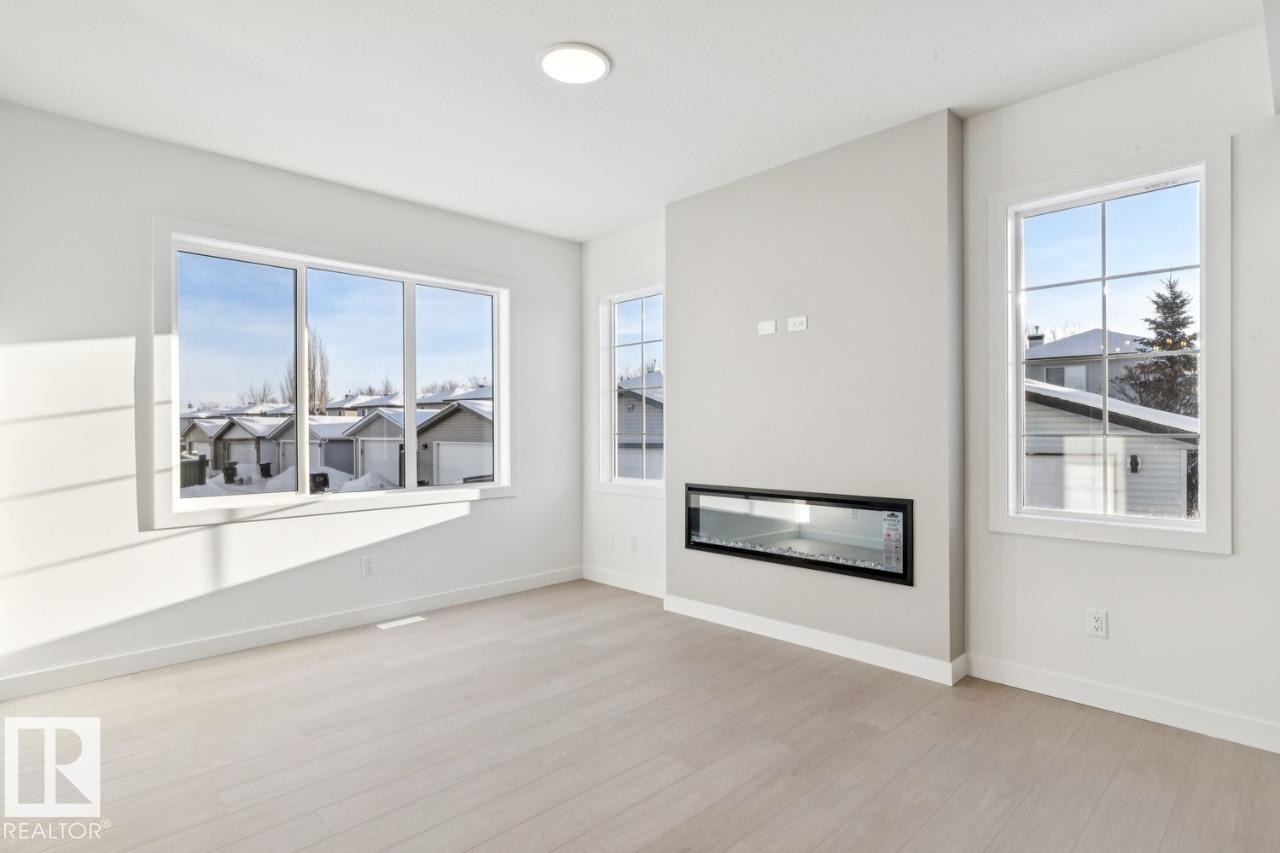 Discover timeless design and modern family living in this 2,000 sq. ft. Parkwood Homes two-storey, ideally located on a corner lot across from a park. Featuring 4 bedrooms and 3 baths, this bright, open home includes a main-floor bedroom and full bath—perfect for guests. The great room offers cozy charm with an electric fireplace, while the kitchen impresses with a large island, eating bar, walk-through pantry, and open dining area. A mudroom with built-in bench and hooks adds everyday convenience. Upstairs, the open-to-below staircase leads to a central bonus room, laundry, and three spacious bedrooms. The primary bedroom features a large walk-in closet and 4-piece ensuite. With a 9’ foundation, side entry, and extra windows for abundant light, this home blends comfort, functionality, and elegance. Photos are representative. (33690034)