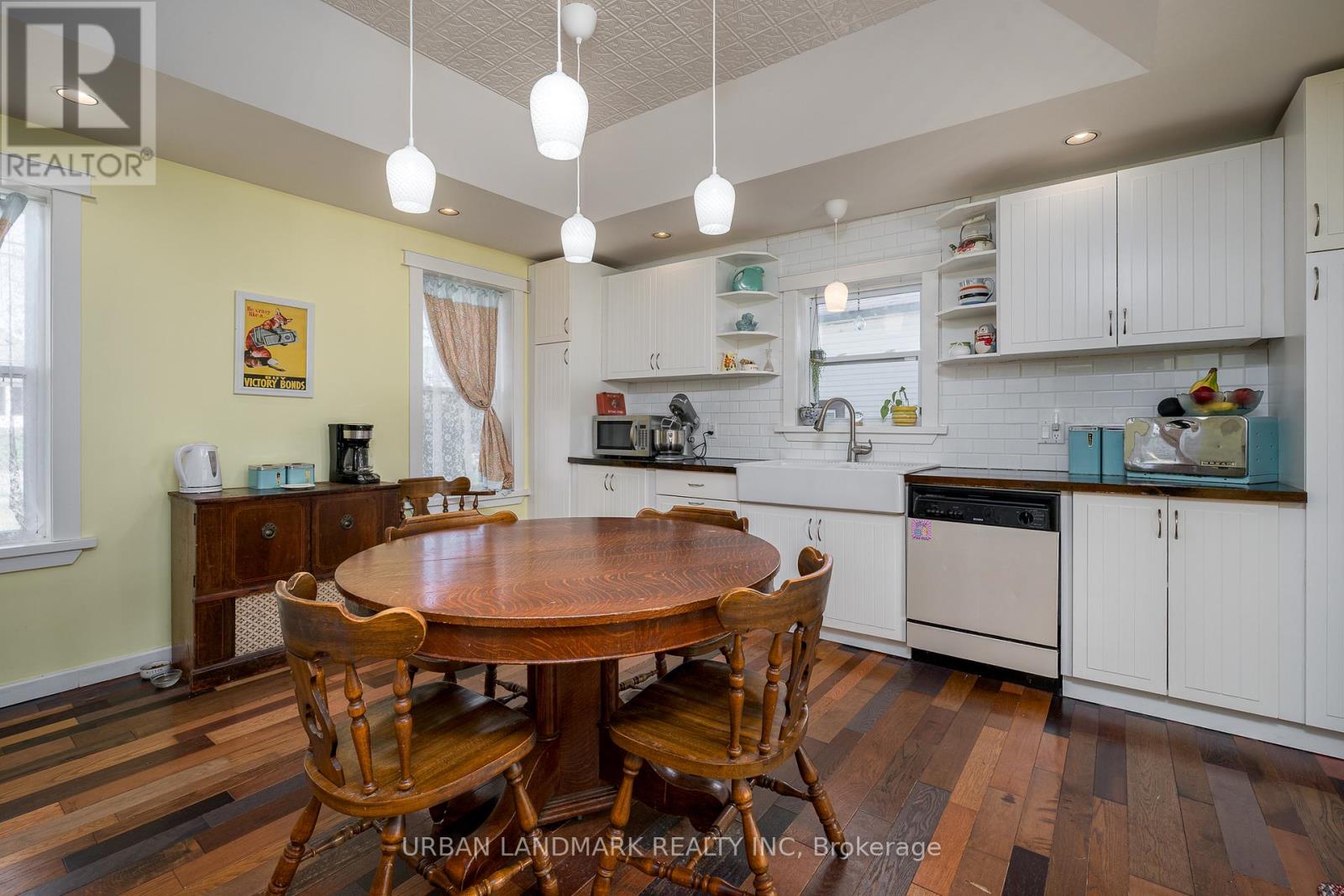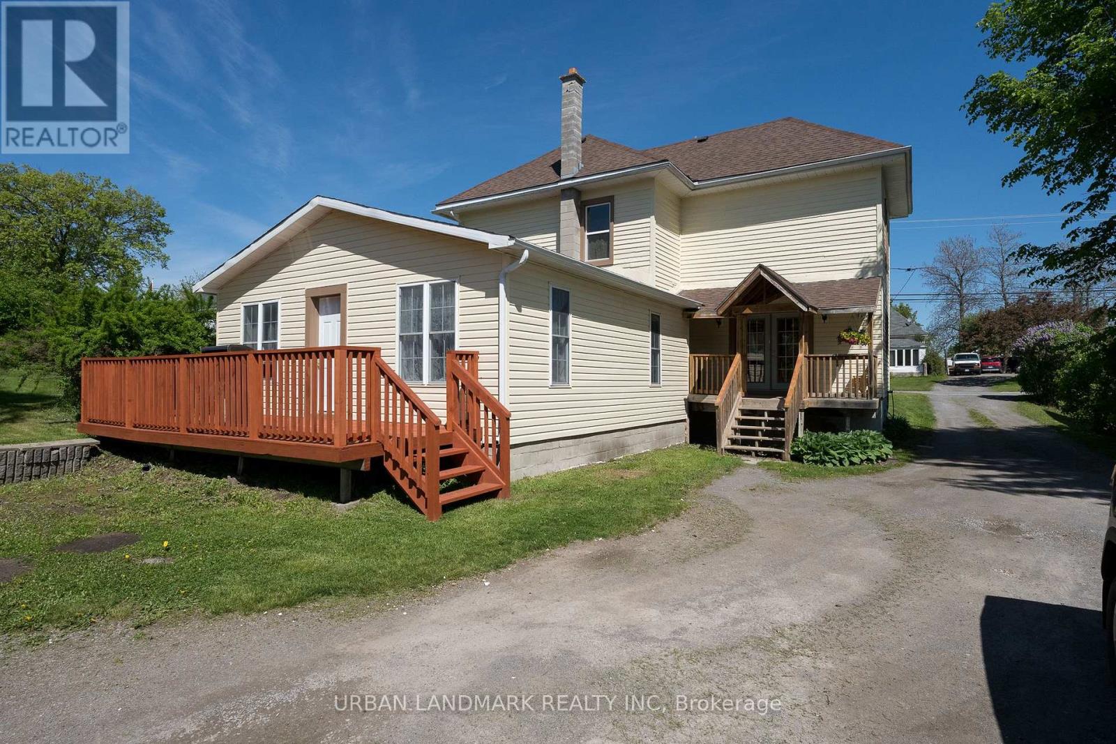 This expansive five-bedroom family home offers three bedrooms upstairs and two additional bedrooms in a main-level extension, all ideally located in the heart of Madoc and close to every amenity. Built in 1890, the approximately 2,000-square-foot residence blends timeless character with modern updates, including a newer roof, windows, and rear deck. Enjoy the convenience of municipal services, eliminating the need for a private well or septic system.The bright, open eat-in kitchen pairs beautifully with the home's neutral finishes, original wood trim, and solid staircase, creating a warm and inviting atmosphere throughout. Outside, the private backyard features a large two-car garage designed to accommodate larger vehicles, along with a versatile bonus space ideal for storage, a workshop, or a music room.Offering excellent income potential, the newer extension is already equipped with plumbing, making it well suited for the creation of a secondary suite to help offset mortgage costs. This is a fantastic opportunity for families seeking space, comfort, and flexibility in a central location. (41891343)