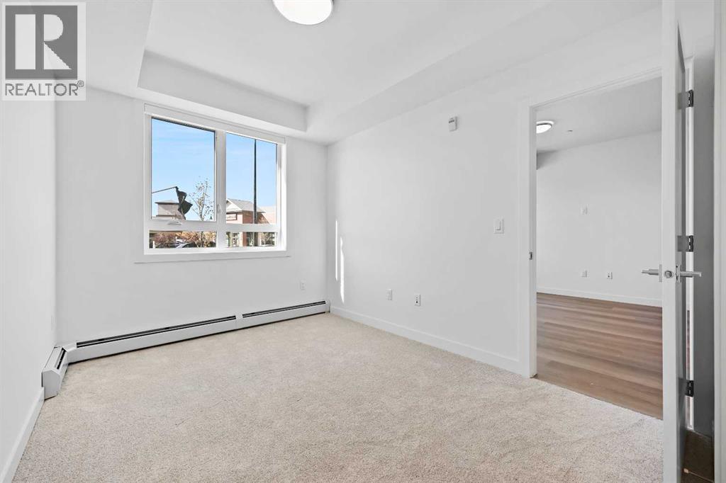 Welcome to The Monarch, a beautifully designed luxury condo community offering comfort, style, and thoughtful living. This bright 2-bedroom, 2-bathroom home features 853 sq. ft. of well-planned space with large windows that fill the unit with natural light and a south-facing balcony. The open-concept main living area is warm and inviting, highlighted by LVP flooring, while the modern kitchen offers quartz countertops, pot lighting, a built-in hood fan, and plenty of cabinet space. The primary bedroom provides excellent functionality with a spacious walk-in closet and private 3-piece ensuite, while the second bedroom is ideal for guests, a home office, or family, paired with a 4-piece main bathroom. A titled covered parking stall adds everyday convenience. Residents enjoy over 4,000 sq. ft. of amenities, including a resident lounge, fitness center, yoga studio, family room with large patio, pet wash station, two rooftop patios, and guest suites, plus two elevators per building. Family-friendly, pet-friendly, and ideally located steps from Coopers Promenade, parks, and schools. Experience elevated condo living at The Monarch. (31499919)