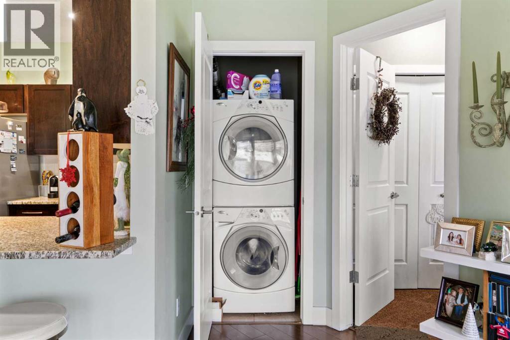 Enjoy breathtaking southwest views from this spacious 1,031 sqft two-bedroom, two-bathroom condo in the desirable Montgomery Place. With nine-foot ceilings, engineered hardwood floors, and in-floor heating, the home combines elegance with modern comfort. The open-concept living and dining area is perfect for hosting, featuring a kitchen with granite countertops, a peninsula island, stainless steel appliances, and a striking backsplash. Pot lights in the kitchen add a contemporary touch, while the stacked washer and dryer provide convenient in-suite laundry.This Montgomery condo unit is stunning and both bedrooms are generously sized. The two full bathrooms feature beautiful granite countertops. Step out onto the large southwest-facing balcony with a gas BBQ hook-up and enjoy sunny afternoons with stunning views. Central air conditioning ensures year-round comfort, and the recently replaced fridge and range complement a unit where the paint has been redone and the walls, along with the entire home, have been meticulously cared for. The combination of hardwood and carpet flooring adds warmth and style, and the parking stall is conveniently located right by the elevator.This prime location puts you just steps from extensive bike paths, Edworthy Park, and the Bow River, with Children’s and Foothills Hospitals nearby. Shops and all amenities are close at hand, including NOTABLE – The Steakhouse, Market Mall just five minutes away, and Safeway only two minutes from your door. Downtown Calgary is 15 minutes away, Bowness Park 10 minutes, and the mountains are easily accessible, making this condo ideal for anyone seeking a modern, comfortable home with massive bedrooms, open-concept living, and spectacular southwest views. (31497973)