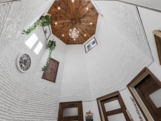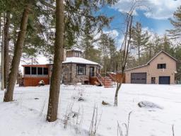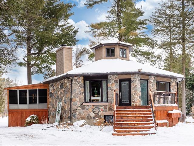 DOMAINE PRIVÉ AU MONT ST-GRÉGOIRE! CONSTRUCTION SOLIDE ET UNIQUE. Propriété octogonale exceptionnelle, bâtie en pierres de champs guillotinées par un artisan. Solidité remarquable, ambiance chaleureuse et énergie distinctive. Terrain agricole de près de 100 000 pi², entièrement paysager, avec pins matures offrant un décor spectaculaire été comme hiver. Comprend 2 chambres, 2 salles de bains, foyer au bois et grand solarium 3 saisons. Le sous-sol est aménagé avec salle d'exercice, sauna et entrée indépendante. Garage de style entrepôt (2023) immense, avec aire de vie à l'étage comprenant salle de bain complète et planchers chauffants... À VOIR (42910915)