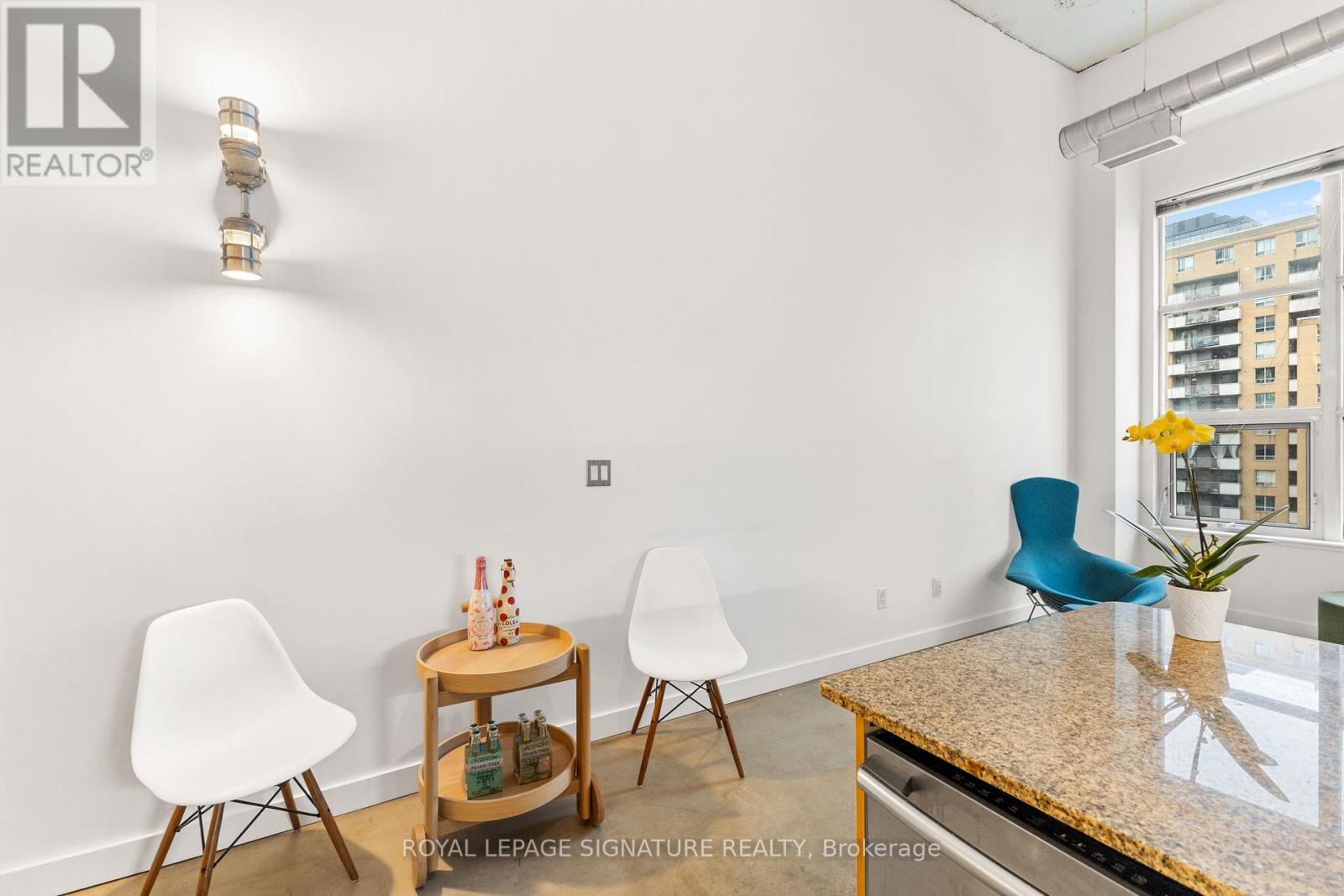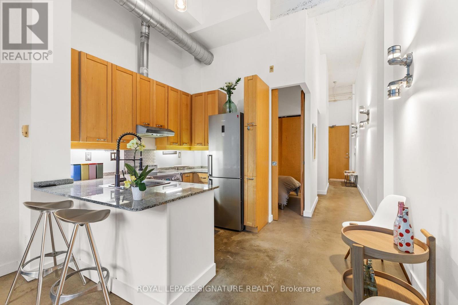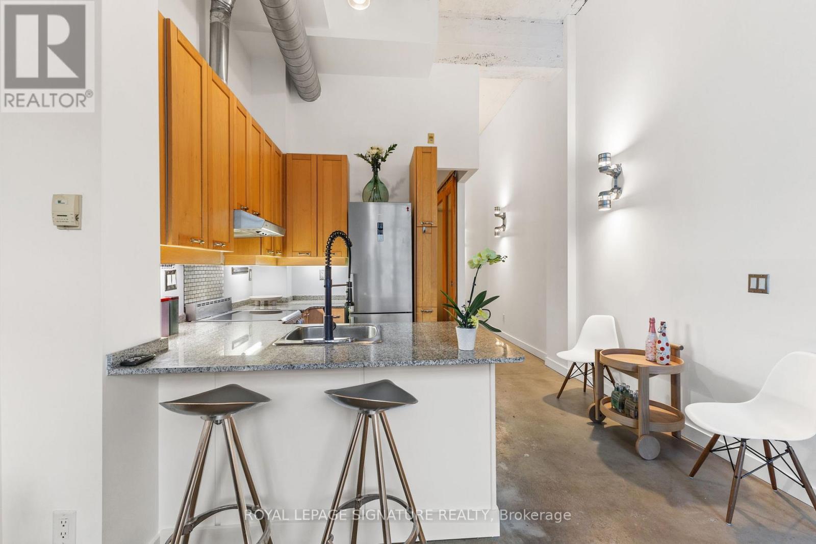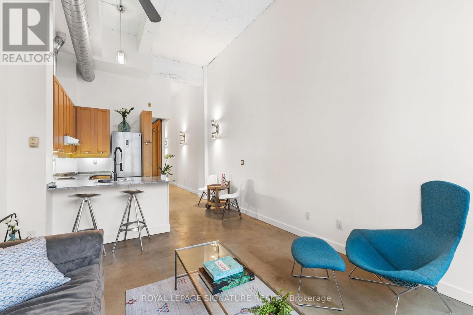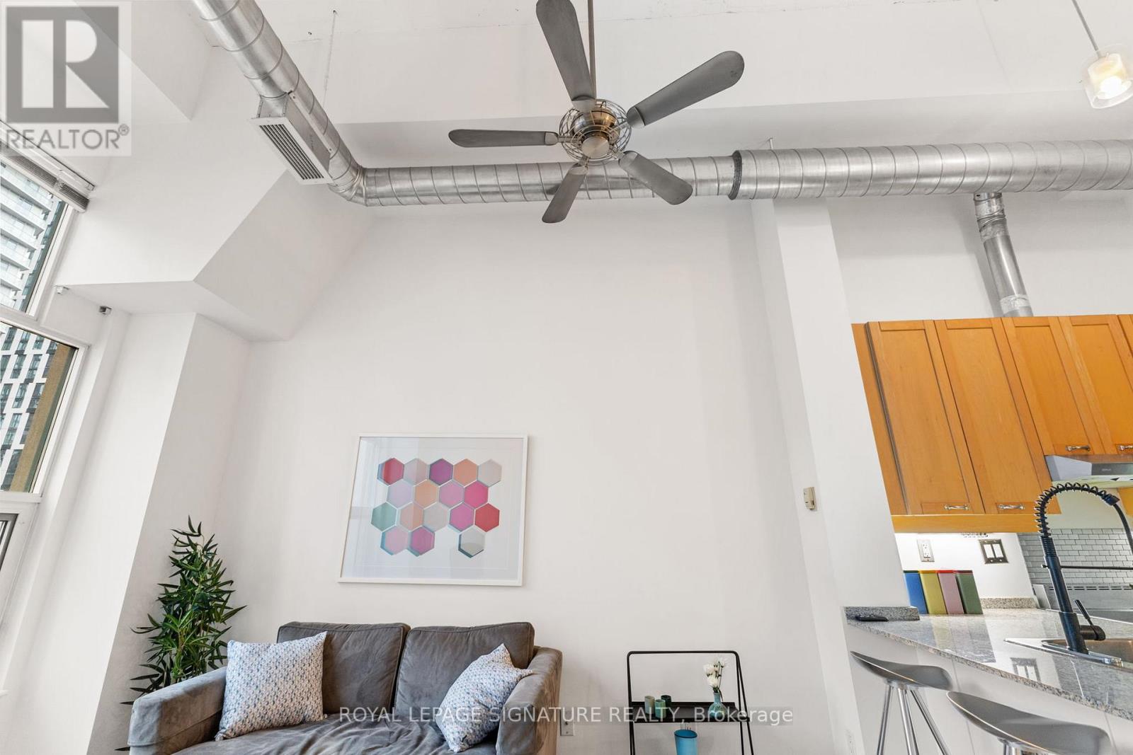Unit 404 at 135 Dalhousie Street, located in the iconic Merchandise Lofts, offers the perfect blend of industrial style and downtown Toronto living. This impressive 1-bedroom with open concept kitchen with soaring 14-foot ceilings, polished concrete floors, and a striking bank of south-facing windows that fill the space with natural light. The functional layout includes a spacious bedroom, a versatile den ideal for work or creative use, a modern 4-piece bathroom,ensuite laundry, and a dedicated locker for extra storage. Situated in the heart of the city,the Merchandise Lofts place you less than a 10-minute walk from Yonge-Dundas Square, TMU, the Financial District, Massey Hall, transit, shopping, and countless amenities. Residents enjoy world-class building features including a fully equipped gym, indoor pool, basketball court,games rooms, and an incredible rooftop patio complete with lounge areas, BBQs, and a dog-friendly play zone. Combining authentic loft character with unbeatable convenience, Unit404 delivers a true downtown lifestyle experience. (41903953)