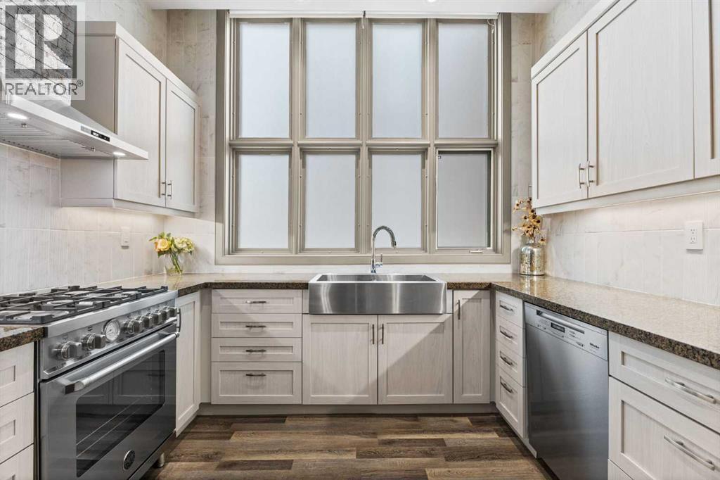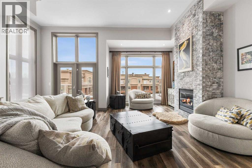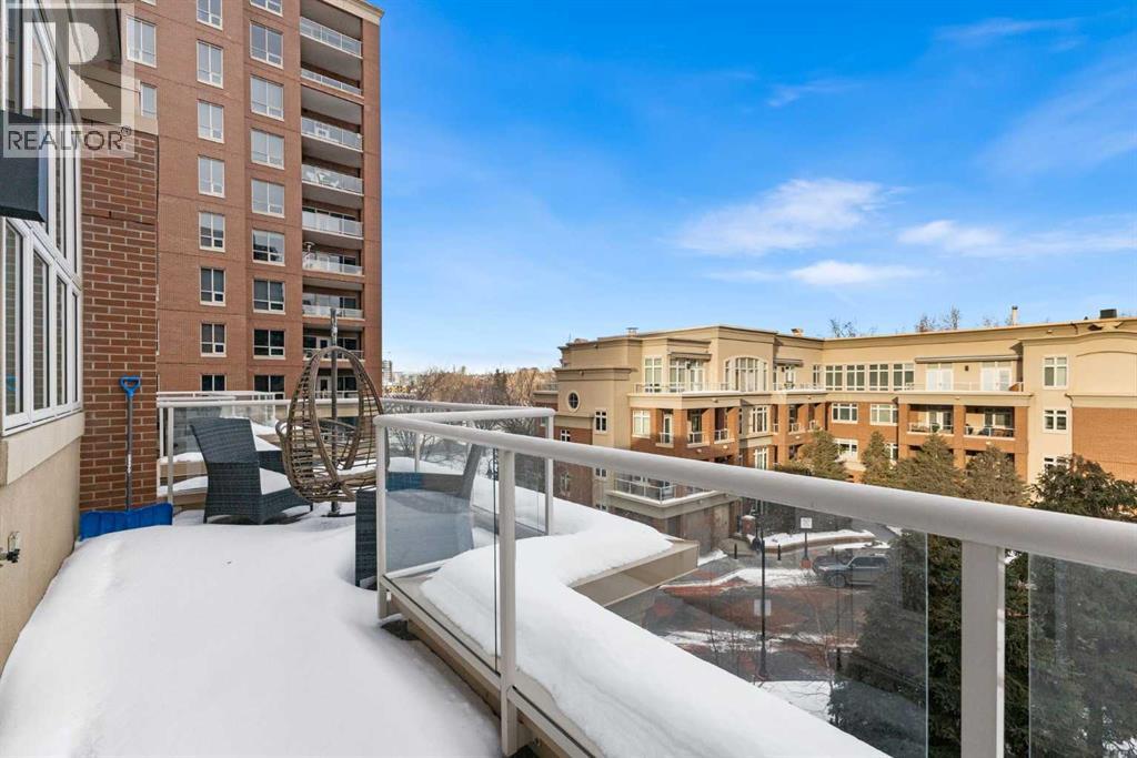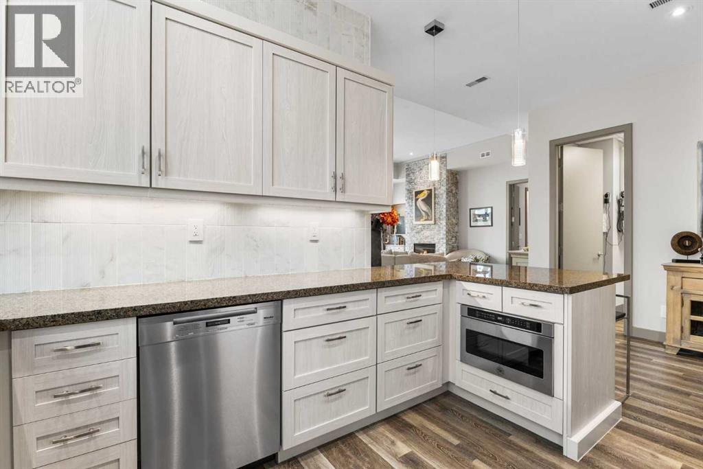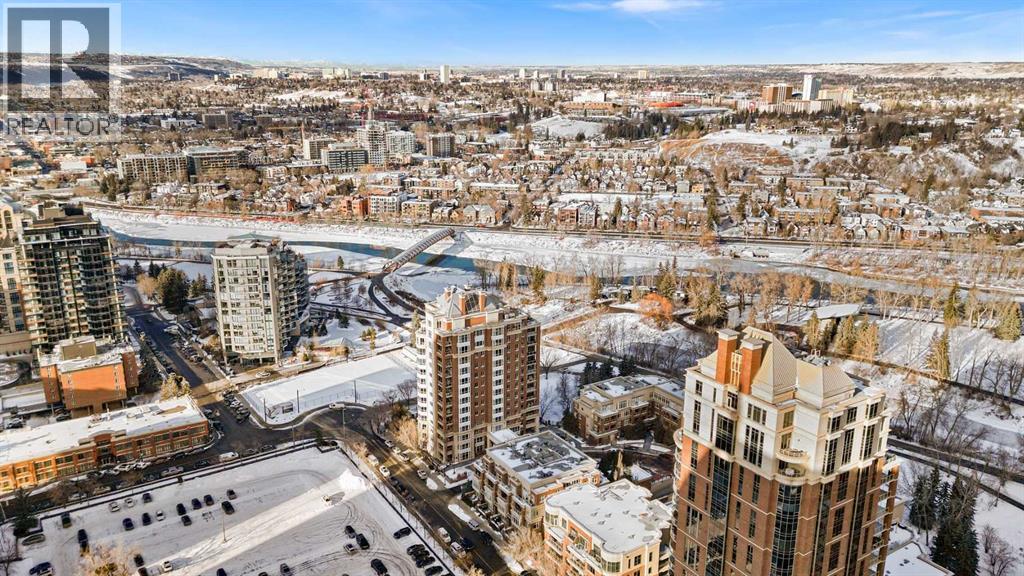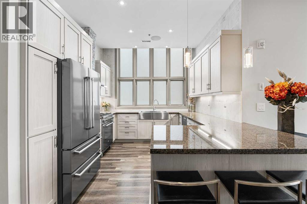 Exceptional completely renovated 2 bedroom, 2 bath penthouse residence offering over 1500 sq ft of luxurious living space in coveted Eau Claire, just steps to picturesque Prince’s Island Park & scenic Bow River pathways. This well-appointed condo presents hardwood floors, soaring ceilings & is drenched in natural light, showcasing a spacious living room with terrace access & anchored by a stunning floor to ceiling fireplace. A formal dining room adorned with an elegant chandelier affords ample space to entertain family & friends. The kitchen is beautifully finished with granite counter tops, eating bar, plenty of storage space & all new high-end stainless steel appliances. Just off the living room, the primary bedroom with balcony access features abundant closet space & private 5 piece ensuite with dual sinks, relaxing freestanding soaker tub & separate shower. The second bedroom & 3 piece bath are ideal for guests. Other notable features include in-suite laundry, 3 large terraces with north & west views, halogen recessed lighting, in-floor heat, central air conditioning, humidification through forced air & power blinds on high windows. Also enjoy the convenience of 2 titled underground parking stalls near the elevator, one titled storage space & recently renovated common areas. The central location can’t be beat – Bow River pathways & Prince’s Island Park & the Peace Bridge are just steps away plus downtown restaurants & amenities are close by. This elegant residence offers the ultimate in exclusivity & privacy with only 4 units on the floor & no noise from above. (31509820)
