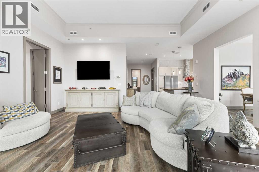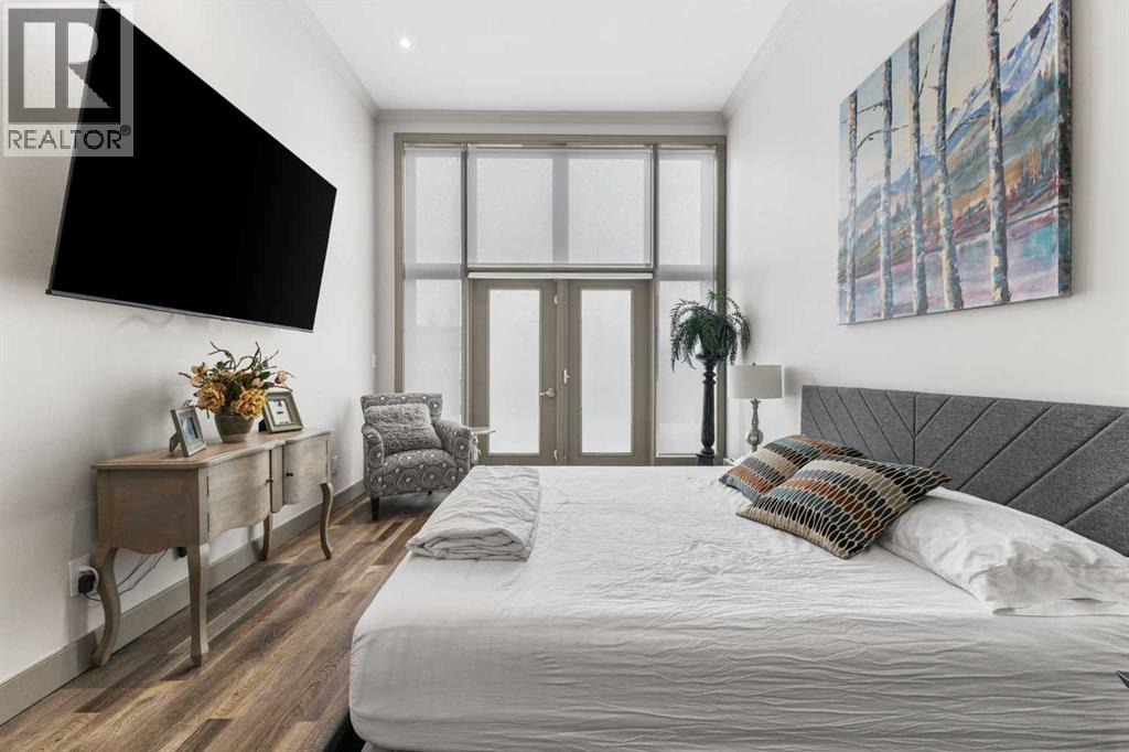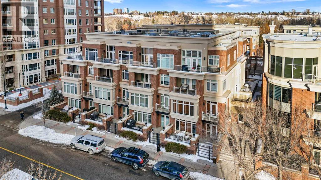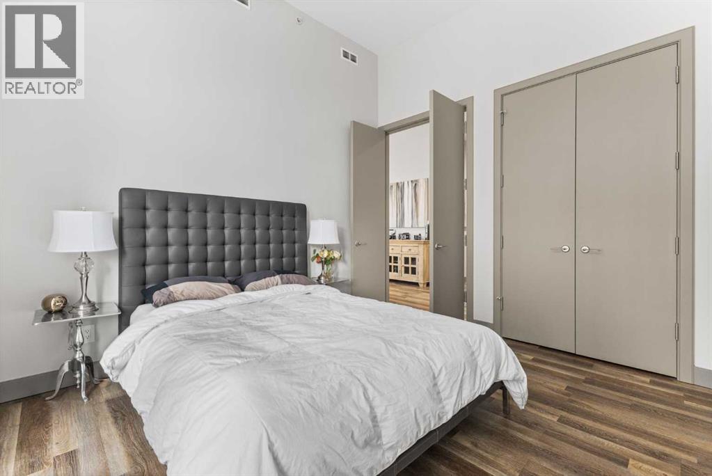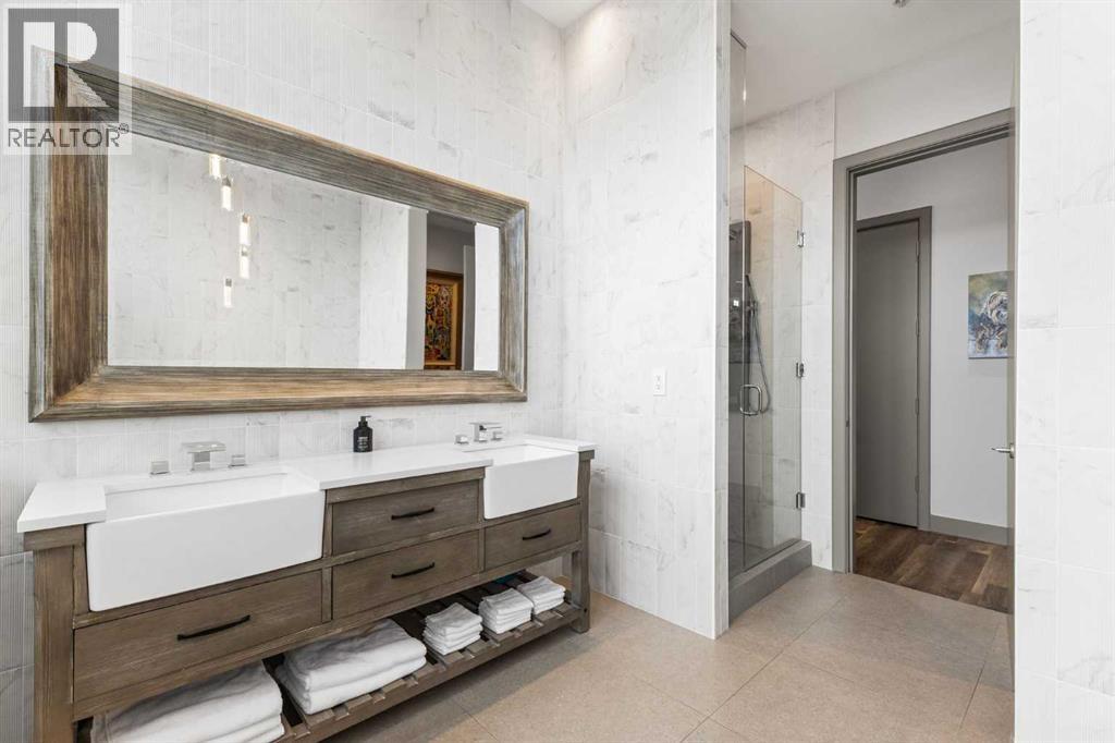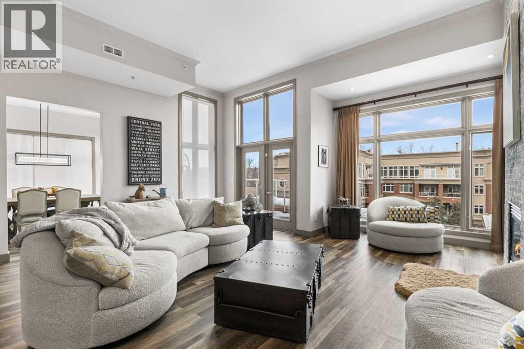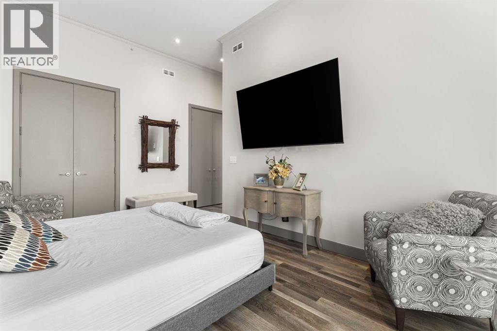 Exceptional completely renovated 2 bedroom, 2 bath penthouse residence offering over 1500 sq ft of luxurious living space in coveted Eau Claire, just steps to picturesque Prince’s Island Park & scenic Bow River pathways. This well-appointed condo presents hardwood floors, soaring ceilings & is drenched in natural light, showcasing a spacious living room with terrace access & anchored by a stunning floor to ceiling fireplace. A formal dining room adorned with an elegant chandelier affords ample space to entertain family & friends. The kitchen is beautifully finished with granite counter tops, eating bar, plenty of storage space & all new high-end stainless steel appliances. Just off the living room, the primary bedroom with balcony access features abundant closet space & private 5 piece ensuite with dual sinks, relaxing freestanding soaker tub & separate shower. The second bedroom & 3 piece bath are ideal for guests. Other notable features include in-suite laundry, 3 large terraces with north & west views, halogen recessed lighting, in-floor heat, central air conditioning, humidification through forced air & power blinds on high windows. Also enjoy the convenience of 2 titled underground parking stalls near the elevator, one titled storage space & recently renovated common areas. The central location can’t be beat – Bow River pathways & Prince’s Island Park & the Peace Bridge are just steps away plus downtown restaurants & amenities are close by. This elegant residence offers the ultimate in exclusivity & privacy with only 4 units on the floor & no noise from above. (31509820)