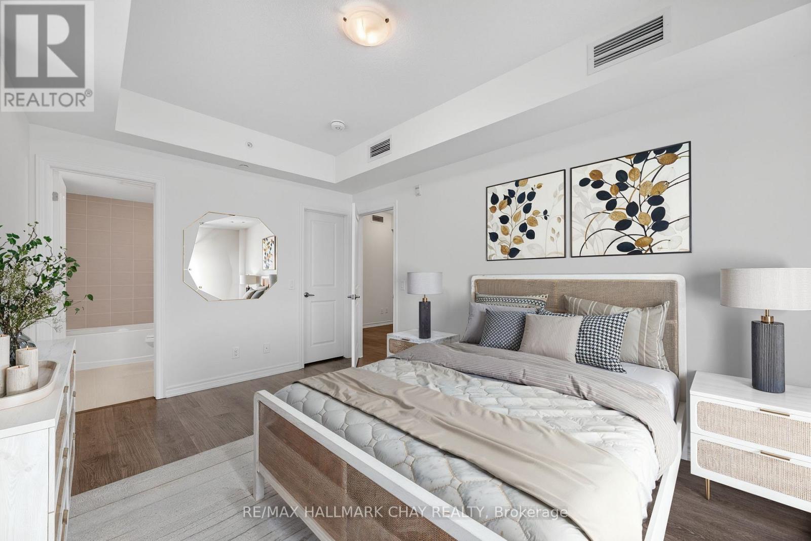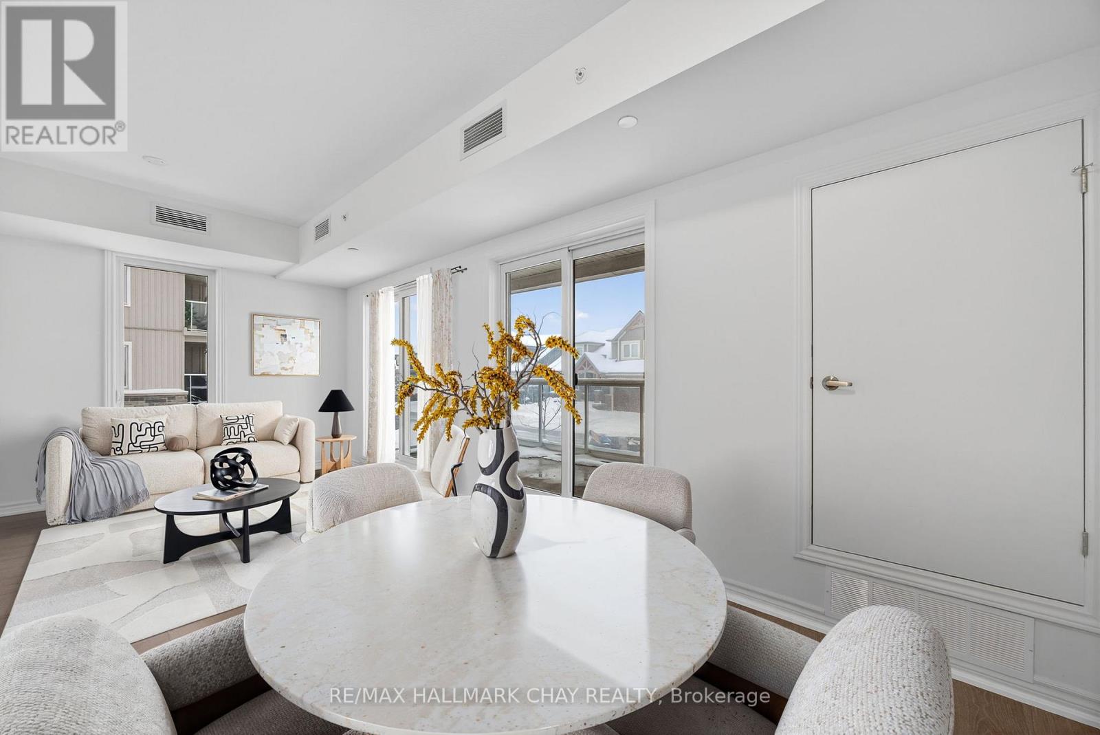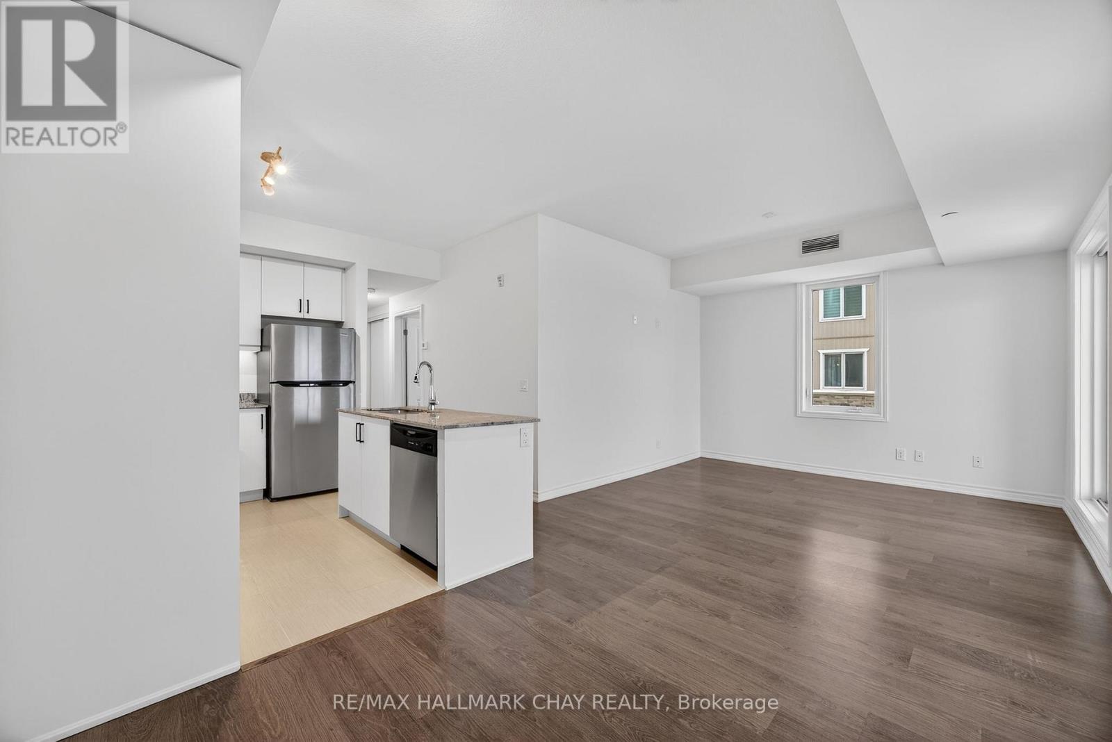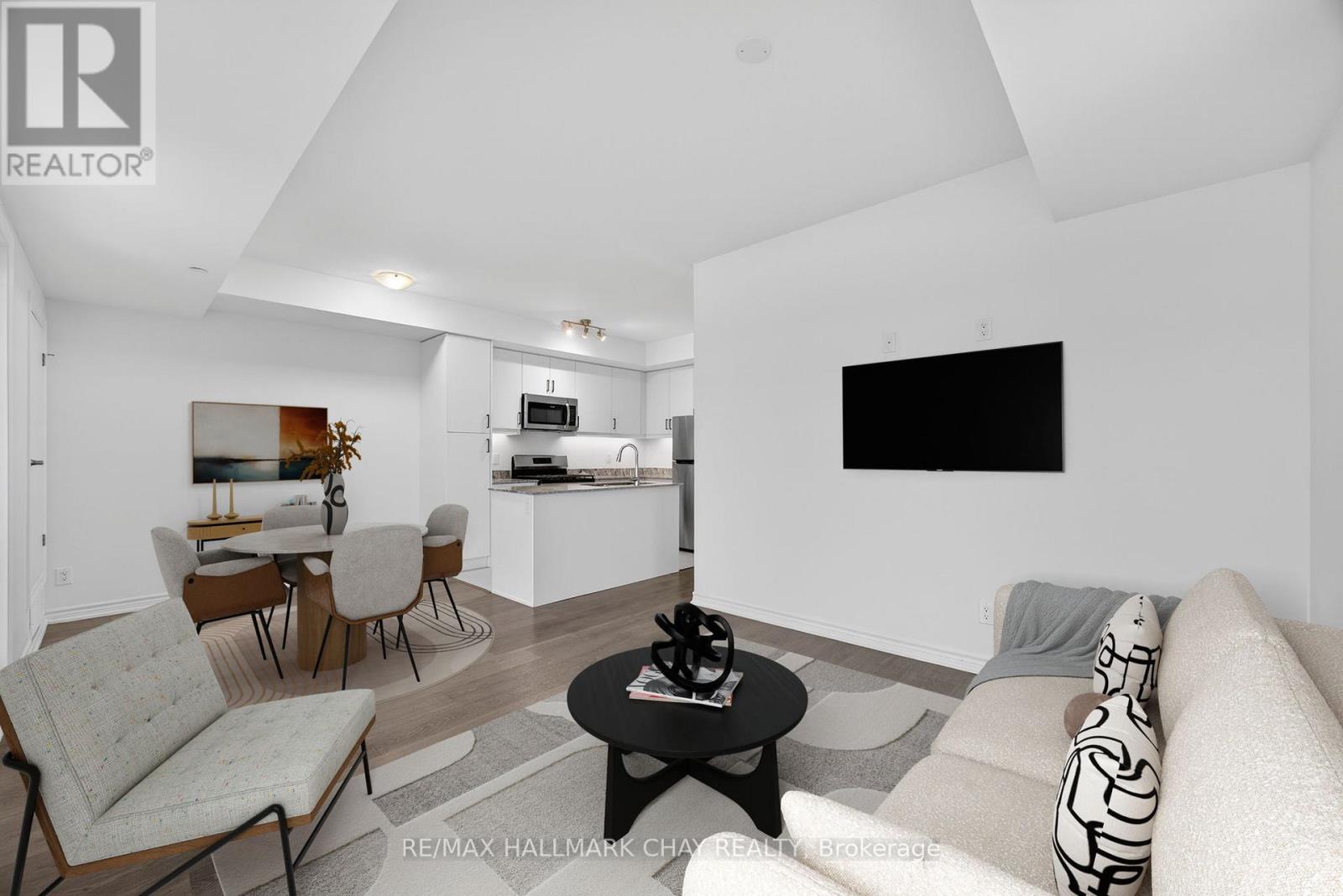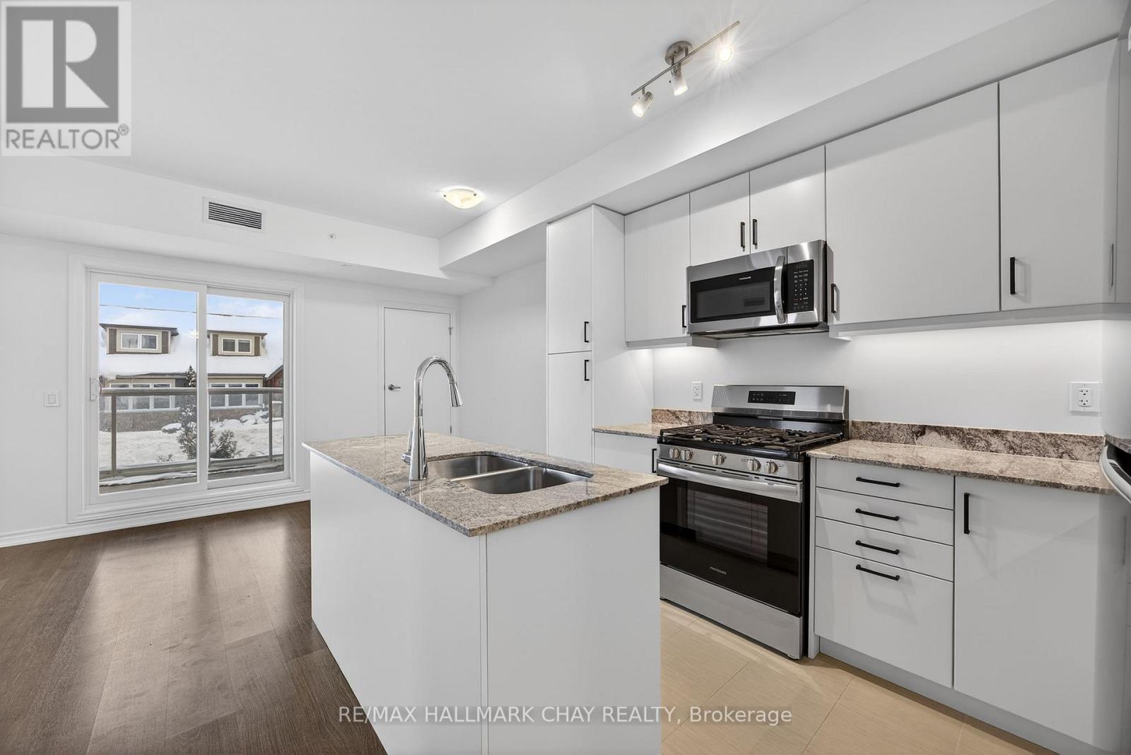 *NEVER LIVED IN UNIT*. Welcome to The Artisan at The View Condos - a beautifully designed 2 bedroom + den, 2 bathroom condo offering 1,015 sq ft plus a 136 sq ft balcony. Pristine and move-in ready, this suite has never been lived in and features brand-new, never-used appliances, delivering a true fresh-start living experience.The bright, open-concept living and dining area is filled with beautiful natural light, enhanced by 9-foot ceilings and large sliding glass doors that open to a spacious 17' x 8' balcony featuring framed glass railings and a gas BBQ hookup, ideal for relaxing or entertaining. The contemporary kitchen is finished with granite countertops, 4-inch granite edging, designer cabinetry, under-cabinet lighting, and stainless steel appliances, including a gas stove.The primary bedroom offers a generous layout with a walk-in closet and private ensuite featuring a granite-topped vanity and a shower/tub combination. The second bedroom includes a reach-in closet and is served by a second full bathroom with a frameless glass walk-in shower, ideal for guests or family. The separate den provides flexible space well suited for a home office or reading nook. Additional features include in-suite laundry, independent climate control, secure underground parking with key-fob access, and a large storage closet conveniently located beside the unit's front door, consistent with the building's design.Residents enjoy access to builder amenities including a gym, outdoor pool, men's and women's change rooms, and a playground, enhancing the lifestyle appeal for families, guests, and year-round residents alike. Located close to trails, golf, skiing, and downtown amenities, this never-lived-in condo offers modern comfort and low-maintenance living in a sought-after four-season destination. (41912125)