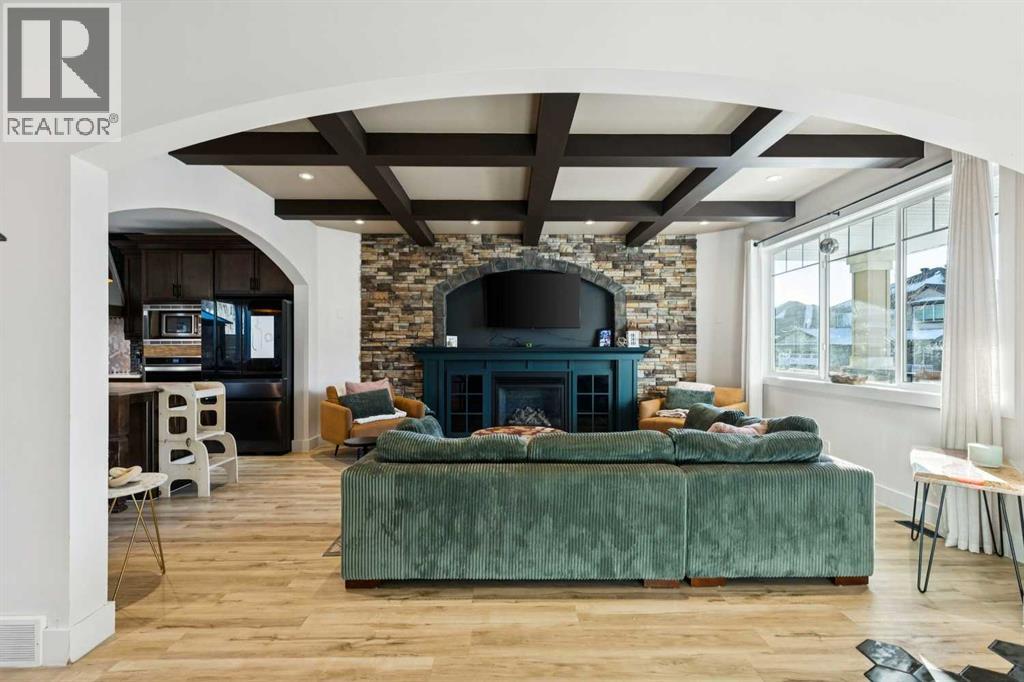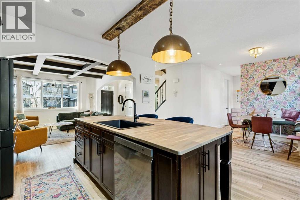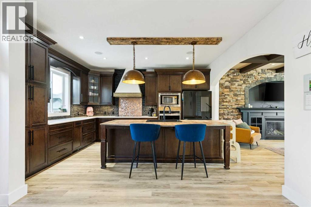 ***$24K PRICE IMPROVEMENT*** Welcome to this exceptional two-storey detached home in the highly sought-after Canals of Airdrie, offering over 2,100 sq ft of living space plus a fully self-contained carriage house(one bedroom/one bathroom/717 sq ft) above a triple car garage—perfect for multi-generational living, guests, or added flexibility.The main home features 4 bedrooms and 3 bathrooms, including a spacious main-level bedroom ideal for a home office or guest room. The entire main level is carpet-free, finished with luxury vinyl plank flooring throughout most of the home for a clean, modern feel.At the heart of the home is a gorgeous chef’s kitchen, complete with a large butcher block island, built-in oven, decorative hood fan, and stainless steel appliances—a dream setup for cooking and entertaining. The living room impresses with its beam ceiling and striking floor-to-ceiling rock fireplace wall, creating a warm and inviting space.Upstairs, retreat to the large primary bedroom (14’ x 16’) featuring a luxurious 5-piece ensuite with double sinks, a walk-in shower with bench, jacuzzi tub, and a spacious walk-in closet. The secondary bedrooms are all generously sized, making this home ideal for families.The carriage house offers its own full kitchen, living room, bedroom, and bathroom, providing incredible versatility—think grandparents, adult children, or long-term guests.Recent updates include new LVP flooring, new fridge, dishwasher, washer & dryer, new toilet in the ensuite, and a new hot water tank in the main house.Located directly across the street from the Canals, you’ll love the scenic pathways and water views, with Ralph McCall School (K–4) and C.W. Perry Middle School (5–8) nearby. Enjoy the convenience of being just a short drive to Tim Hortons, Sobeys, and other everyday amenities. (31512506)