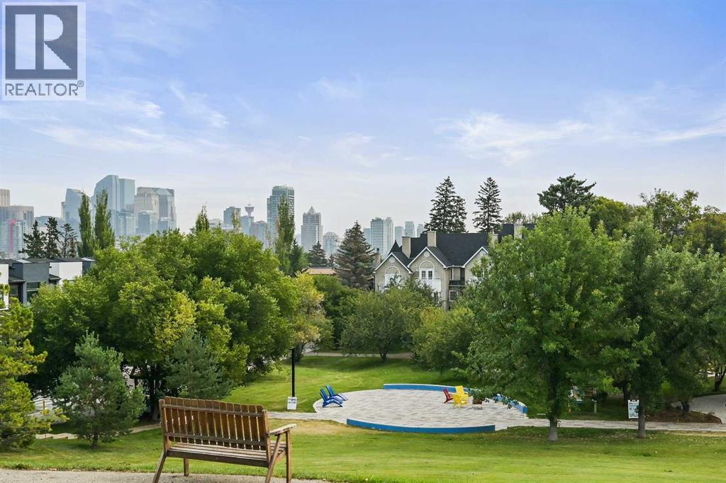 This Executive Townhome offers an elegant & updated living experience in a UNIQUE INNER-CITY LOCATION, FRONTING DIRECTLY ONTO BUCKMASTER PARK. Upon entering, you are welcomed by a ground-floor entrance, with dual entry with the Garage, a conveniently tucked away Powder Room, and a Bedroom which is currently being used as a beautiful media room. Its spaciousness offers versatile possibilities as an office, library, study, or guest room. The Second Level features an open-concept layout with natural light flooding throughout. Great view of the Park from every window! It boasts a large living room with a cozy fireplace & a separate dining room, which seamlessly flows into a very bright, & beautiful kitchen. The Huge kitchen is equipped with NEW QUARTZ COUNTERTOPS, NEW BACKSPLASH, NEW REFRIGERATOR, NEW MICROWAVE, NEW KITCHEN SINK & FAUCET. Enjoy here the convenience of Main Floor Laundry together with a breakfast nook leading to a good-sized private balcony/Deck with partial city view. BBQ GAS LINE. The Entire floor features Exquisite CROWN MOULDING & BUILT-INS plus NEW HARDWOOD FLOORING, which extends from the Main level all the way up to the upper levels excluding the bedrooms. Moving upstairs, you'll find a very large & bright level with abundant windows, ensuring plenty of natural light. The upper floor consists of a Large Primary Bedroom that accommodates a King size bed, Walk-in-Closet & your own private four-piece ensuite plus a 2nd large bedroom with an additional three-piece bathroom. The curtains in the kids' room have been replaced with high-end, neutral curtains that we think will be appreciated even more! This second bedroom also features a Juliette balcony overlooking the Park for endless hours of tranquilty & beauty. FEB 2026!! MOST RECENT UPGRADE!! THE ENTIRE UPPER LEVEL FLOORING REPLACED WITH NEW LUXURY HIGH END CARPETING (New photos coming soon). This modern FRESHLY PAINTED 1855sq ft residence has been meticulously renovated with contemporary finishes. Other Updates in recent years include NEWER ROOF(2016), HOT WATER TANK (2019), WATER LINES (2021), NEW HARDWOOD FLOORING(2024), NEW TOILET(Sept 2025), & ALL THE AFOREMENTIONED KITCHEN UPGRADES WHICH WERE ALL DONE IN SEPT 2025. Beautiful Home with FLAT CEILINGS through out, also comes with the luxury of a DOUBLE REAR ATTACHED GARAGE!. Location is truly paramount here, right across from Buckmaster Park & overlooking downtown Calgary. It's a prime inner-city location, minutes of downtown, with close walking distance to shops & restaurants along 17th Avenue SW. This immaculate townhome in the sought after community of Bankview offers the perfect blend of comfort, convenience, & tranquility. Great value for a beautiful home in a unique location that you will be proud to call home. The priceless advantage of Buckmaster Park at your doorstep truly enhances the living experience. We invite you to view this beautiful townhouse in a Well Managed complex .Check out the Virtual Tour! You will not be disappointed! (31513943)