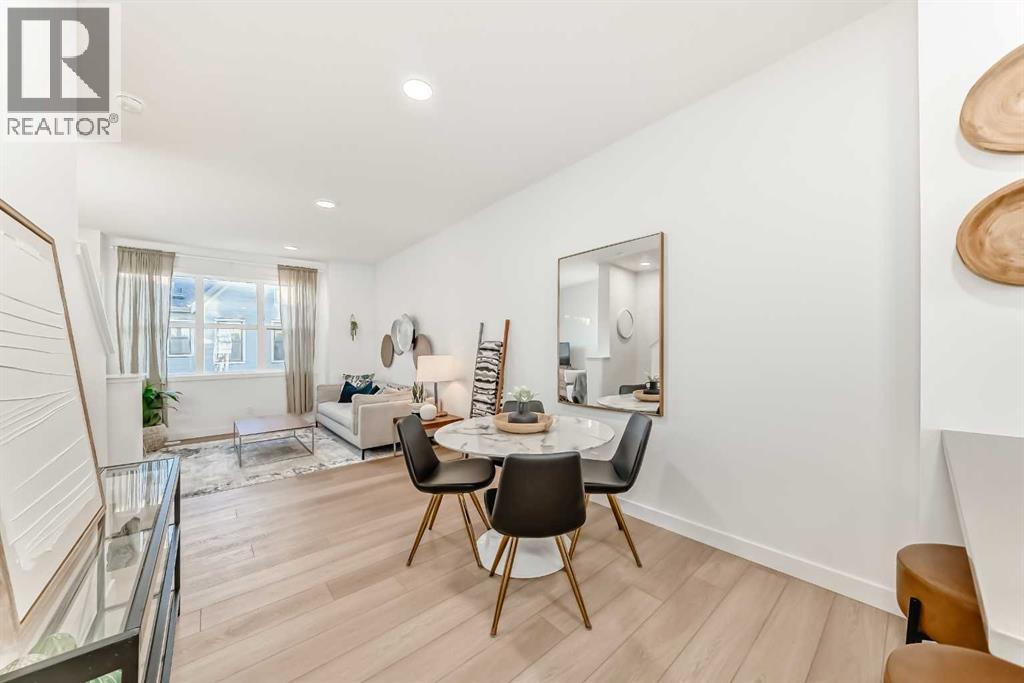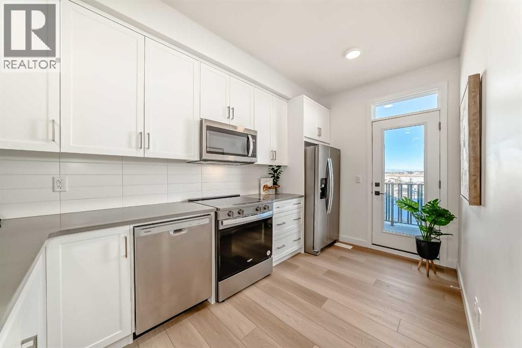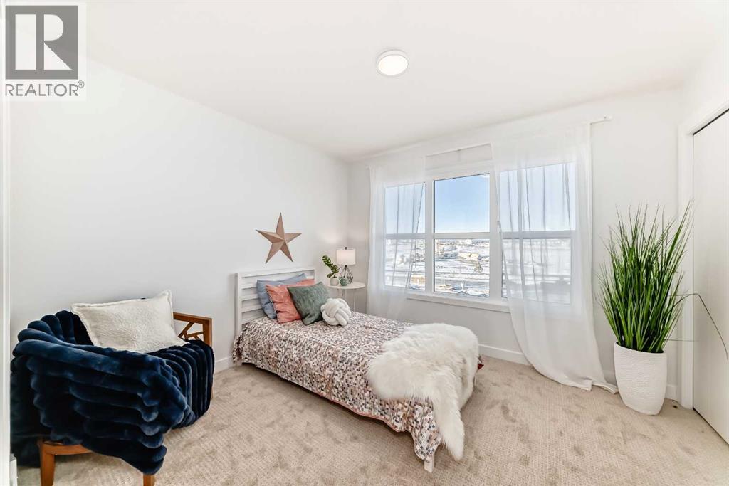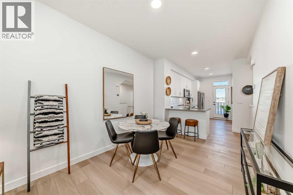 IF YOU’VE BEEN OVERLOOKING TOWNHOMES BECAUSE THEY ALL START TO BLUR TOGETHER, THIS ONE IS WORTH A SECOND LOOK. What sets it apart isn’t flash—it’s how intentionally the space is divided and how well it actually lives.This THREE-STOREY PLAN in Alpine Park is especially strong for buyers who want separation without wasted square footage. The entry level offers a FULL-SIZED DEN that truly functions—ideal for working from home, a bedroom for hosting guests, or creating space that doesn’t compete with daily living. A LARGE STORAGE ROOM and direct access to the SINGLE ATTACHED GARAGE quietly solve the practical pieces many townhomes gloss over.The main living level is open, calm, and well-proportioned. The kitchen anchors the space with warm white cabinetry, charcoal quartz, and a BREAKFAST BAR PENINSULA that handles real life without bottlenecks. Kitchen, dining, and living areas connect in a way that feels easy rather than compressed, and the FULL-WIDTH BALCONY adds genuinely usable outdoor space.Upstairs, DOUBLE MASTERS **TWO BEDROOMS—EACH WITH ITS OWN ENSUITE BATHROOM AND FULL-WIDTH CLOSET—**create flexibility that works for couples who don’t need a third bedroom, roommates who value privacy, or buyers thinking ahead to resale. Laundry is located on this level, right where you want it.With approximately 1,449 square feet above grade, modern construction, and the BALANCE OF THE BUILDER WARRANTY still in place, this home offers a low-maintenance entry into one of Calgary’s most design-forward west-side communities. Alpine Park continues to attract buyers who care about architecture, walkability, and long-term livability—and this plan fits that mindset precisely.This is a well-planned townhome, designed for buyers who want space to work, host, and unwind without compromise. If that sounds like you, THIS IS ONE YOU SHOULD SEE. (31514169)
