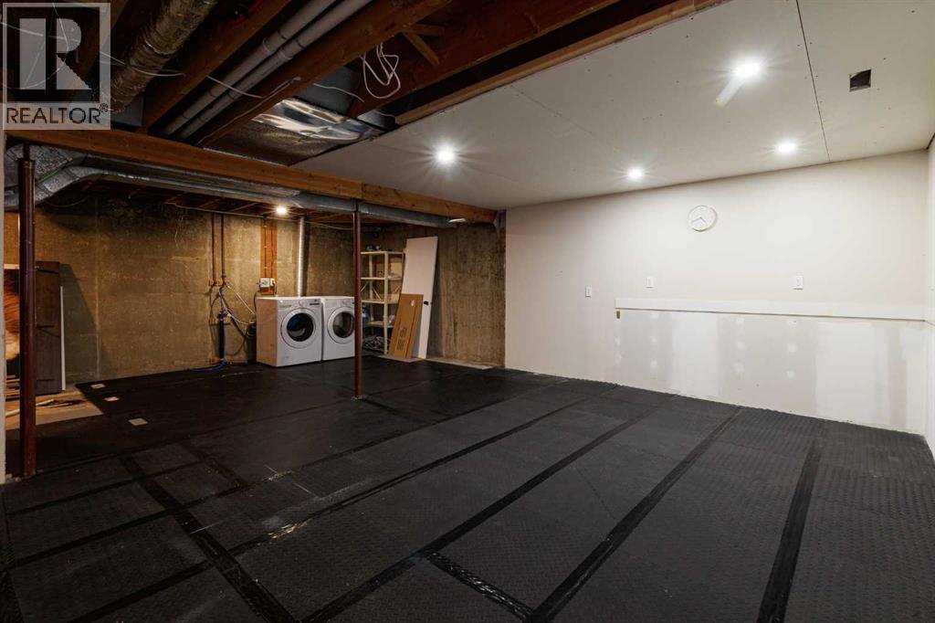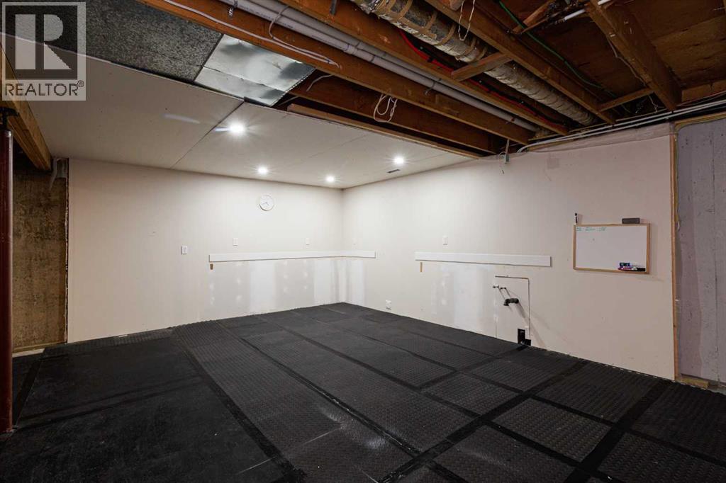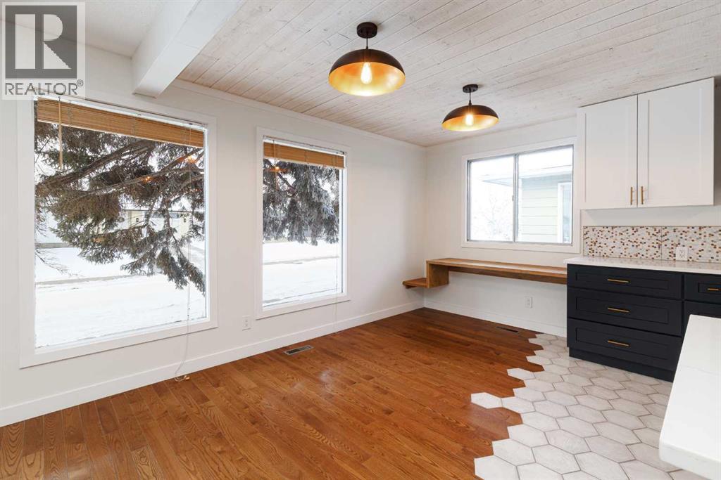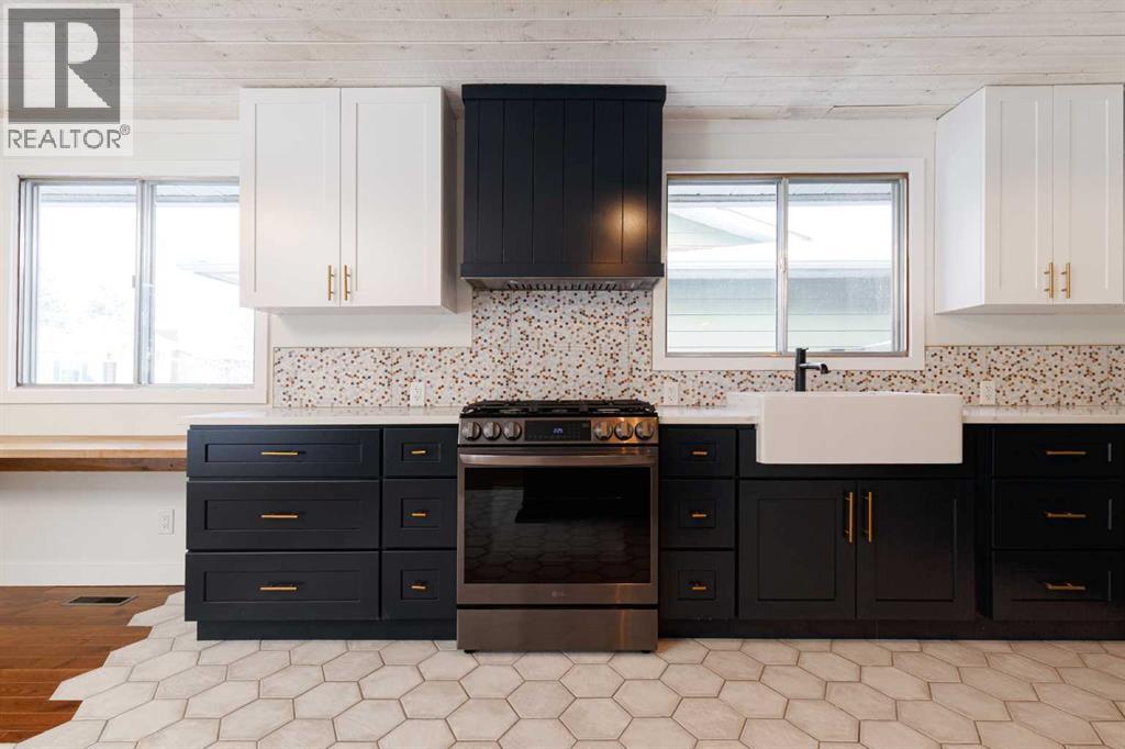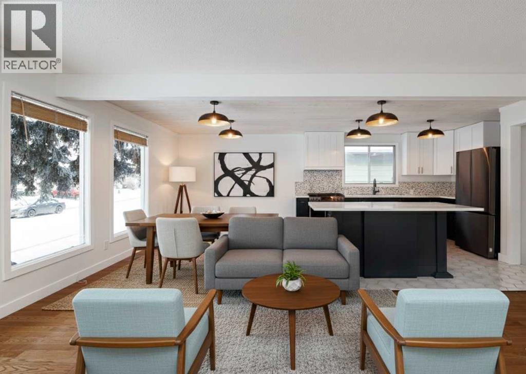 OPEN HOUSE - SATURDAY, JAN 31 2:00-4:00. Welcome to this stunningly transformed 4-level split in the heart of Queensland, where mid-century charm meets contemporary luxury. No expense was spared in this top-to-bottom renovation, offering 1,738 square feet of finished living space. The main floor is a showstopper, featuring an open concept layout with gorgeous hardwood flooring and a custom kitchen. The culinary space boasts sleek navy and white cabinetry, a large central island, quartz countertops, a classic farmhouse sink, and a unique hexagonal tile transition that seamlessly blends the kitchen and dining areas. Large windows and dual skylights flood the space with natural light, highlighting the modern wood plank ceiling and industrial-chic lighting. Relax in the expansive living room, anchored by a sleek, minimalist fireplace with a slate hearth. Retreat to the upper level where you will find three generously sized bedrooms, including the primary with two piece ensuite. The lower level provides even more versatility with a massive recreation room—perfect for a home theatre or play area—along with a fourth bedroom and a second full bathroom, making it an ideal space for guests or teenagers. The basement level houses the laundry and a large open space ensuring you’ll never be short of storage. A separate entrance walks up to the large private yard with mature trees and plenty of space to roam. An oversized double detached garage and parking space for your RV complete this property. This home is ideally located and is just minutes from schools, shopping, the ridge at Fish Creek Park, and an off leash dog park. Don’t miss your chance to own one of the most uniquely renovated homes in this established, quiet community! (31516148)