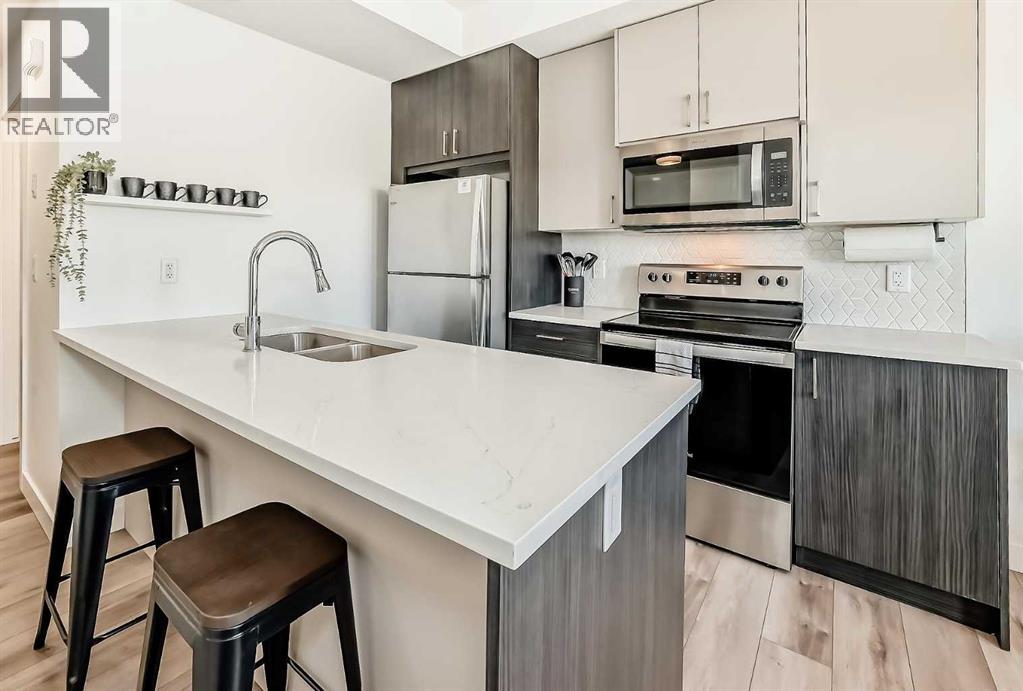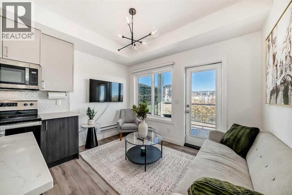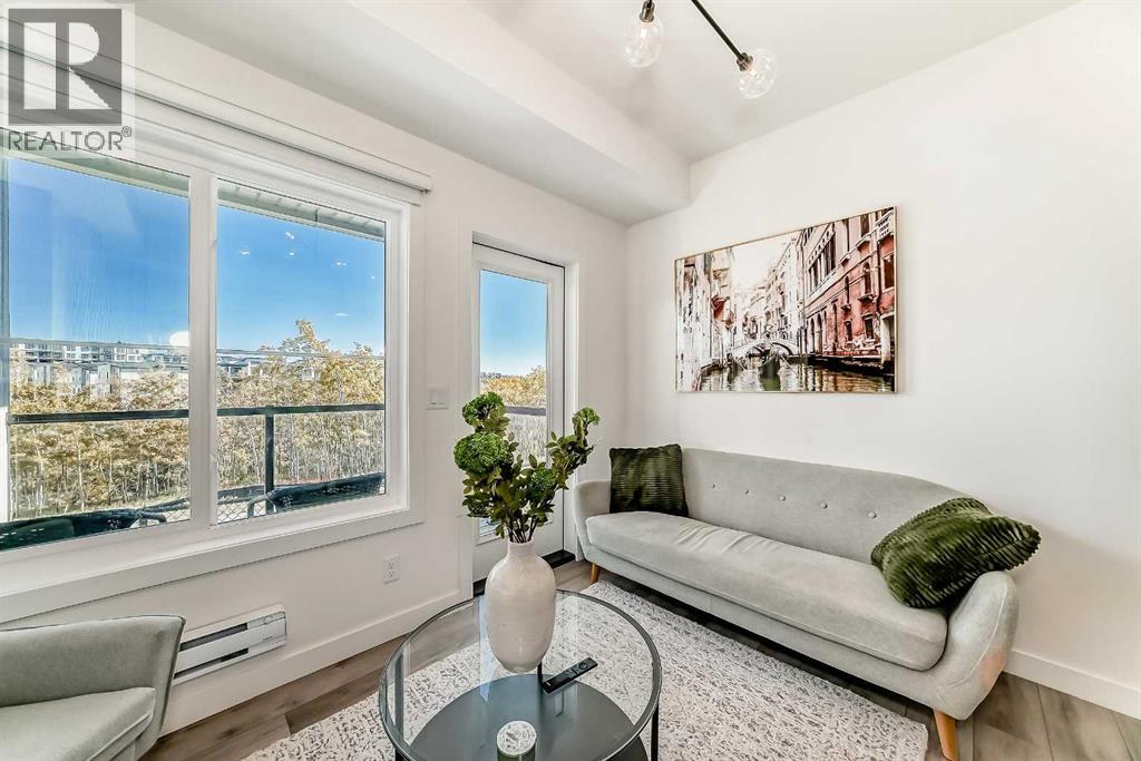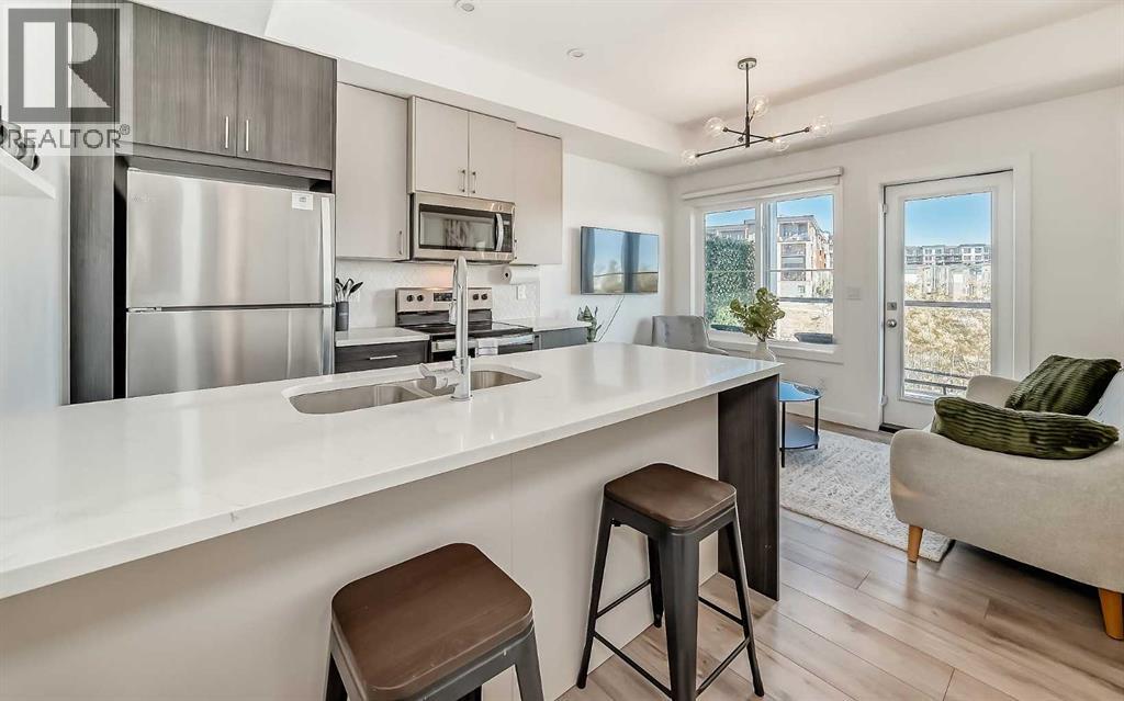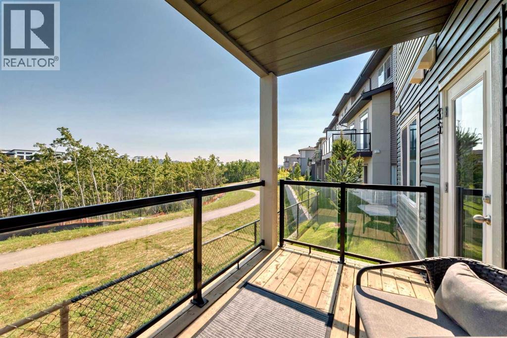 Like new 2 brdroom end unit townhouse backing onto wooded natural ravine and walking path. Really low condo fees ($149). This bright/open, pet-friendly, one level condo features a contemporary style, an abundance of natural light, large balcony, 9' ceilings, quartz counters, and breakfast bar. Plenty of storage room. Location is ideal: walking distance to stores and restaraunts and parks and playgrounds. Presigious community. Titled parking stall and visitor parking right outside your door. Well worth viewing - especially in the light of day! 35 Spring Creek Common SW. (31517217)
