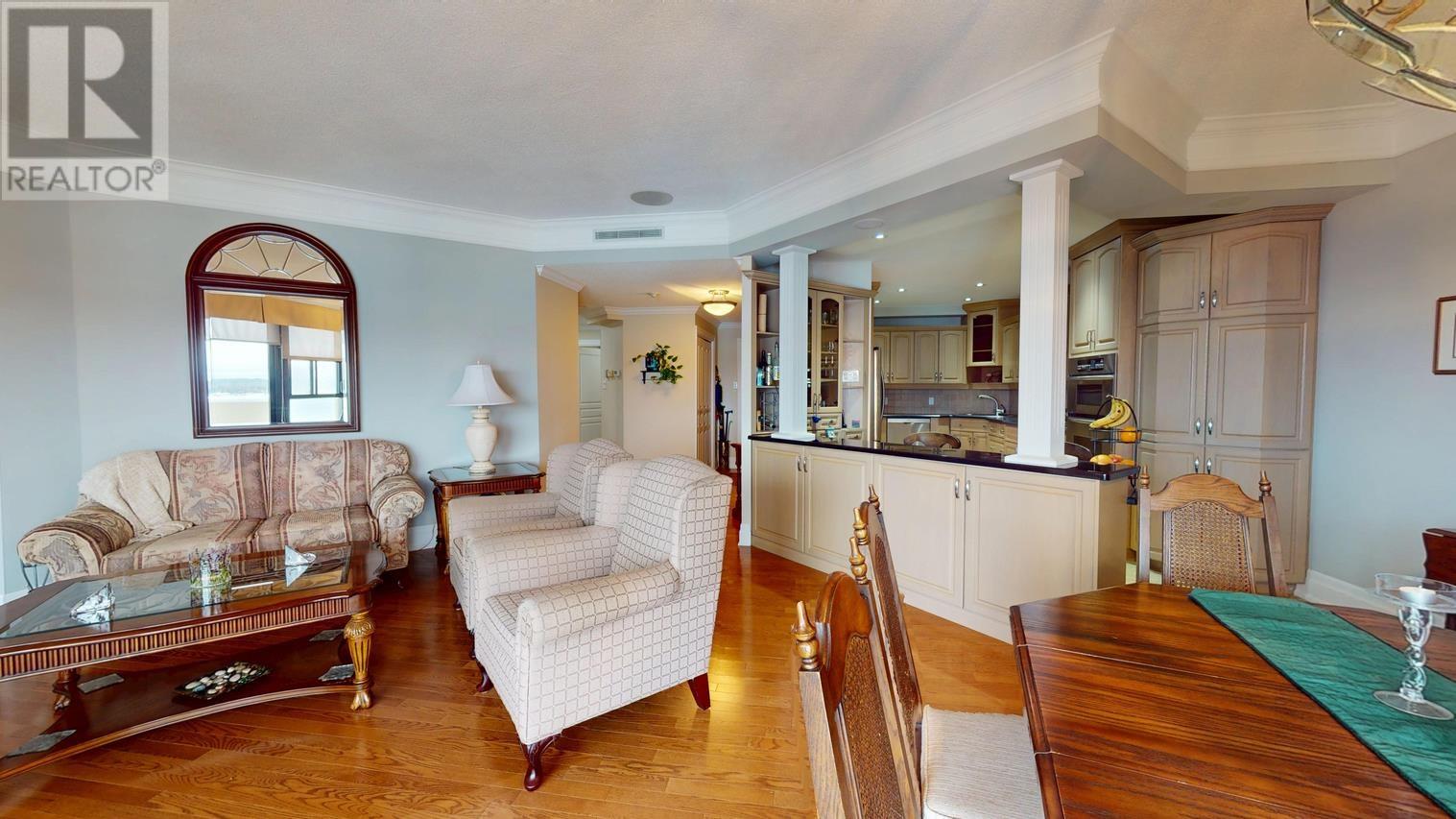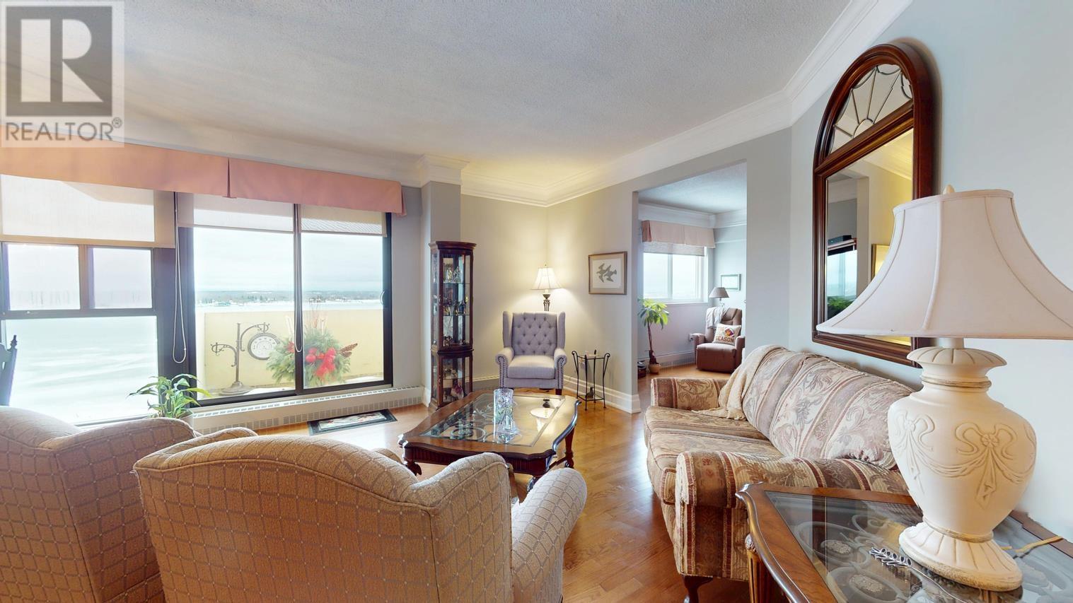 Highlighted by the most spectacular panoramic waterfront view in all of Sault Ste. Marie stretching as far as the eye can see, this 1845 sq ft Penthouse Condominium features 2-large south facing balconies, professionally redesigned open-concept living space w/ 9’ ceilings and high-quality custom finishes plus 3 spacious bedrooms with primary ensuite bath, in unit laundry, central A/C and 2 side-by-side owned parking spaces in the secure parking garage. Be sure to take the visual tour, ask your agent for the detailed feature package and book your appointment to view. This is truly a one-of-a-kind opportunity!! (29501845)