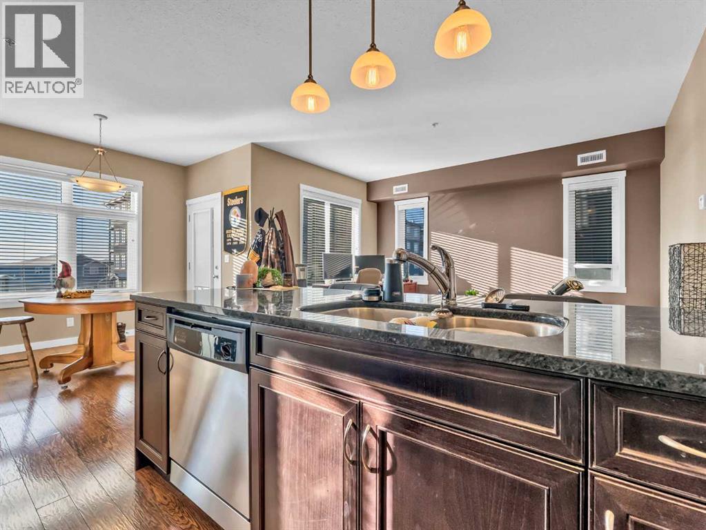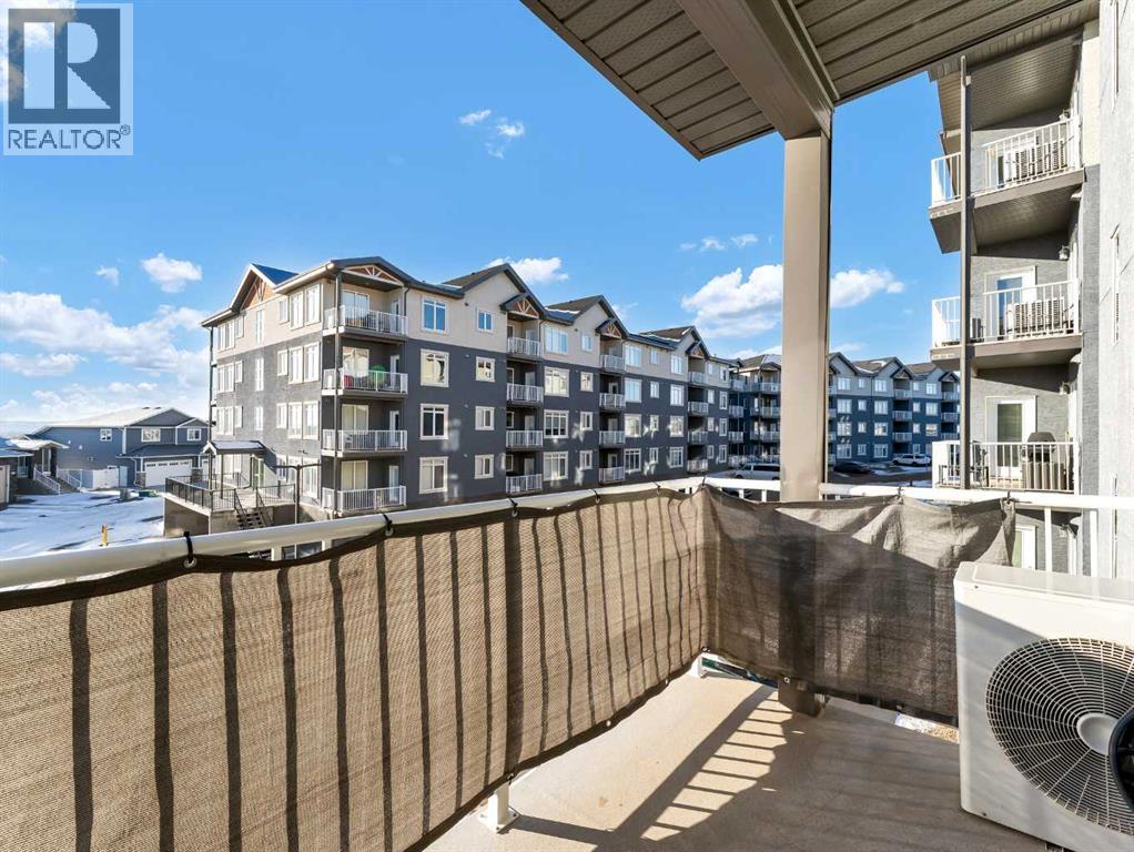 Welcome to #313 – 19 Terrace View NE, a well-designed 2-bedroom, 2-bathroom condo offering comfortable, low-maintenance living in a desirable location. The open-concept floor plan features a good-sized living room and dining area, perfect for everyday living or entertaining. The functional kitchen is equipped with ample cabinetry and a large centre eat-at island, providing plenty of prep and gathering space. The primary bedroom includes a walk-through closet leading to a private 3-piece ensuite bathroom, while the second bedroom and additional full bathroom offer flexibility for guests, roommates, or a home office. Enjoy the convenience of in-suite laundry and relax on your private covered balcony, ideal for morning coffee or evening downtime. This unit comes complete with one underground parking stall and a secure storage locker. The building is pet-friendly with restrictions, has no age restrictions, and is well-managed. Condo fees are $396.48/month and include all utilities and maintenance, covering electricity, heat, water, sewer, trash removal, snow removal, grounds upkeep, parking, and contributions to the reserve fund—making budgeting simple and stress-free. A great opportunity for first-time buyers, investors, or anyone looking to enjoy easy condo living. (31520696)