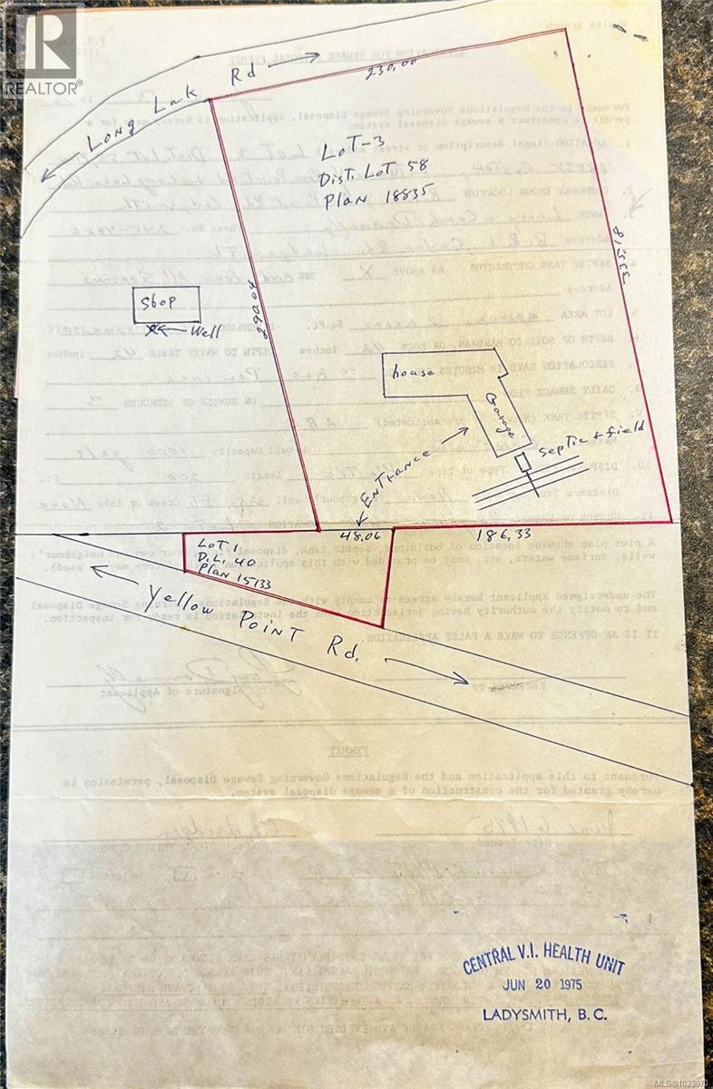 Rare opportunity to acquire 2 titled parcels totaling 1.82 acres in a quiet, low-turnover rural neighbourhood of Yellow Point. Set back off the road with a private setting and distant neighbors, the primary parcel features a 7-bedroom residence with full unfinished basement including rough-ins for future flexibility—including potential for a 2-bedroom suite with den. Thoughtful layout supports multi-generational living, home-based work, or the rural lifestyle many seek but seldom find at this scale. Climate-controlled year-round with heat pump and A/C. The property offers versatile outdoor spaces including a pasture field and separate fenced area with deck—ideal for animals, gardens, or hobby farming. Rural-functional infrastructure includes attached garage with service pit, studio space, carport, small barn, storage building, multiple decks, and expansive parking for RVs, boats, trailers, and equipment. The included secondary parcel offers future potential, subject to servicing and municipal approvals. This type of home rarely comes available—land, space, and versatility in a neighbourhood where properties change hands infrequently. Whether you're a growing family seeking room to spread out, multi-generational household needing separate living spaces, remote professional requiring dedicated office space, hobbyist or tradesperson needing workshop facilities, entrepreneur exploring B&B opportunities, care provider interested in senior housing (current owners successfully housed seniors), or rural lifestyle enthusiast wanting acreage with functionality, this property delivers. Yellow Point location provides the best of both worlds: genuine rural tranquility with convenient access to coastal recreation. Yellow Point Park offers peaceful forest trails and natural beauty, while Blue Heron Park provides waterfront access with stunning ocean views and wildlife viewing—both just minutes away. Ladysmith's amenities, services, and waterfront are minutes away. (30265284)