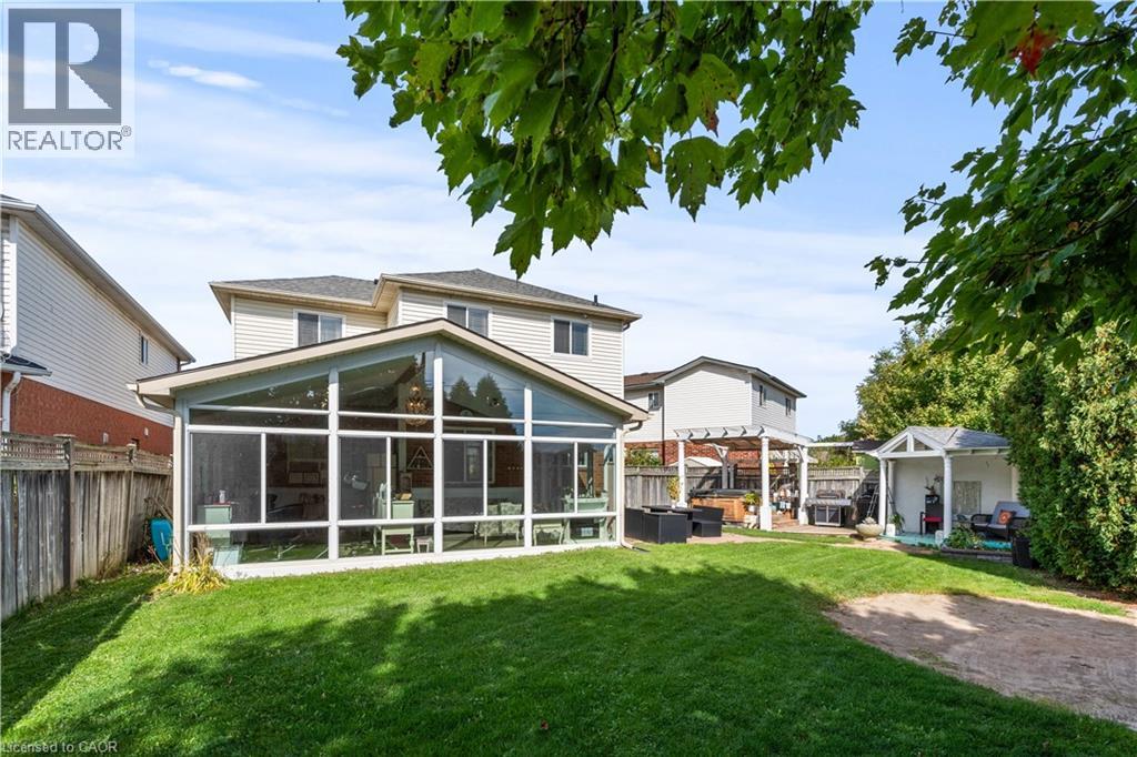 BEST DEAL IN WATERDOWN!! Opportunity Knocks! Work from home in your own private space/sunroom addition with separate entrance and entry to main house! This amazing family 3+1 bedroom home is complete with a fully finished basement, hot tub, and large pie-shaped yard! Main floor features a living room/dining room combination, family room with electric fireplace (currently used as a dining room), laundry/mud room, and a large eat-in white kitchen with walk-out to large, gorgeous, private sunroom/workspace/second family room, with heated floors, overlooking the beautiful backyard, complete with hot tub, shed, and gazebo! Upper level features 3 large bedrooms, master ensuite, walk-in closet, and additional 4-piece bath. Bamboo flooring on main and second level. Basement features family room, home theatre/gym area, and separate bedroom with 2-piece bathroom. Double garage, cozy front porch, fenced yard, and great neighbours - what more could you ask for?! Located on a great family street in one of Waterdown's most desirable areas, and close to schools, parks, transit, shopping and highways, don't miss your opportunity to call this your new home! (70040265)
