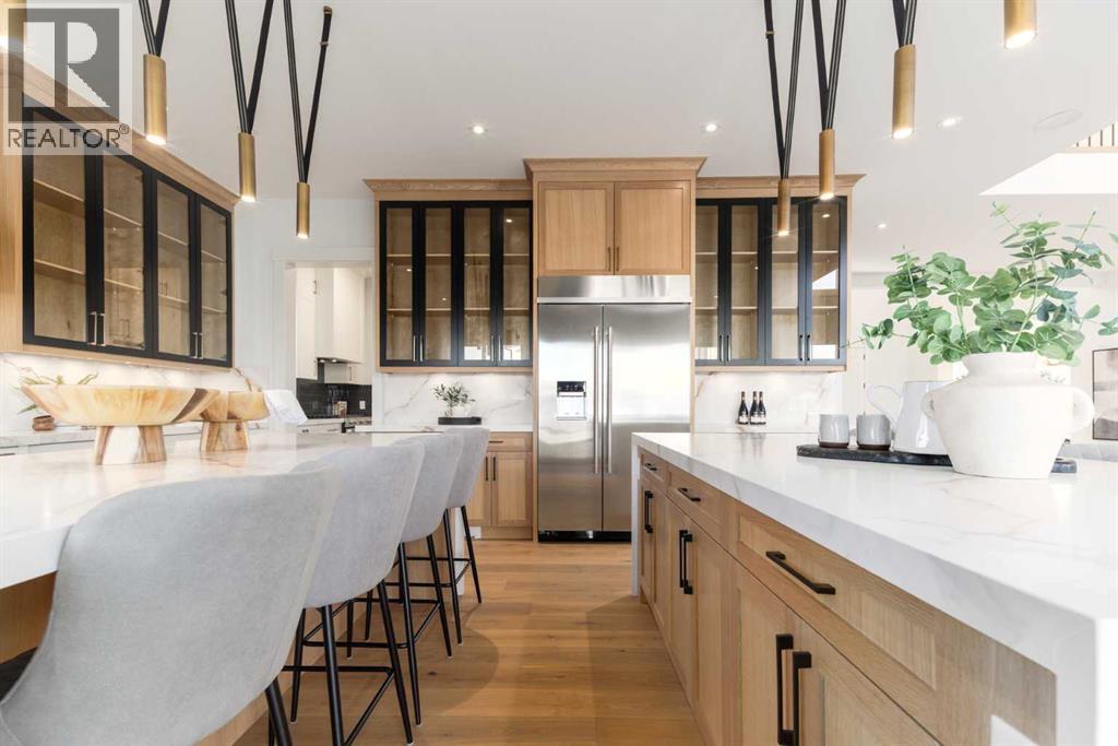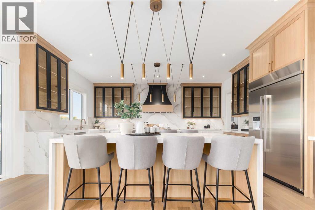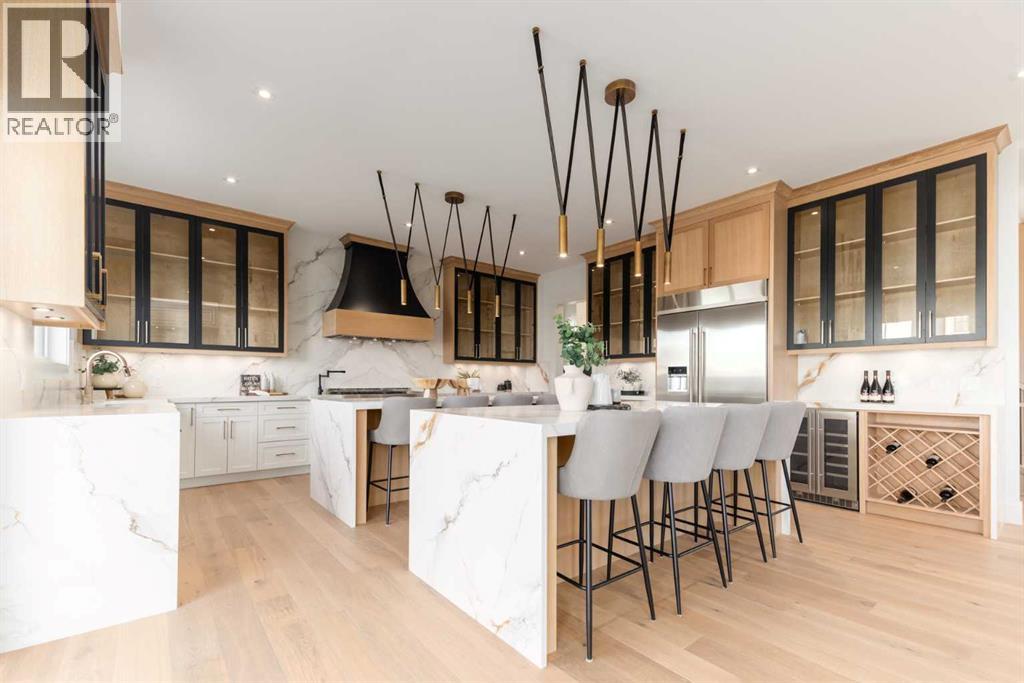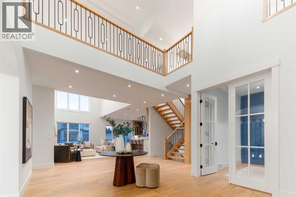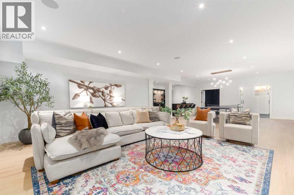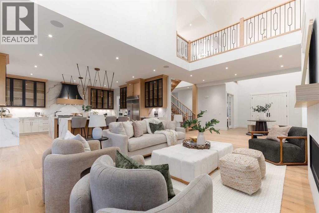 OPEN HOUSE SATURDAY FEBRUARY 7TH 12:00PM-2:00PM. Discover the epitome of luxury living at 200 Pondside Place, an extraordinary 7-bedroom, 6.5-bath estate in the prestigious community of Watermark at Bearspaw. Designed with families in mind, this home combines architectural elegance with modern functionality across nearly 6,800 sq ft of developed space. A striking façade of smooth stucco, black wood accents, and stone detailing sets the tone, while a four-car garage and exposed aggregate driveway provide both practicality and curb appeal. Inside, soaring ceilings, wide-plank oak floors, and expansive windows create a light-filled atmosphere that is as welcoming as it is refined. The gourmet chef’s kitchen is a true showpiece, featuring dual waterfall quartz islands, professional-grade Jenn-Air appliances, integrated wine storage, and a fully equipped spice/prep kitchen. The adjoining great room showcases a soaring fireplace wall and custom built-ins, perfect for both family gatherings and elegant entertaining. Formal dining is elevated with a glass-encased wine display and coffered ceiling, while a private main-floor office, guest suite, and stylish powder room add everyday convenience.Upstairs, the primary suite is a serene retreat with a boutique-style walk-in closet, spa-inspired ensuite with soaking tub and rainfall shower, and space for private lounging. Three additional bedrooms each feature their own ensuite and walk-in closet, while a flex loft/media space and a fully outfitted laundry room complete the level. The lower level is designed for recreation and relaxation, offering a spacious rec room with wet bar, fitness studio, plush theater room, and two additional bedrooms. Radiant in-floor heating throughout the lower level ensures year-round comfort. Set on a beautifully landscaped 0.28-acre lot, this home includes speaker zones, central vac, gas BBQ hookup, gas garage heater and smart-home rough-ins for modern living. Beyond the property, Watermark is on e of Calgary’s most sought-after family communities, renowned for its strong sense of community, scenic pathways, and access to top schools and amenities. With nearby shopping, dining, recreation centers, and a quick drive into the city, it is the perfect balance of tranquility and convenience. (31522607)