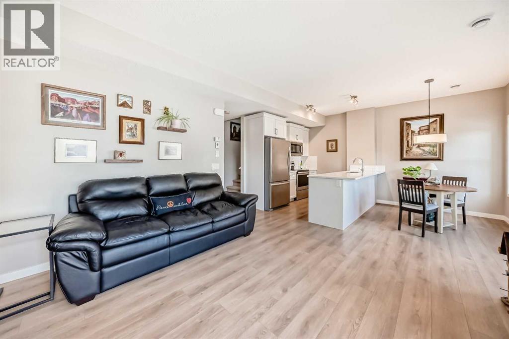 Welcome to this immaculate, upgraded townhome in the desirable community of Fireside, Cochrane, featuring peaceful pond and green space views that create a tranquil, nature-inspired setting. The bright, open-concept layout showcases a modern kitchen with quartz countertops, white European-style cabinetry with custom PULL-OUT shelving, stainless steel appliances, island with breakfast bar and PANTRY. Also features wide plank flooring, plush carpets, 9-foot ceilings, quartz counters throughout, and energy-efficient LED lighting. Large windows flood the home with natural light and patio doors open to two private balconies with views of the pond, ideal for morning coffee or evening relaxation. The home offers two spacious bedrooms, including a primary bedroom with a walk-in closet, a full bathroom and a stylish powder room, upper-floor laundry, ample in-unit storage, as well as a designated enclosed, heated storage unit and a titled parking at the side of your front door, just perfect for off loading groceries and everyday errands. Located in a well-managed, family-friendly complex close to schools, parks, walking paths, shopping, and recreation, with easy access to Calgary and approximately one hour from Banff and Canmore, this home delivers exceptional value and lifestyle. (31522955)