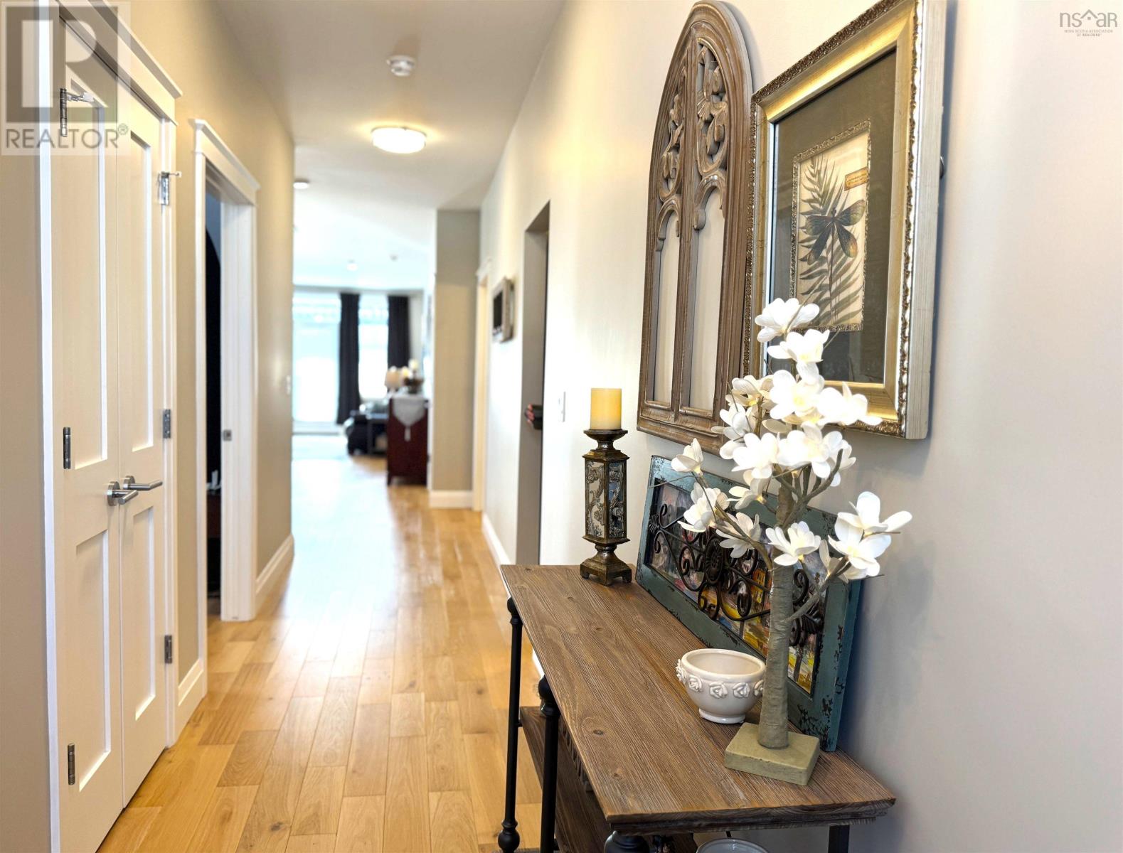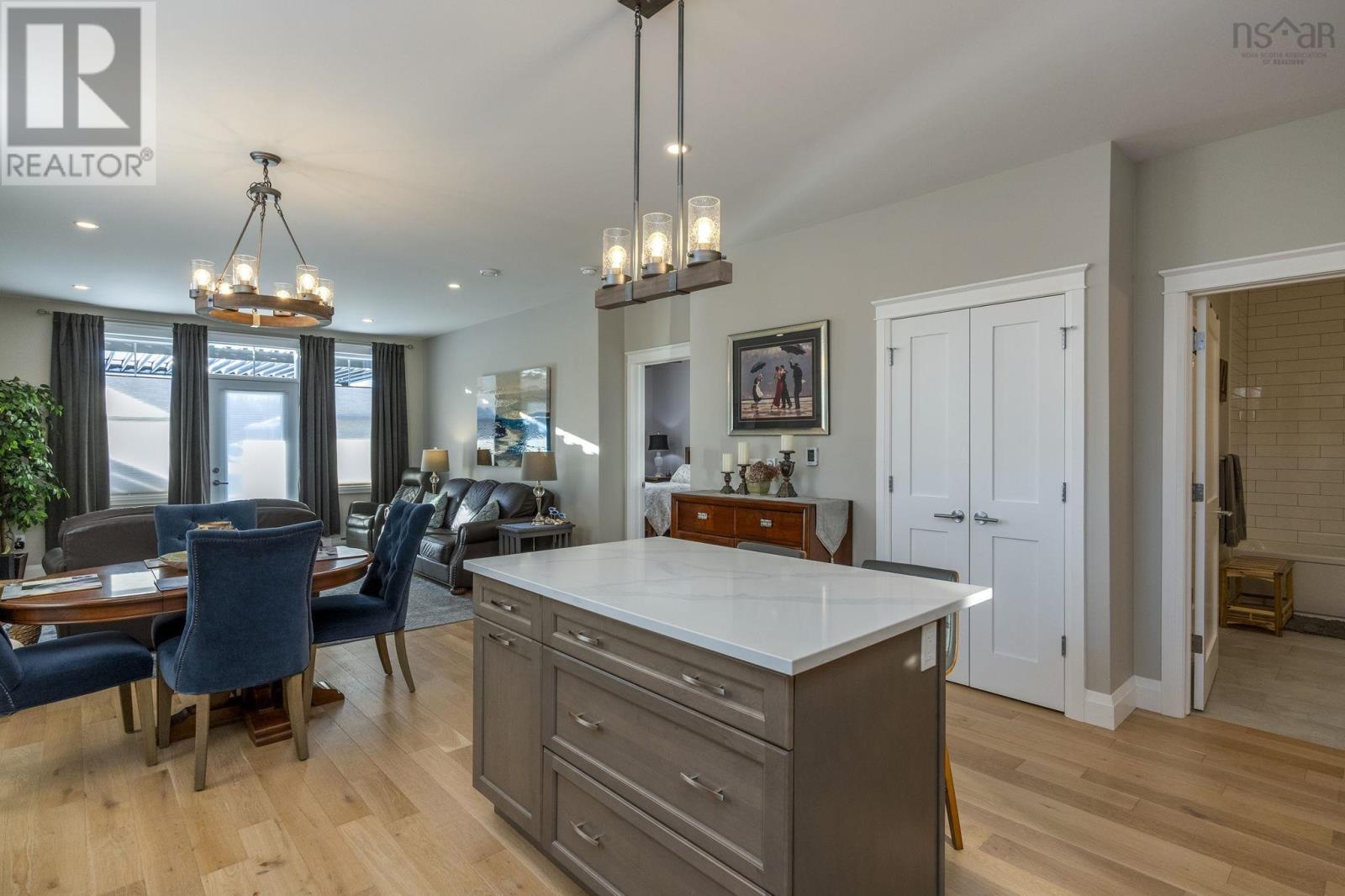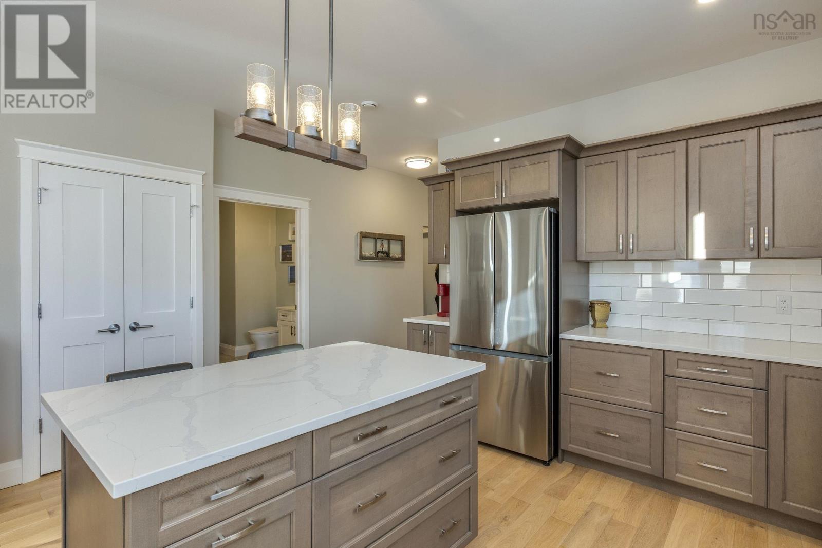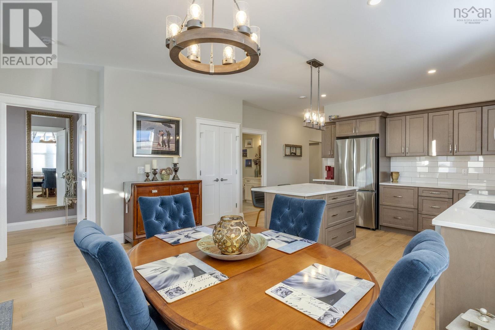 LOVE one-level living in this custom, semi-detached home with great layout! You will appreciate the elevated interior with neutral palette, hardwood and porcelain tile flooring, upgraded trim, custom lighting, blinds, finishes and more. Spacious foyer with front-facing guest room, office/den with built-in Murphy Bed and retractable desk (included), are supported by the main bath, featuring a soaker tub with glass doors. The kitchen is a dream with wood cabinetry, Granite sink, Quartz countertops, backsplash, Stainless Steel Appliances, full pantry and large island anchoring the adjacent dining and living area, where youll be comfortable year-round with an energy-efficient Daiken heat pump. Convenient laundry/mudroom is directly off the garage entrance. The primary bedroom completes the floor plan, offering a walk-in closet and ensuite with custom glass shower. Outside, enjoy your curb appeal, paved drive, extensive landscaping, deck (14x16), Pergola (2025) featuring louvered privacy panels and a concrete slab, perfect for barbequing or a future hot tub. Solar panels top it all off and cover all your electrical needs. This home is perfectly situated in popular Nichols Glen, within walking distance to all amenities and recreation - hiking trails, Kings Mutual Century Centre (curling, hockey, walking & fitness center). Berwick is known as the little town with a lot to offer, including its own electric utility! It continues to grow in popularity as a desirable location, with easy highway access, just 15 mins to Greenwood and 1 hr to Halifax. (231845107)