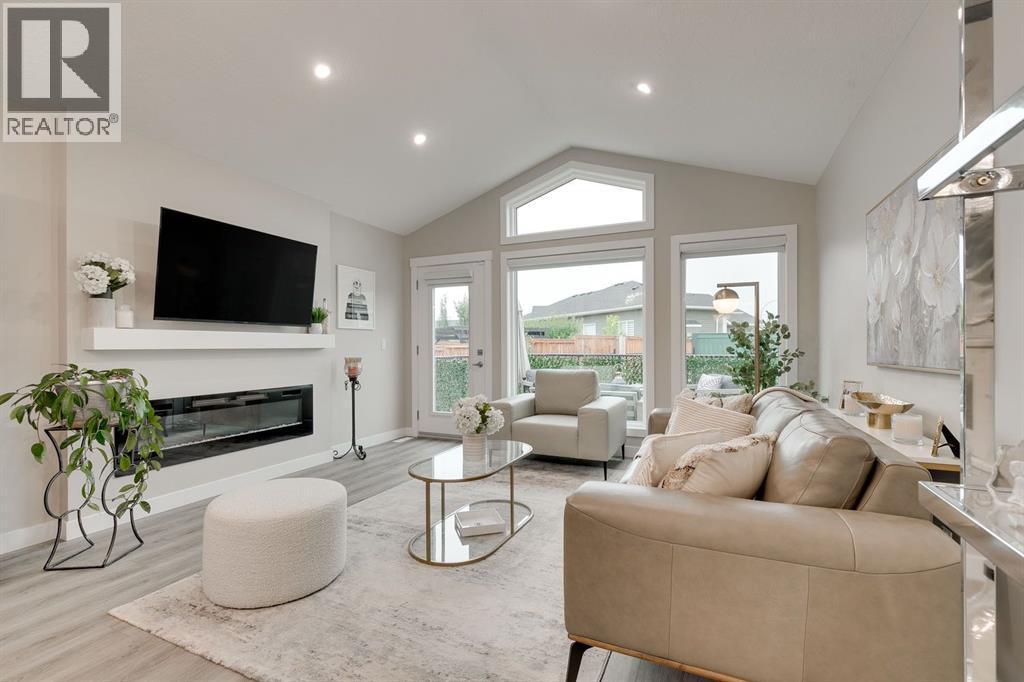 Welcome to this EXECUTIVE, CUSTOM-BUILT 2024 BUNGALOW in the highly sought-after RIVERWOOD ESTATES, offering elegant one-level living with outstanding future potential—just steps from scenic walking paths, the Sheep River, and a short stroll into town, all within 40 MINUTES OF CALGARY.The bright, open main floor is enhanced by VAULTED CEILINGS, expansive TRIPLE-PANE WINDOWS, and durable LUXURY VINYL PLANK FLOORING throughout. The gourmet kitchen is both stylish and functional, featuring QUARTZ COUNTERTOPS, tall cabinetry, a large pantry, stainless steel appliances, and a chef-inspired central island—flowing seamlessly into the dining area and cozy living room with ELECTRIC FIREPLACE AND CUSTOM MANTLE.The primary suite offers a peaceful retreat with a WALK-IN CALIFORNIA CLOSET and a beautifully finished 3-PIECE ENSUITE with quartz counters and a fully tiled shower. A second spacious bedroom and a stylish 4-PIECE BATHROOM WITH SOAKER TUB provide flexibility for guests or a home office.The UNFINISHED BASEMENT presents exceptional opportunity, with large windows and existing rough-in plumbing—allowing for the addition of UP TO TWO MORE BEDROOMS AND A FULL BATHROOM, expanding the home to approximately 2,200 SQ. FT. OF TOTAL LIVING SPACE.Enjoy outdoor living with a LARGE REAR DECK and a welcoming WEST-FACING COMPOSITE FRONT PORCH, perfect for morning coffee or evening relaxation. The DOUBLE ATTACHED GARAGE is fully insulated, finished, and features impressive 13’ CEILINGS, connecting to a practical MUDROOM/LAUNDRY AREA WITH BUILT-INS AND SINK.Thoughtfully designed with LOW-MAINTENANCE LANDSCAPING and located close to the hospital, golf course, and all town amenities, this move-in-ready bungalow offers COMFORT, QUALITY, AND FLEXIBILITY—ideal for today and smartly designed for the future. (31524788)
