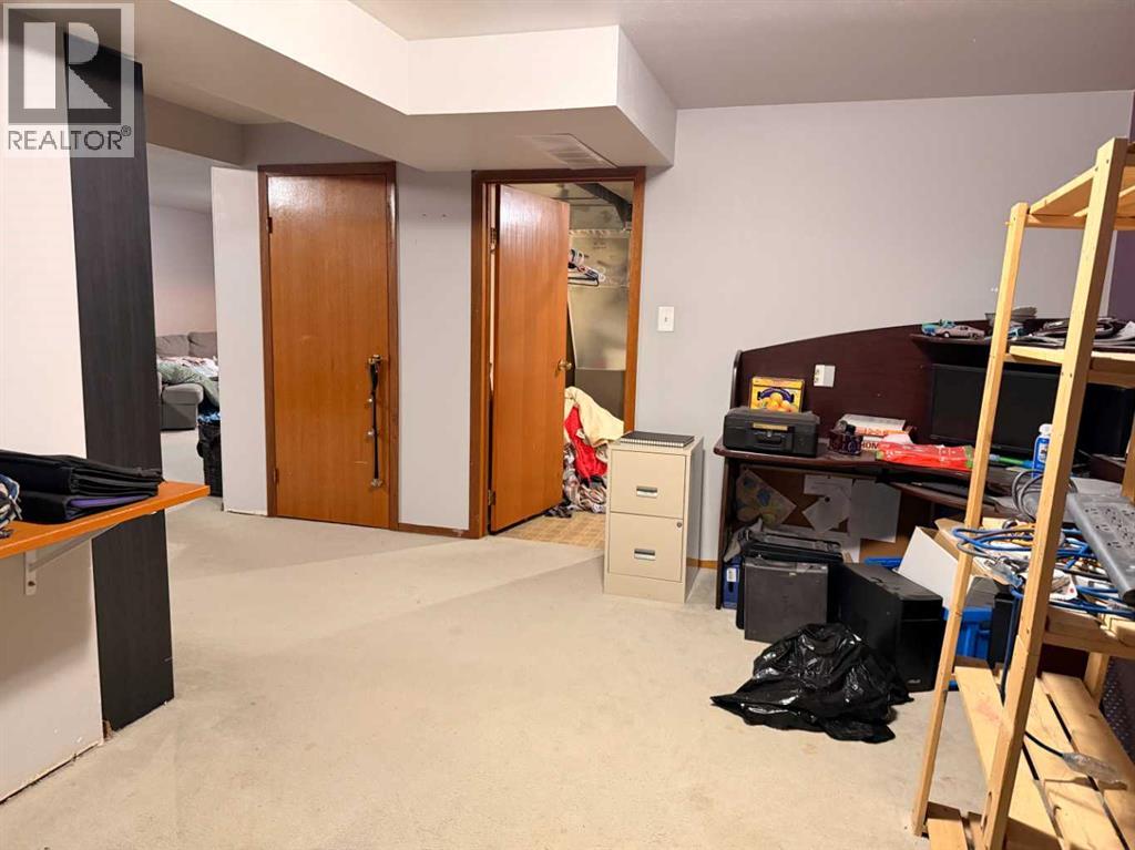Set on a quiet street at the very south end of town, this solid 1981 bungalow offers the kind of space, layout, and long term potential that’s getting harder to find. With 1,411 square feet on the main level, a fully finished basement, an attached garage, and a 60-foot lot, this is a home that invites you to look past the cosmetics and focus on what truly matters: size, structure, and setting. Inside, the main floor follows a classic bungalow layout that remains popular for good reason. The living and dining rooms are anchored by a double sided wood burning fireplace and patio doors off the dining area lead to the rear deck and yard. The main floor is home to 3 bedrooms, including a generously sized primary bedroom with a 3pc en-suite featuring an updated tiled shower. A second 4pc bathroom has had a renovation started with a corner tiled shower and awaits your personal choice completion. Downstairs, the finished basement significantly extends the living space. A very large rumpus room and gas fireplace make it a flexible area for recreation, media, or hobbies. There is one large bedroom, another room currently used as an office/craft space that could be a bedroom if needed plus there's another space on the other end of the house that could be converted into a bedroom if desired. A 3pc bathroom, laundry area and storage pantry complete this level. A few other features include A/C, solar panels, updated furnace and water tank along with some pvc windows. The yard has a large shed and parking for your RV or extra vehicles and it all backs onto a field rather than houses for more privacy. For buyers who understand potential and are willing to put their own stamp on a home, this is a chance to start with space and strong bones. (31526166)