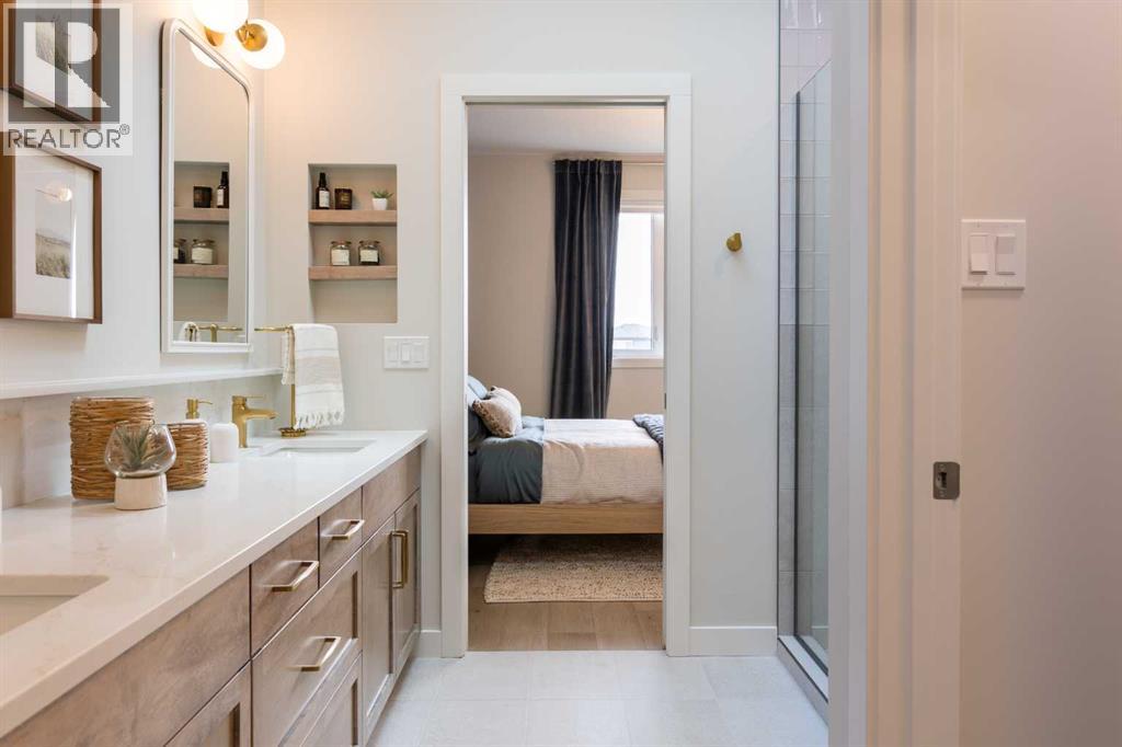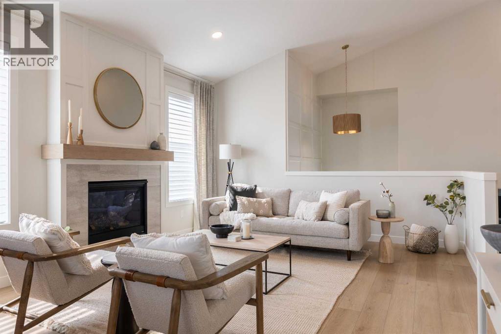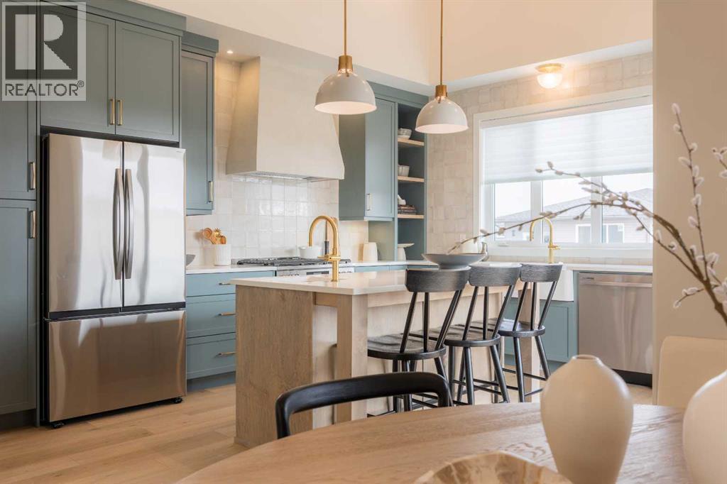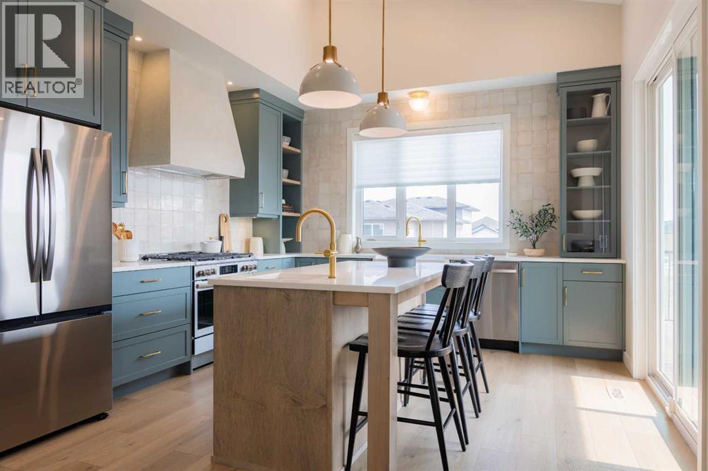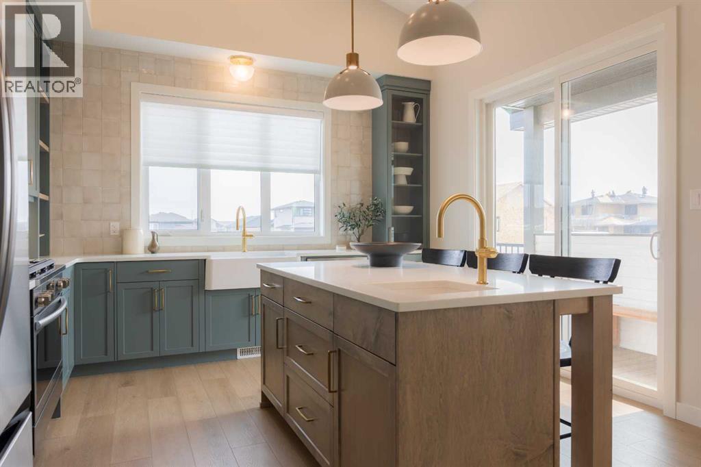 A showhome with everything you need on the main floor?! How often does that happen? Well, here it is. The Ficus by Cedar Ridge Homes is an incredible bi level floorplan, that pairs functionality with elevated showhome finishes to create a true masterpiece you need to see. Up a few stairs from your spacious foyer with built ins, you are greeted by a lovely main floor complete with a cozy living room with gas fireplace, and two floor to ceiling windows that flood this whole space with the best natural light. The kitchen is truly one of a kind with two tone cabinets, a plaster hood fan, upgraded cabinets with glass insert, open shelving, and full height ceramic tile backsplash. Not to mention the positively massive window over your kitchen sink. Doing the dishes just got so much better with this in front of you! There's an extra prep sink in the beautiful island to make this space extra functional. Your primary bedroom is conveniently located on the main floor, with a four piece ensuite connected to a spacious walk in closet, which is then connected to your main floor laundry! Zero excuses if your clothes don't get put away now! The unique floorplan continues up a few stairs to the second floor, where you will find a great size loft area with open to below feature, another four piece bathroom, as well as two bedrooms. If you have little kids, they won't be too far away from you at all! The basement is also fully developed, with a family room with wet bar with custom cabinets, one more four piece bathroom, and 3 more bedrooms. You read that right...3! 6 bedrooms total! Outside you will love that a large deck has already been built on and is just ready for you to enjoy the morning sunrise. This home is located in the highly sought after neighbourhood of Riverstone, where people rave about the schools, parks, walking paths, and close access to restaurants, groceries, a fully stocked fishing pond, and so much more. Come see all this gorgeous showhome has to offer. (31526699)