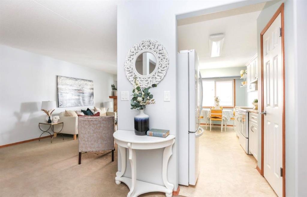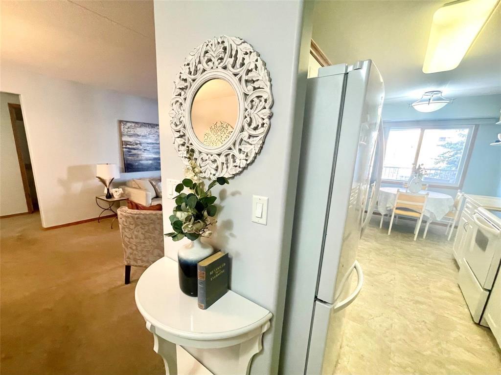 1E//Winnipeg/OFFERS ANYTIME! Quick possession is available. Come home to this freshly painted (2025), highly coveted, prestigious, 2004 A & S-built, second-floor 2-bed, 2-bath,concrete construction condo project in Tuxedo. Upon entering into the bright foyer area, with a deep double closet, your view opens up into your living room & dining room, featuring a tiled front electric corner fireplace, leading out through patio doors to your own private balcony area (that can be enclosed), where you can barbecue. The bright, clean, white eat-in kitchen features newer quartz countertops, a tile backsplash, bright under-cabinet and eating area lighting, attractive Tarkett flooring, a newer Bosch dishwasher and LG refrigerator, and a neatly organized pantry. Newer furnace unit, costing $15,000 were installed in June 2025. Convenient in-suite laundry front-load washer & dryer. apartment freezer, and adjacent hallway storage are sure to impress! This condo also offers 2 generous side-by-side storage units, one heated indoor parking spot, a fourth-floor party room, low monthly utilities, a healthy reserve fund, no smoking building, and one small pet is allowed. Monthly condo fees are $530.44 (231850029)
