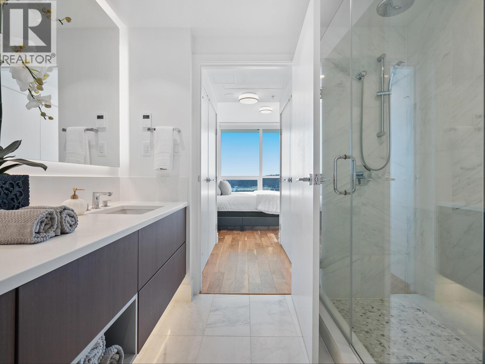 Imagine waking up each morning to SPECTACULAR UNOBSTRUCTED, PANORAMIC views of the sparkling OCEAN, vibrant city SKYLINE, and majestic MOUNTAINS-this is your everyday reality in the heart of Lions Gate Village. Centrally located on the North Shore and Perched high on the 20th flr of Park West, this 2-bed, 2-bath NEWLY built gem offers 825 SF of luxurious lvng. From the soaring ceilings and rich H/W flrs to the sleek quartz cntertops, premium German Gaggenau appliances, and elegant Grohe fixtures, every detail radiates sophistication. Step outside to enjoy resort-style amenities: including a games rm, fitness facility, guest lounge, private boardrm, and piano lounge. Outside, unwind at the outdoor kitch w/gas grills, pool, and deck. Take time for relaxation in the spa, massage rm, or enjoy a movie in the theatre lounge. Two parking stalls and storage complete this exceptional offering. Take the next step and claim this extraordinary home as your own-this home won't last long! OPEN SUN FEB 08 | 2-4 PM. (32330342)