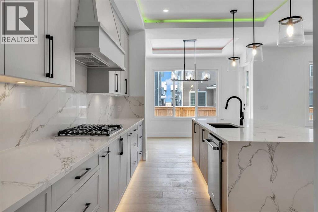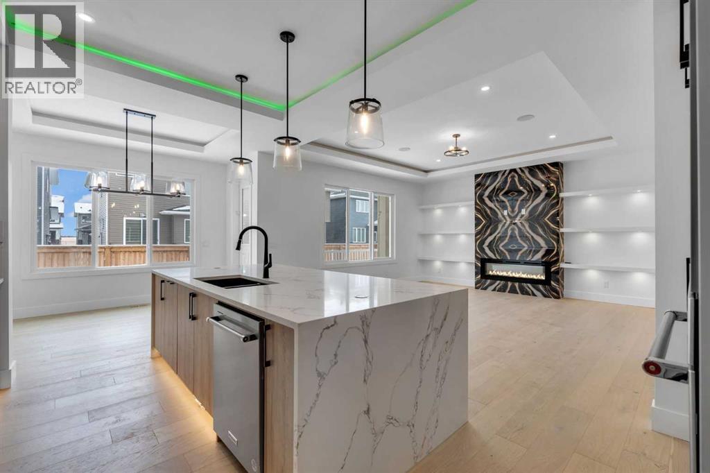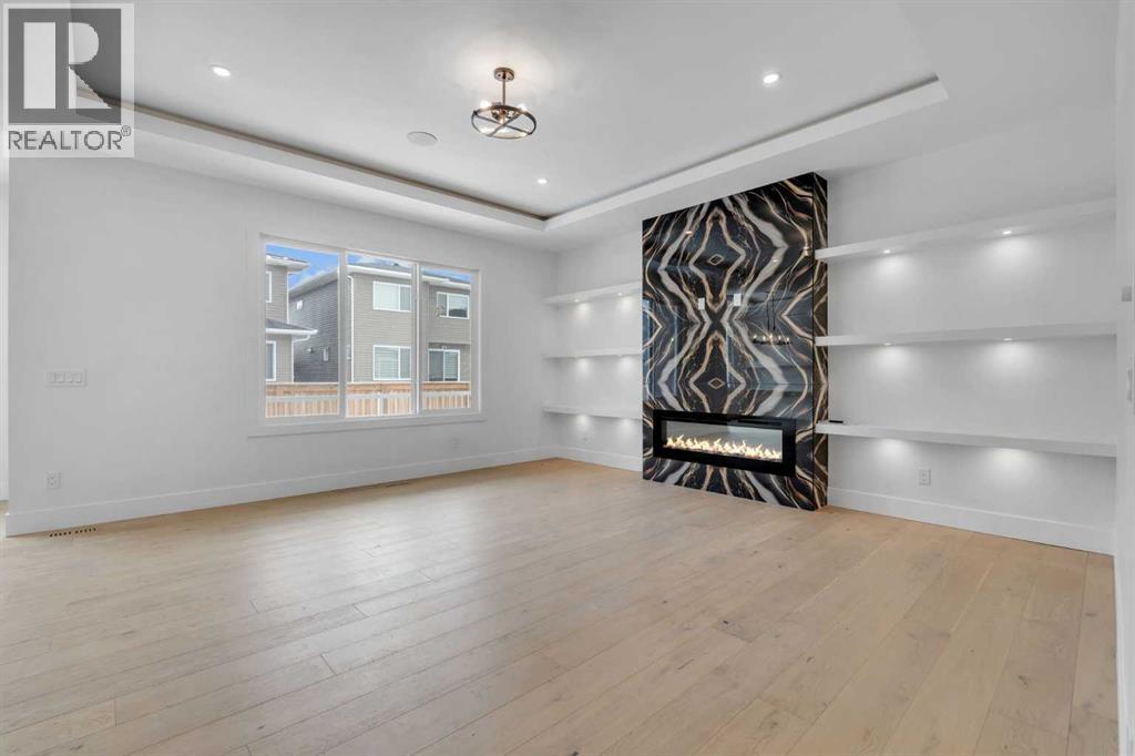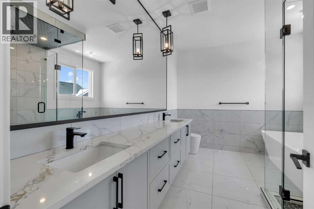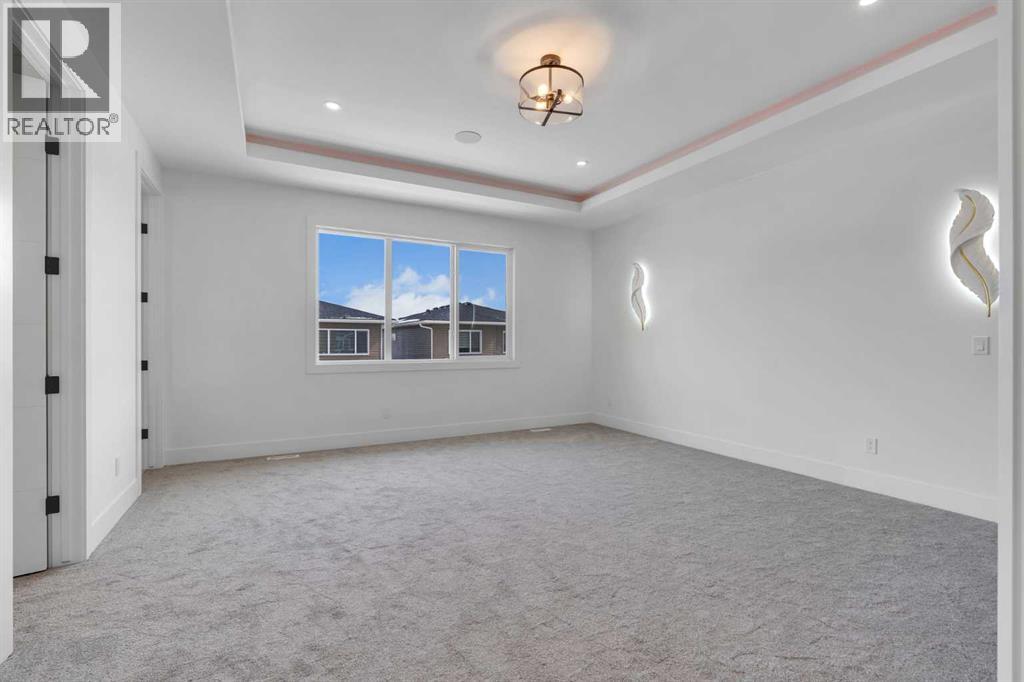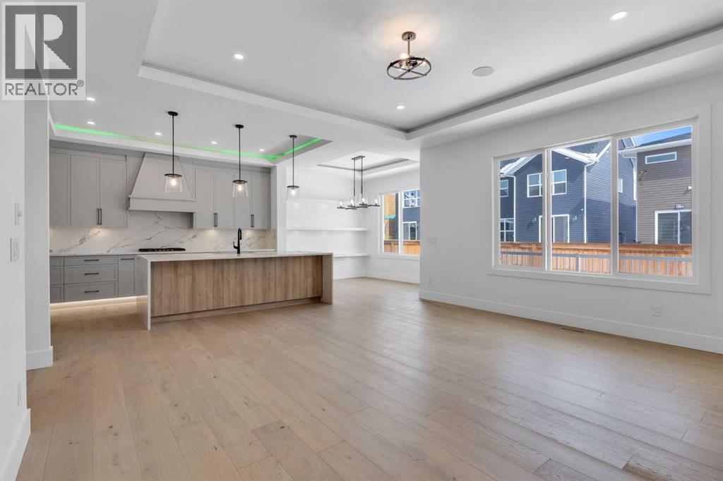 AMAZING OPTION FOR YOU - BUILDER WILLING TO BUILD A LEGAL SUITE W 2 BEDS & 1 FULL BATH (COST TO BE DETERMINED BASED ON REQUIREMENTS & LEGAL SUITE DEVELOPMENT IS SUBJECT TO CITY APPROVAL) - OVER 3200 SQFT, BRAND NEW HOME, TRIPLE ATTACHED GARAGE, 5 BEDROOMS, 4 BATHROOMS, SIDE ENTRANCE TO BASEMENT - ELEGANT DESIGN AND MODERN FINISHING - This home in Kinniburgh is perfect for a large family and offers the convenience of being close to shops, schools, the lake and all that Chestermere has to offer. Walking in to your home you are greeted with a large foyer and storage space. A hallway connects a den (that can be used as a bedroom), and bathroom to the rest of the main living space. The TRIPLE ATTACHED GARAGE, opens into a mud room and SPICE KITCHEN which allows you to keep your home in pristine condition. The kitchen is a chef's dream with built in STAINLESS STEEL appliances, a large island and beautiful wood finished cabinets. A large living room is warmed with a TILE FACED FIREPLACE, and this space opens onto your DECK. The second floor boasts 4 bedrooms and 3 bathrooms. Including 1 primary ensuite with and expansive 5PC bathroom and a large walk in closet. This bathroom has a full size soak tub and dual vanities. Another bedroom is complete with an ensuite bathroom and walk in closet. 2 other bedrooms and 1 bathroom, laundry and a large family room complete this floor. Welcome to your home! Please note that front landscaping and finishing will be done including a tree. Option for the builder to develop the basement already includes SIDE ENTRANCE. Interior pictures are from another home built by the builder. (31530916)