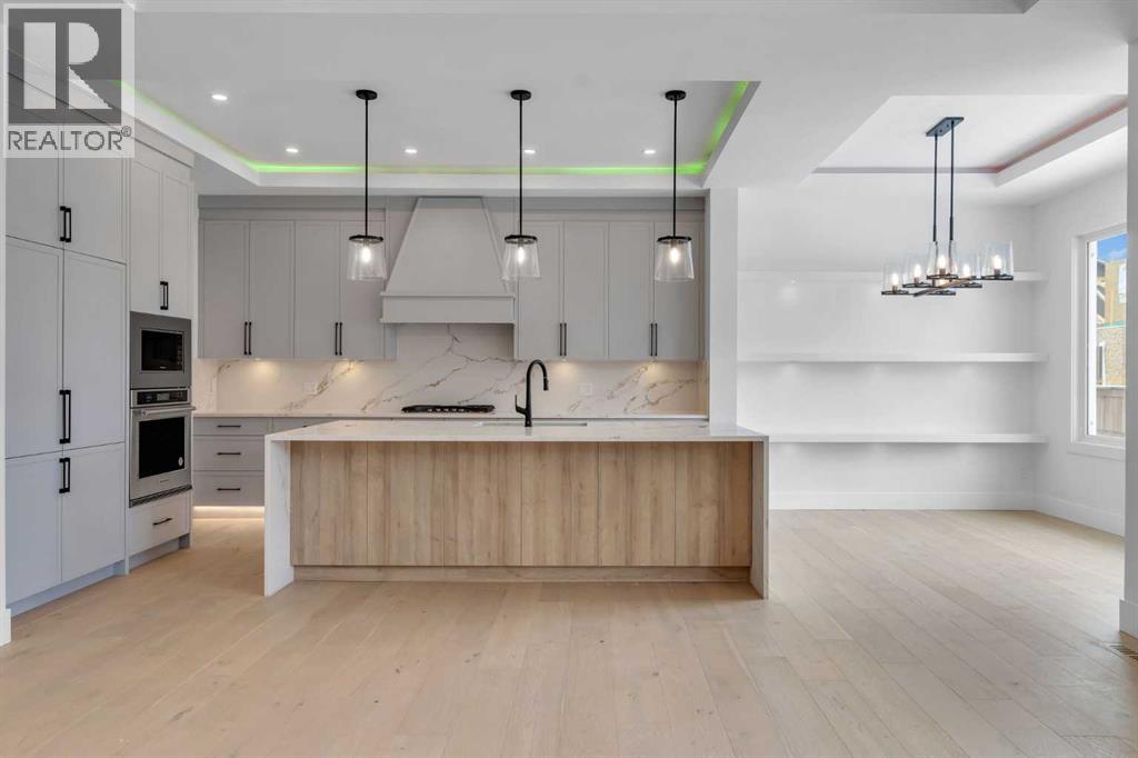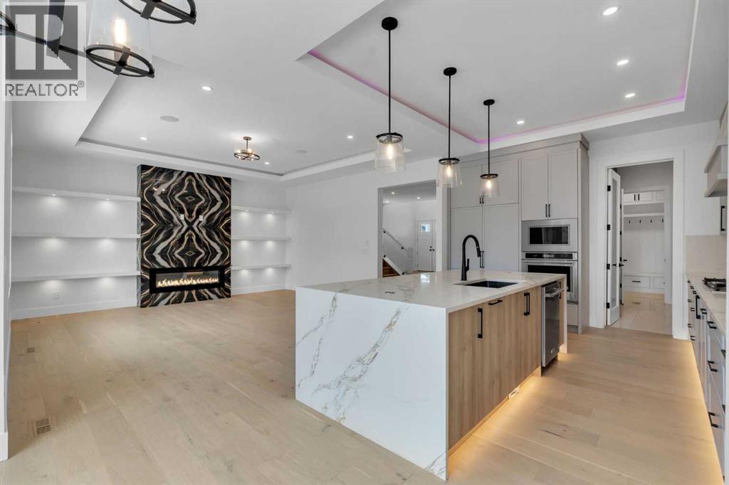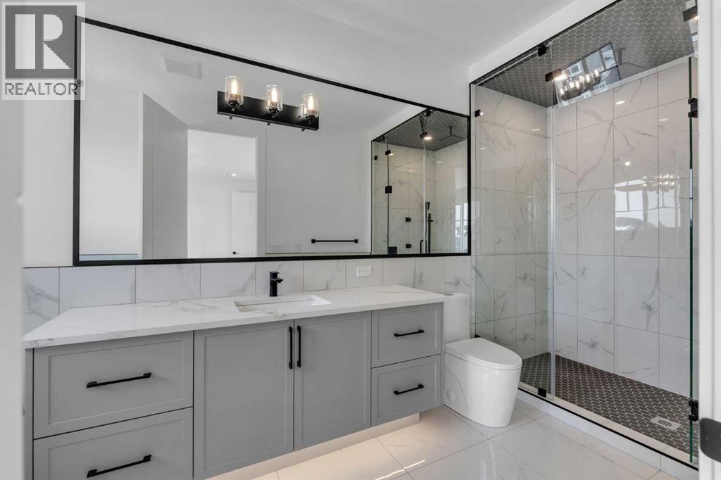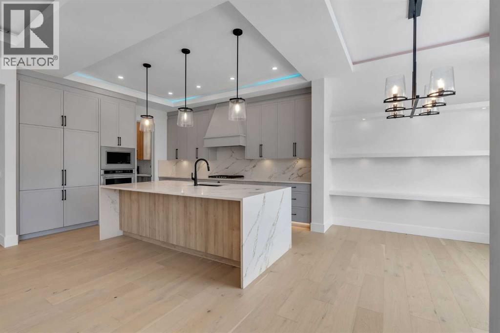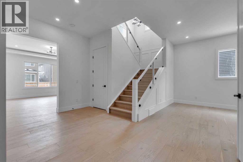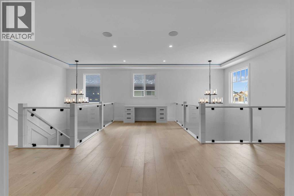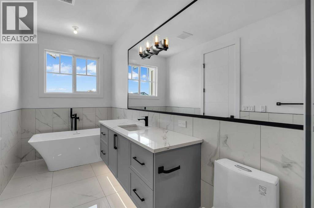 AMAZING OPTION FOR YOU - BUILDER WILLING TO BUILD A LEGAL SUITE W 2 BEDS & 1 FULL BATH (COST TO BE DETERMINED BASED ON REQUIREMENTS & LEGAL SUITE DEVELOPMENT IS SUBJECT TO CITY APPROVAL) - OVER 3200 SQFT, BRAND NEW HOME, TRIPLE ATTACHED GARAGE, 5 BEDROOMS, 4 BATHROOMS, SIDE ENTRANCE TO BASEMENT - ELEGANT DESIGN AND MODERN FINISHING - This home in Kinniburgh is perfect for a large family and offers the convenience of being close to shops, schools, the lake and all that Chestermere has to offer. Walking in to your home you are greeted with a large foyer and storage space. A hallway connects a den (that can be used as a bedroom), and bathroom to the rest of the main living space. The TRIPLE ATTACHED GARAGE, opens into a mud room and SPICE KITCHEN which allows you to keep your home in pristine condition. The kitchen is a chef's dream with built in STAINLESS STEEL appliances, a large island and beautiful wood finished cabinets. A large living room is warmed with a TILE FACED FIREPLACE, and this space opens onto your DECK. The second floor boasts 4 bedrooms and 3 bathrooms. Including 1 primary ensuite with and expansive 5PC bathroom and a large walk in closet. This bathroom has a full size soak tub and dual vanities. Another bedroom is complete with an ensuite bathroom and walk in closet. 2 other bedrooms and 1 bathroom, laundry and a large family room complete this floor. Welcome to your home! Please note that front landscaping and finishing will be done including a tree. Option for the builder to develop the basement already includes SIDE ENTRANCE. Interior pictures are from another home built by the builder. (31530916)