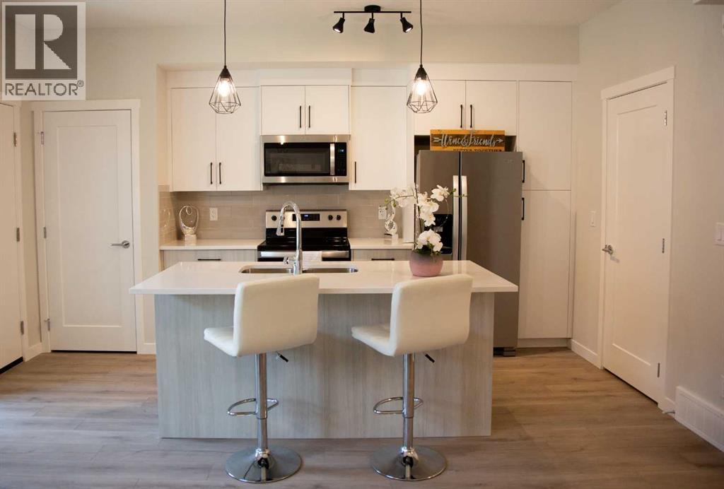 Sun-Filled South-Facing End Unit | Brand-New Furnished 2-Bedroom Townhome (2025 Build)You won’t want to miss this bright, south-facing end-unit townhome, filled with natural sunlight through expansive windows morning and afternoon. Built in 2025 and offered furnished, this exceptional home is ideal for professionals, a small family, or retirees seeking space, comfort, and low-maintenance living.Featuring 9’ ceilings on both floors, this home offers a spacious open-concept layout complemented by modern, upscale finishes. The sunlit main living area showcases quartz countertops, zebra blinds, two generous closets, and a large pantry—perfect for both everyday living and entertaining.Both bedrooms are generously sized, easily accommodating full bedroom furniture with room to spare. The primary bedroom includes a walk-in closet with direct ensuite access, while the second bedroom is equally spacious and flexible—ideal as a guest room/home office, or second bedroom. Second-floor in-suite laundry adds everyday convenience.The modern kitchen is fully equipped with a full-size refrigerator with water and ice dispenser, ideal for contemporary living.Enjoy stress-free living with no exterior maintenance required—snow removal, landscaping, and exterior upkeep are all taken care of, allowing you to simply move in and enjoy.Utilities included:Gas / HeatWaterHigh-Speed InternetParkingParking is conveniently located directly outside the back entrance, with an optional second underground parking stall available.Located in a prime, family-friendly community, this home is directly across from a large park, close to schools, shopping, and transit, and within walking distance to a new plaza currently under construction, including Tim Hortons and additional amenities. Commuters will appreciate the approximately 7-minute bus ride to the train station, offering quick and easy access to the rest of the city.One well-behaved pet permittedA rare opportunity to lease a brand-new, south-facing, furnished townhome with spacious bedrooms, no exterior maintenance, exceptional inclusions, and an unbeatable location.Contact today to arrange your private viewing. (31533173)