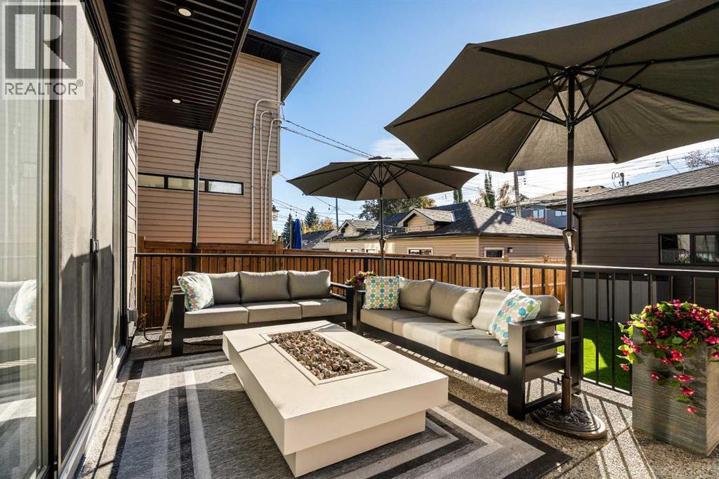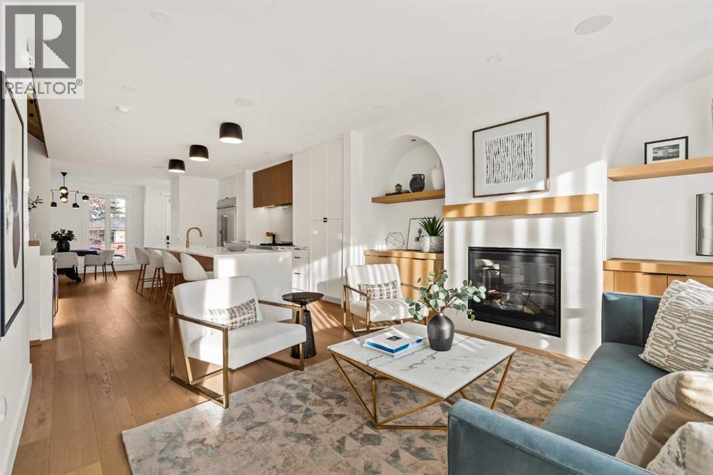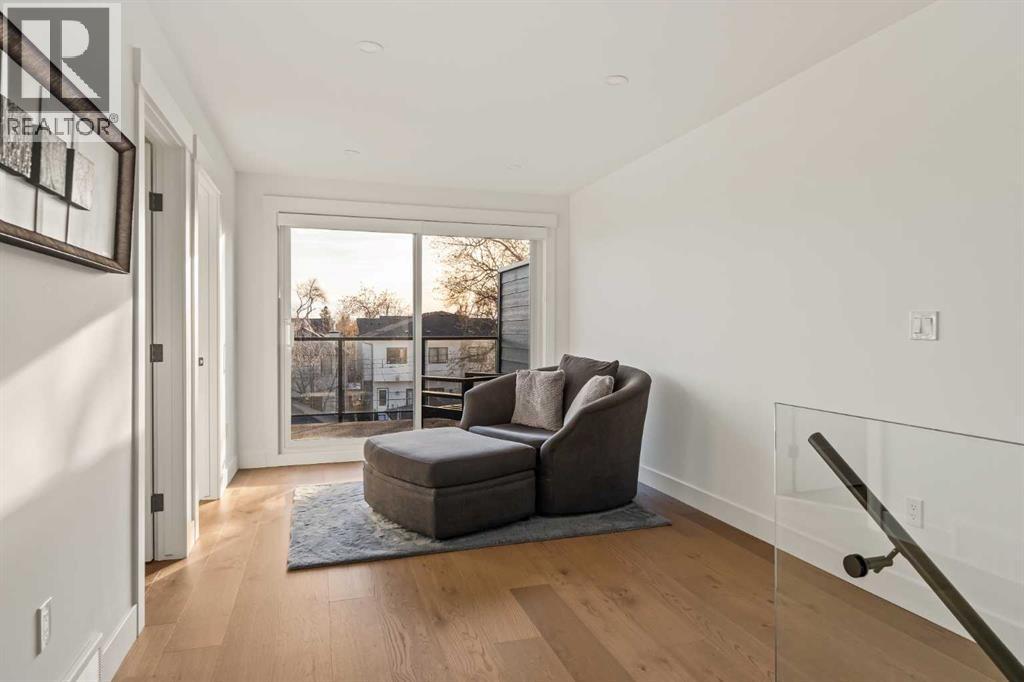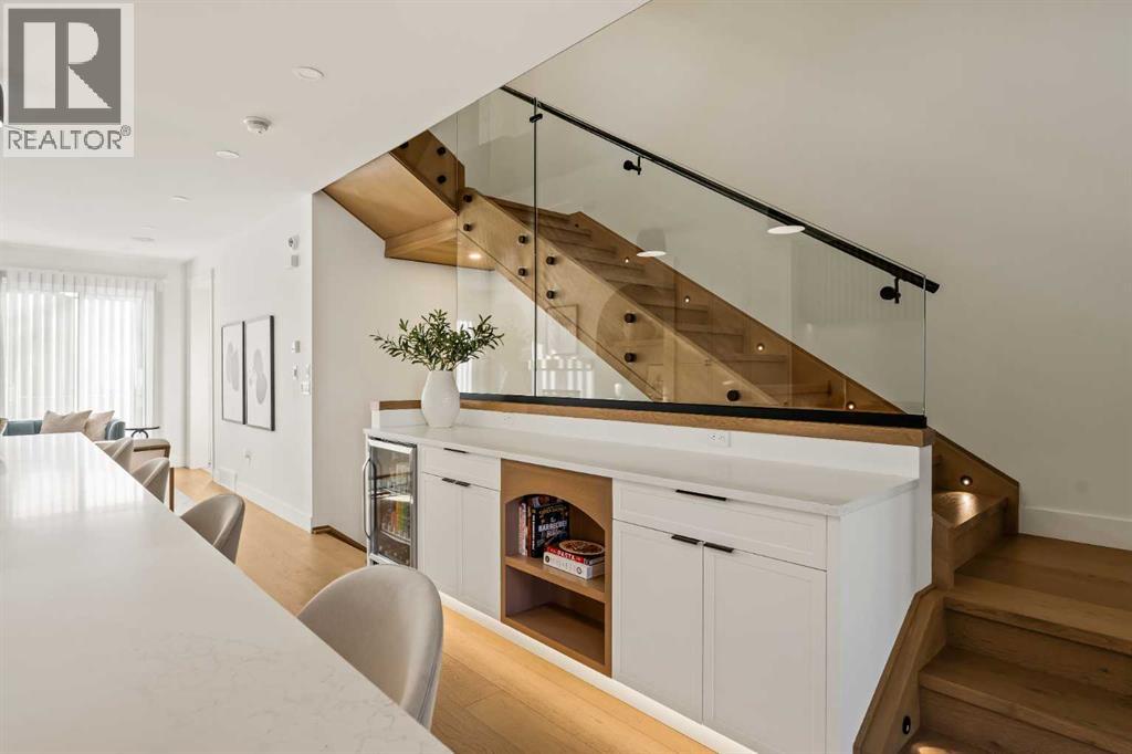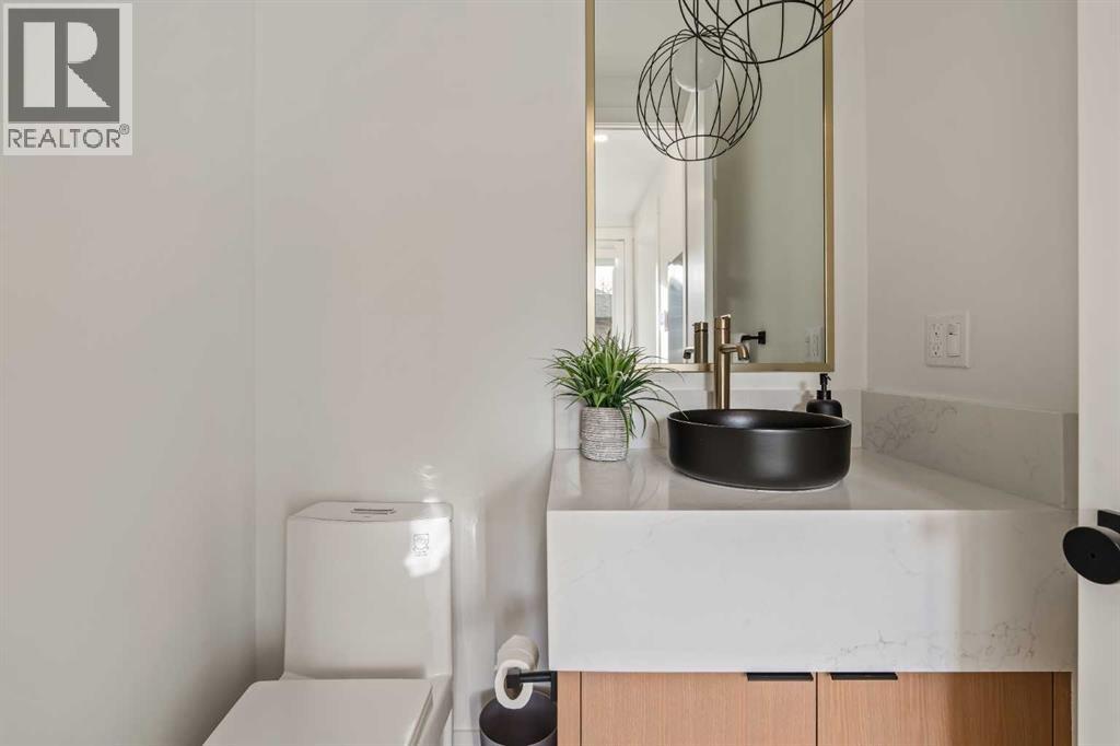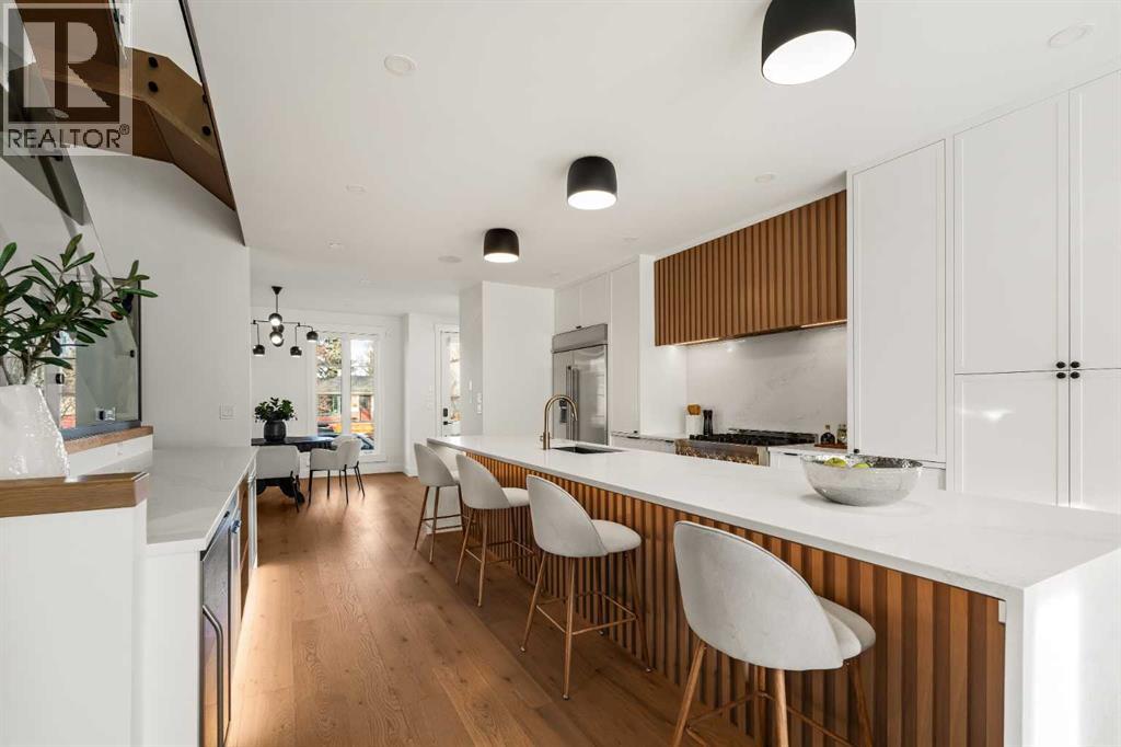 Stunning luxury 3-storey semi-detached residence offering 4 bedrooms, 4.5 bathrooms, a private south-facing backyard, fully air conditioned & ideally located in the heart of highly sought-after Altadore. Showcasing exceptional curb appeal with a gorgeous front elevation, this modern home is filled with natural light from expansive windows & features, thoughtful design & high-end upgrades throughout.The inviting front entry is both stylish & functional, complete with a built-in bench, coat hooks, & smart shoe storage. A front dining room sets the stage for elegant entertaining, while the heart of the home is the extensively upgraded central kitchen, anchored by a large waterfall island. Highlights include full-height cabinetry, deep lower drawers, soft-close hardware, a built-in pantry, & custom hood fan. Premium JennAir stainless steel appliances include a French-door refrigerator, gas range, built-in microwave, garburator & dishwasher. Across from the island, additional built-in cabinetry & counter space feature a beverage cooler.The rear living room is warm & refined, centred around a gas fireplace with recessed built-ins & custom millwork. Ten-foot-wide sliding patio doors open onto a south-facing exposed aggregate deck, seamlessly blending indoor & outdoor living. A spacious rear mudroom offers a closet, bench, & coat hooks, along with a private powder room featuring a vessel sink & sleek linear mirror.The second level includes the primary retreat featuring a generous bedroom & a spa-inspired 5-piece ensuite with a freestanding soaker tub surrounded by floor-to-ceiling tile, heated floors, a custom walk-in glass steam shower with rainfall shower head & built-in bench, dual vanity, & a walk-in closet with custom organizers, drawers, and a full-height mirror. Two additional bedrooms, complemented by a beautiful 4-piece bathroom & a thoughtfully designed laundry room with abundant cabinetry, counter space, & sink.The third level offers incredible flexibility wi th a bright loft-style bonus room featuring a built-in media centre & wet bar with beverage cooler, a separate home office, a full four-piece bathroom, & access to a private south-facing balcony. This level can also easily function as a studio-style 5th bedroom.The fully developed lower level is equally impressive, featuring a family room with wet bar & custom cabinetry, a 10-foot-wide glass-enclosed home gym with rubber flooring, a 4th bedroom, & a 3-piece bathroom. This level is roughed-in for in-floor heating. Built-in speakers are installed throughout the home & centrally wired to the mechanical room, & the property is also roughed-in for a central vacuum system.Outside, the backyard has been upgraded with turf for low-maintenance living, while the deck offers the perfect space for outdoor furniture. Altadore remains one of Calgary’s most desirable inner-city communities, offering quick access to Glenmore Athletic Park, Marda Loop, River Park off-leash, Sandy Beach, schools and more! (31533758)