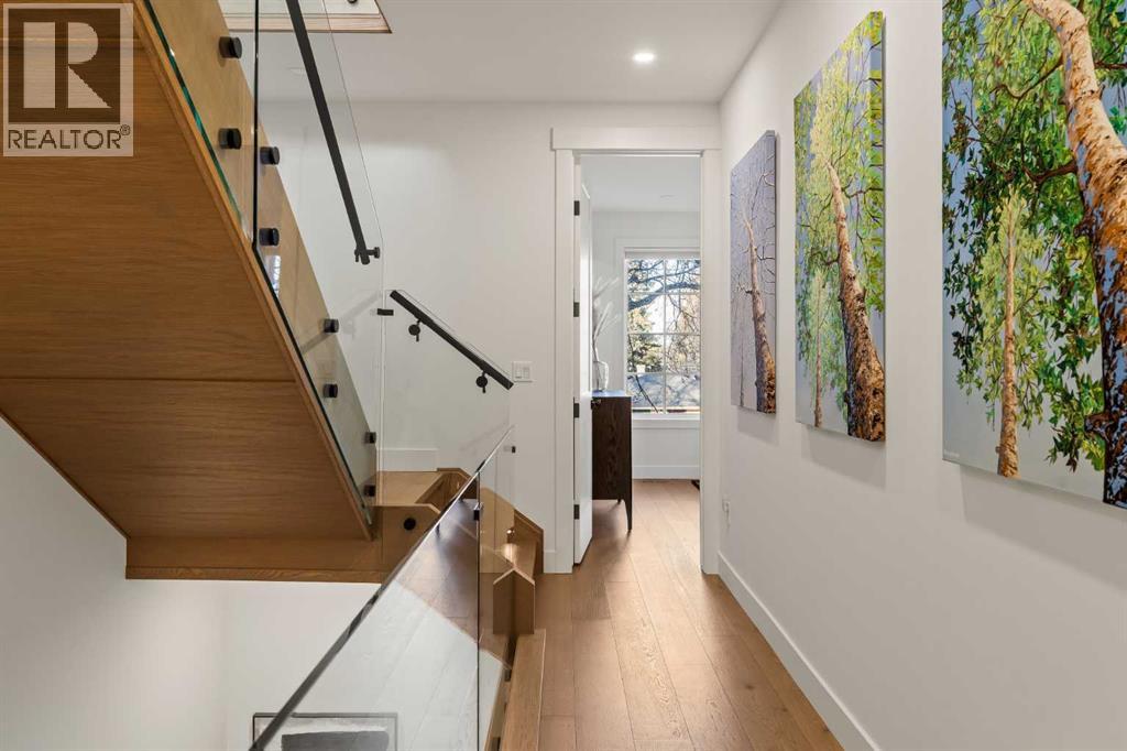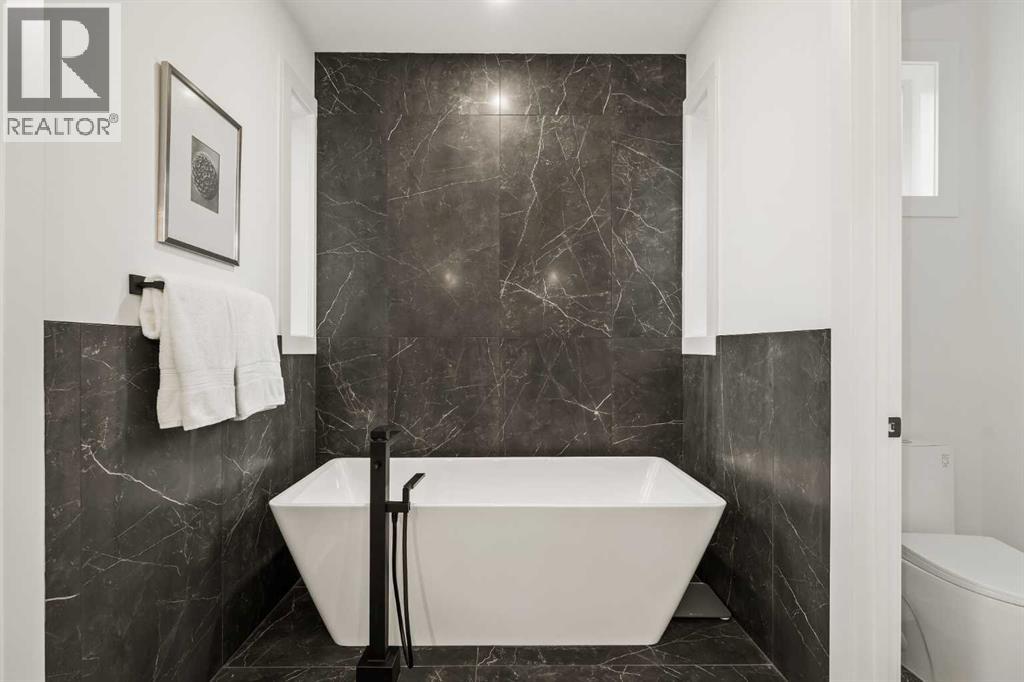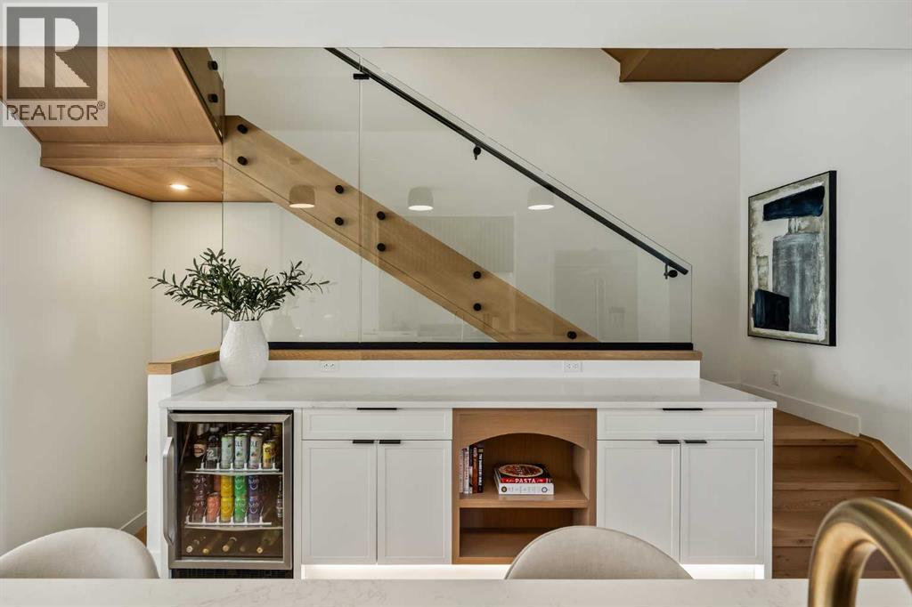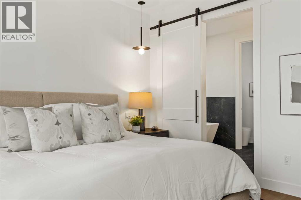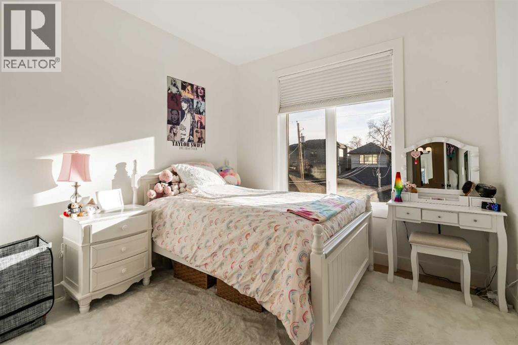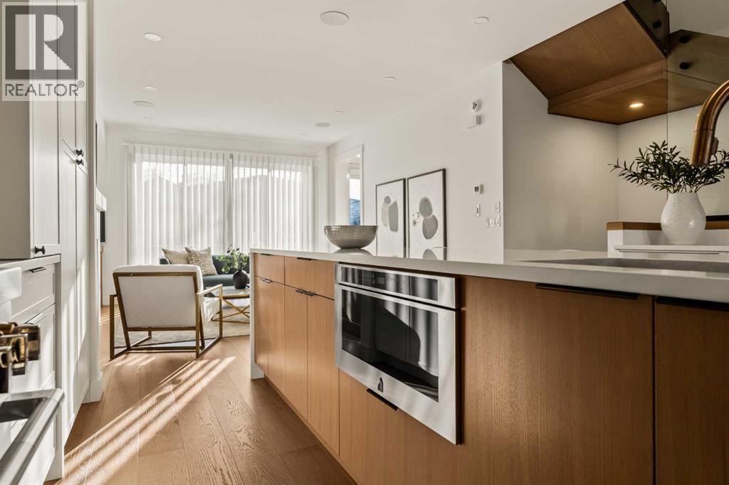 Stunning luxury 3-storey semi-detached residence offering 4 bedrooms, 4.5 bathrooms, a private south-facing backyard, fully air conditioned & ideally located in the heart of highly sought-after Altadore. Showcasing exceptional curb appeal with a gorgeous front elevation, this modern home is filled with natural light from expansive windows & features, thoughtful design & high-end upgrades throughout.The inviting front entry is both stylish & functional, complete with a built-in bench, coat hooks, & smart shoe storage. A front dining room sets the stage for elegant entertaining, while the heart of the home is the extensively upgraded central kitchen, anchored by a large waterfall island. Highlights include full-height cabinetry, deep lower drawers, soft-close hardware, a built-in pantry, & custom hood fan. Premium JennAir stainless steel appliances include a French-door refrigerator, gas range, built-in microwave, garburator & dishwasher. Across from the island, additional built-in cabinetry & counter space feature a beverage cooler.The rear living room is warm & refined, centred around a gas fireplace with recessed built-ins & custom millwork. Ten-foot-wide sliding patio doors open onto a south-facing exposed aggregate deck, seamlessly blending indoor & outdoor living. A spacious rear mudroom offers a closet, bench, & coat hooks, along with a private powder room featuring a vessel sink & sleek linear mirror.The second level includes the primary retreat featuring a generous bedroom & a spa-inspired 5-piece ensuite with a freestanding soaker tub surrounded by floor-to-ceiling tile, heated floors, a custom walk-in glass steam shower with rainfall shower head & built-in bench, dual vanity, & a walk-in closet with custom organizers, drawers, and a full-height mirror. Two additional bedrooms, complemented by a beautiful 4-piece bathroom & a thoughtfully designed laundry room with abundant cabinetry, counter space, & sink.The third level offers incredible flexibility wi th a bright loft-style bonus room featuring a built-in media centre & wet bar with beverage cooler, a separate home office, a full four-piece bathroom, & access to a private south-facing balcony. This level can also easily function as a studio-style 5th bedroom.The fully developed lower level is equally impressive, featuring a family room with wet bar & custom cabinetry, a 10-foot-wide glass-enclosed home gym with rubber flooring, a 4th bedroom, & a 3-piece bathroom. This level is roughed-in for in-floor heating. Built-in speakers are installed throughout the home & centrally wired to the mechanical room, & the property is also roughed-in for a central vacuum system.Outside, the backyard has been upgraded with turf for low-maintenance living, while the deck offers the perfect space for outdoor furniture. Altadore remains one of Calgary’s most desirable inner-city communities, offering quick access to Glenmore Athletic Park, Marda Loop, River Park off-leash, Sandy Beach, schools and more! (31533758)