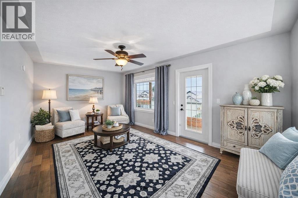 In Gleneagles — one of Cochrane’s most adored communities — families choose this neighbourhood for the quiet streets, mountain views, and excellent school access. Glenbow Elementary, École Manachaban Middle School, and Cochrane High School (your designated catchment) are all close by, making daily life easy and connected for kids of all ages.Set against the backdrop of the Rockies, this move-in-ready home offers immediate possession and over 2,500 sq.ft. of refreshed, comfortable living. The exterior of the home has been virtually painted to give you an idea of what you can easily do to the home. From the moment you arrive, the wide driveway, double garage, and sunny front balcony create a warm first impression — the kind that tells you there’s room here for family, guests, and life as it grows.Inside, everything feels new again. Fresh paint, brand-new carpet, hardwood floors, and updated fixtures give each room a clean and inviting feel. The main floor centres around a bright, functional kitchen with granite counters, a full-height stone backsplash, a large island with prep sink, and a custom bar nook that easily becomes the morning coffee spot or evening wind-down space. Oversized windows fill the main level with natural light, while the living room fireplace adds a sense of comfort that anchors the home.Step outside and the lifestyle expands. A private, two-tier deck overlooks mature landscaping and open green space, creating an ideal backdrop for BBQs, family gatherings, or quiet evenings outdoors. Kids will love the hidden park just beyond the yard — a safe, car-free shortcut to hours of play.Upstairs, a west-facing bonus room offers access to the front balcony, giving you sunrise coffees and sunset views over the valley. Four bedrooms complete the upper level, including a peaceful primary suite with French doors, a second fireplace, a jetted tub, dual sinks, and a walk-in shower.The lower level is ready for future plans with a framed bedroom, cold storage , rough-ins for a wet bar, additional laundry, and a roughed-in bathroom with the tub already installed.But the true standout is the comfort behind the walls. A whole-home boiler system provides in-floor heating across every level — even the garage — with 17 individual heating zones. The boiler, manifold, and automated controls were fully replaced in 2022, delivering even temperatures, warm floors, and noticeably lower monthly bills. A professional-grade HRV system keeps air fresh year-round, and the heated garage includes two plumbed floor drains tied to town sewer for effortless winter living.Surrounded by pathways, parks, and breathtaking views, this home brings together efficiency, warmth, and family-friendly living — all in one of Cochrane’s most scenic and school-rich neighbourhoods. It’s more than a house. It’s the beginning of a lifestyle that feels easy, elevated, and ready the moment you arrive. (31534187)