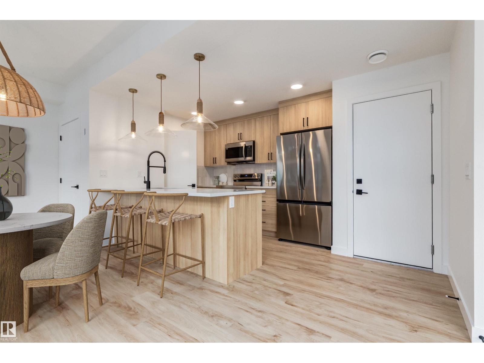 Discover contemporary living in Glenridding Essentials featuring the thoughtfully designed Birch model by award-winning Rohit Homes. This beautifully designed 3-storey showcases the serene Ethereal Zen interior palette. This stylish townhome includes 3 well-proportioned bedrooms, 2.5 bathrooms, and a double attached garage, blending functionality with modern design. The open-concept main floor is ideal for entertaining, with a highly efficient kitchen layout, dedicated pantry, and seamless flow between the living and dining areas. Enjoy not one, but private balconies, perfect for morning coffee or evening relaxation. The upper level features a spacious primary bedroom with ensuite, two generously sized secondary bedrooms, and convenient upper-floor laundry. Ideally located close to schools, parks, interconnected walking trails, Jagare Ridge Golf Course, Whitemud Creek Ravine, and the Currents of Windermere shopping and dining district. *Under construction, photos show layout and finishes, unit may differ. (33725581)
