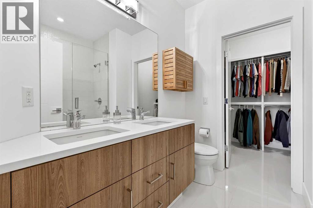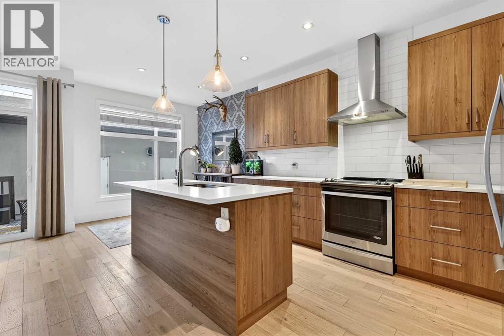 Luxury in the Heart of KillarneyPerfectly positioned on a tree-lined street directly across from the Killarney Aquatics Center and park, this sophisticated rear-unit townhome offers a premium blend of privacy and urban convenience. The main level features soaring 9' ceilings and quality engineered flooring throughout an inviting, open-concept floor plan. The centerpiece kitchen is designed for both style and utility, boasting quartz countertops, a central island, a full appliance package, and ample storage within extended-height cabinetry and a separate pantry. The living area, anchored by a cozy gas fireplace, flows effortlessly into the dining space, creating an ideal layout for daily living and entertaining.The upper level is thoughtfully configured with two primary bedrooms, each offering the convenience of its own private ensuite. The main primary suite includes a walk-in closet and a 4-piece ensuite with dual sinks. Downstairs, the fully developed basement provides valuable additional living space, featuring a large recreation room, a quiet private office, a well-appointed 4-piece bath, and dedicated laundry and storage area. Includes central air conditioning and a water softener system. Outside, the property features a single garage and a private outdoor area perfect for enjoying the vibrant neighborhood atmosphere. This home offers the rare opportunity to live just steps away from Killarney’s local cafés, boutique shops, and premier recreation facilities while maintaining the quiet retreat of a rear-positioned unit. (31534987)