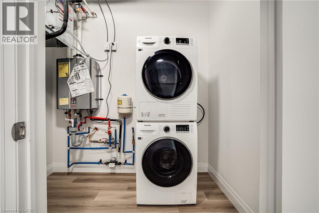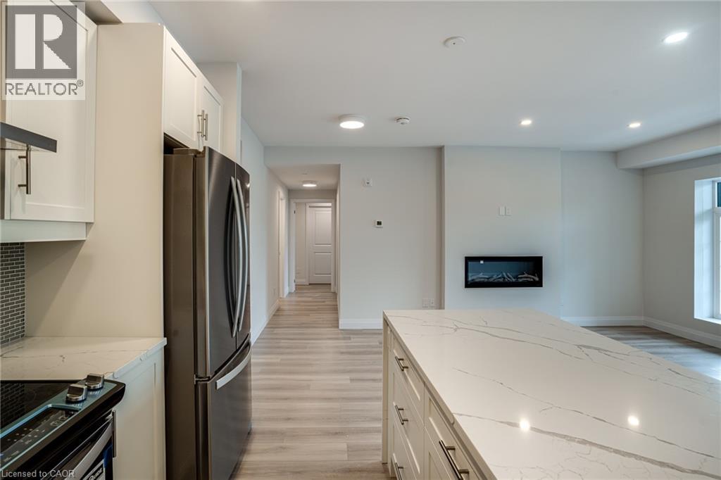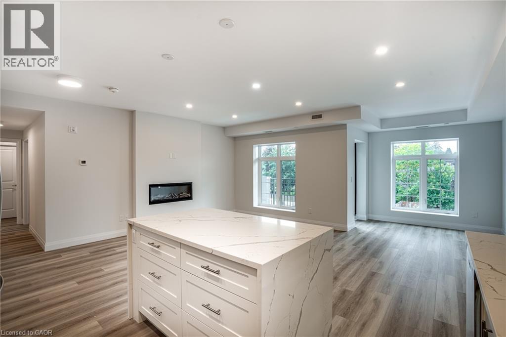Seize the opportunity to own one of the city's newest luxury low-rise condos in the heart of Ancaster. In the Sulphur Springs model. enjoy 2 spacious bedrooms plus a den. 2 bathrooms, 2 parking spots, 2 lockers. The impressive amenities include a gym, media room, party room and open-air rooftop terrace lounge with build-in BBQs and outdoor kitchen. Nestled among mature trees, it's conveniently located with in walking distance top all the shopping in the Ancaster core while being close to highway access. The open-concept layout combines the living room, dinning room, and kitchen, making it ideal for entreating friends and family. The spacious master bedroom includes a walk-in closet and a 4-piece ensuite, while a den/office provides added versatility. Enjoy the convenience of a second full bathroom and dedicated laundry area. Relax on your private balcony with a morning coffee or an evening glass of wine. Additional highlights include luxury vinyl flooring throughout, elegant quartz countertops, and stylish pendant lighting over the island. Don't miss the opportunity to experience all that this exceptional unit had to give. (70054958)