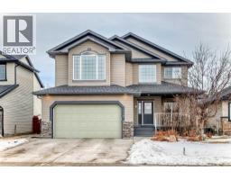WELCOME to our exceptionally well maintained FORMER SHOWHOME home that offers 3,628 ft² of living space, thoughtful upgrades, and a prime family-friendly location. Situated directly across the street from Prairie Waters Elementary School and St. Gabriel the Archangel Catholic School, the home enjoys immediate access to two highly regarded schools, expansive green space, playgrounds, and convenient Calgary Transit access, including the nearby Purple MAX bus stop.The bright, open main floor features vaulted ceilings, large windows, upgraded maple cabinetry, a spacious island with eating bar, a walk-through pantry, and a great room with gas fireplace and built-in bookcase. Main floor laundry, a mudroom with built-ins, and a two-piece powder room add everyday convenience. Upstairs includes three bedrooms, a vaulted bonus room, and a primary suite with a five-piece ensuite, soaker tub, and walk-in closet.The fully finished basement adds two additional bedrooms, a renovated four-piece bathroom, and two separate recreation areas. You’ll appreciate the comfort of air conditioning, underground sprinklers, and a fully finished heated double garage with radiant heat, workbench, and cabinetry. The backyard features a large deck, a parking pad ideal for an RV, and a powered 8x15 hobby shop with overhead door. A well-rounded home in a location that truly supports family living. (31535320)