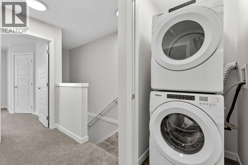 StreetSide proudly presents this exceptionally popular interior-unit townhome, where expansive living areas meet modern comforts and sophisticated finishes. The thoughtfully designed floorplan features three spacious upper-level bedrooms and two and a half well appointed bathrooms, complemented by a versatile lower-level den perfect for a home office or quiet retreat. The heart of the home is an inviting open-concept main floor, anchored by a large gourmet kitchen featuring a functional breakfast bar for casual dining. This bright living space transitions seamlessly to a private balcony, offering a perfect setting for outdoor relaxation.The interior showcases high end craftsmanship, including modern dark slab-style cabinetry with a full bank of drawers for maximum storage. The kitchen is further elevated by polished white quartz countertops and a full suite of premium stainless steel appliances. Durable luxury vinyl flooring runs throughout the primary living areas, while the stairs and upper level are finished with plush carpet over an 8lb underlay for superior comfort. Additional conveniences include an attached double car garage and a lifestyle defined by maintenance free living and professionally maintained landscaping.Located in the vibrant community of Rangeview, Calgary’s premier garden-to-table neighborhood, this home offers a unique balance of village-like serenity and urban convenience. The development centers around a lush courtyard garden, providing residents with unparalleled access to community gardens, educational programming through the Home Owner’s Association, and year-round local markets. Enjoy the ease of proximity to local amenities and major routes while living in a master-planned community that celebrates connectivity and style. (31536328)