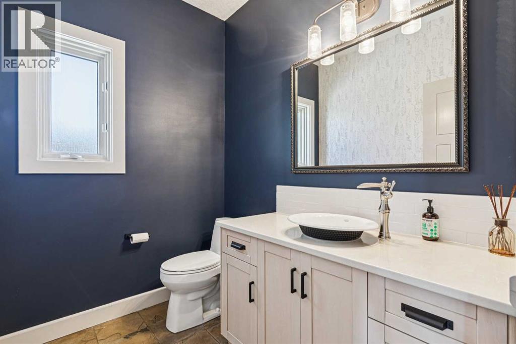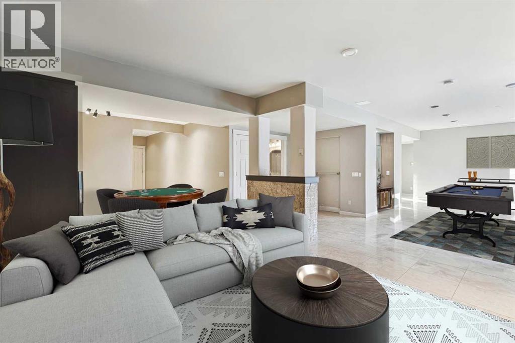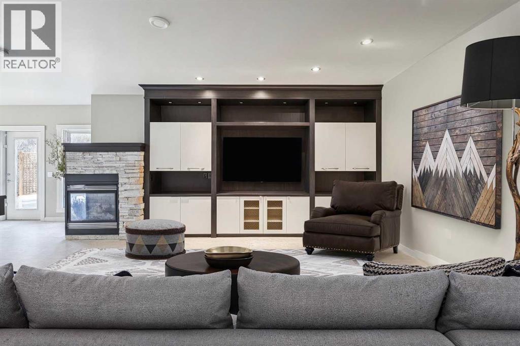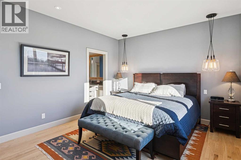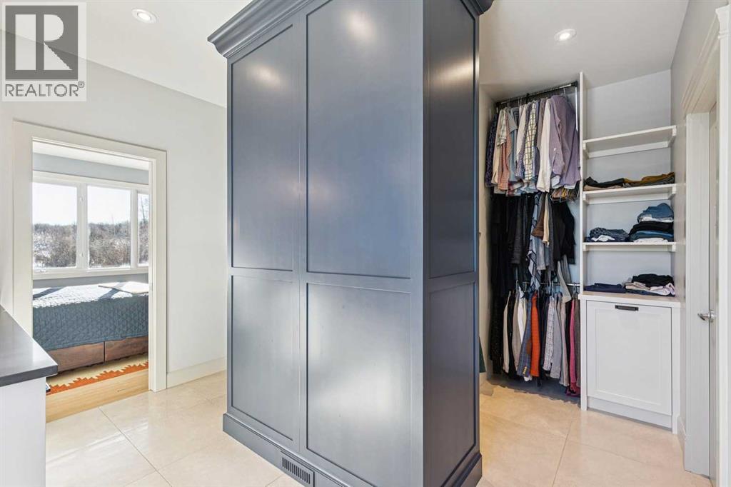 The French countryside awaits you in this spectacular 2,900 square foot one and one-half storey bungalow on a two-acre lot in the three-time award-winning “Canada Community of the Year”, Elbow Valley. Nestled in the Elbow River Valley, just west of Calgary, this prestigious community offers genuine estate living alongside unrivalled amenities. This beautifully upgraded and renovated home offers a dramatic open staircase, two storey foyer and great room ceilings, refinished quality hardwood floors throughout the main floor, staircases, and upper level. The professionally renovated kitchen was expanded and features shaker-style cabinets with soft- close doors, quality Wolf and JennAir stainless steel appliances, a feature center island with a special one-piece curved leather-finished granite cooktop. The formal dining room, warm and inviting with its coffered ceilings and hardwood floors, is perfect for entertaining. The main floor primary bedroom features a walk-through closet with custom built-ins and a luxurious ensuite bathroom that has heated porcelain tile floors, 10-mil glass shower, quartz vanity countertops, and double sinks. Overlooking the great room below, the upstairs boasts two large bedrooms, each with a full ensuite bath, walk-in closets, and incredible views. Professional walkout basement development is perfect for the mature family with a billiards/games room, a family room with a built-in entertainment center, a custom bar, a second fireplace, a full bath, two more bedrooms with new flooring, and multiple storage spaces to utilize by design. No-maintenance landscaping designed to blend into the natural surroundings features an exposed aggregate patio, a dry creek bed, a continuous curb, a natural Rundlestone exterior, and total privacy. Oversized triple attached heated garage with a developed 300 sq. ft. bonus room, perfect for a man cave, home office, or storage. Walk-up staircase to the garage, slab heating in the basement, upgraded mechanical, a nd 200-amp service. A blend of smooth-finished and knocked down stipple ceilings, renovated baths, upgraded lighting, solid core doors, nine-foot ceilings, laundry on the main and upper levels, clad windows in good condition, with three new triple pane windows added. From its sweeping views and prime location to its thoughtful design and upgrades, this beautiful Elbow Valley home is an absolute must-see! (31537358)