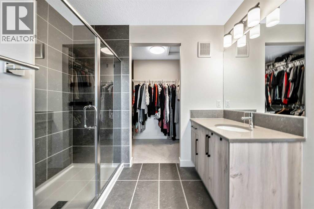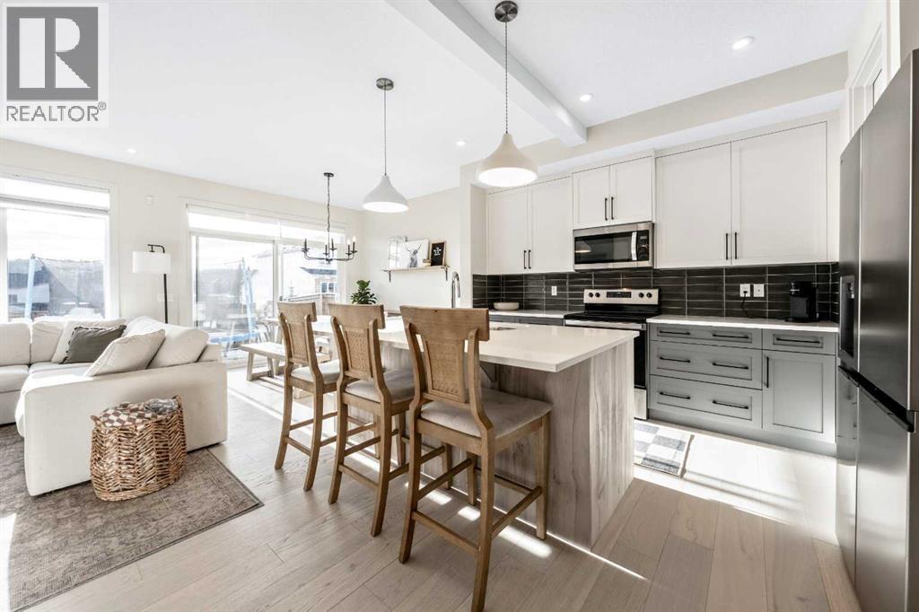 Situated on a quiet street in the centrally located community of Greystone—just steps from a park & playground—this beautifully upgraded home features a sun-filled, fully fenced south-facing backyard, ideal for both entertaining and everyday living. Thoughtfully designed with an open, modern layout, this 3-bedroom, 2.5-bath home offers over 1,762 sq. ft. of stylish living space and showcases numerous premium upgrades throughout.The main floor makes an immediate impression with an elegant 8’ glazed front door, 9’ ceilings, oversized windows, and refined 8’ interior doors. Engineered hardwood flooring flows seamlessly through the foyer, hallway, great room, kitchen, and dining nook, creating a warm and cohesive atmosphere. The kitchen is a true showpiece, featuring a large single-level 7’ entertainment island with breakfast bar, quartz countertops, and a spacious walk-in pantry with 8’ French doors. Additional highlights include 42” upper cabinetry with dropped bulkhead, soft-close doors and drawers, dedicated pots-and-pans storage, and a full stainless steel appliance package, including a refrigerator, smooth-top electric range, microwave/hood fan, and built-in dishwasher.The bright and inviting great room and dining area are flooded with natural light from oversized windows and an 8’ wide sliding patio door, while the striking Napoleon Entice fireplace adds both style and warmth—perfect for relaxing evenings or hosting guests.Upstairs, the primary suite offers a private retreat complete with a well-appointed 4-piece ensuite featuring dual quartz vanities with undermount sinks, an oversized shower, ceramic tile flooring, and a private water closet with a window. A generous walk-in closet is conveniently accessed through the ensuite. The upper level is completed by a spacious front bonus room, two additional well-sized bedrooms with ample closet space, a full main bathroom with quartz countertops and tile flooring, and a convenient second-floor laundry room finishe d with tile.The unfinished basement features 9’ ceilings, providing an excellent opportunity for future development and allowing the new owners to create a space perfectly tailored to their needs—a true blank canvas.Bright, modern, and ideally located in a family-friendly community, this home offers exceptional value and versatility and truly checks all the boxes. (31537988)