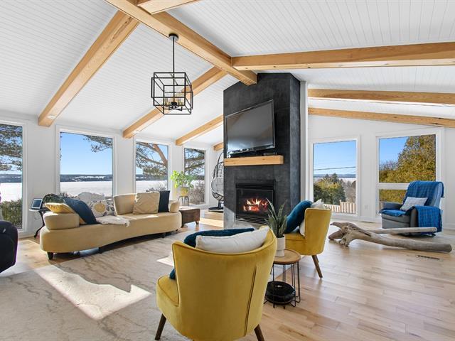 A place where time slows down. Set on a private lot of over 82,000 sq. ft., this fully renovated property offers spectacular views of the Ottawa River. Abundant natural light, flowing living spaces, a walk-out basement, an in-ground pool, and multiple terraces make this home a true retreat, blending elegance, comfort, and a strong connection to nature. (47618535)