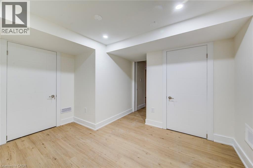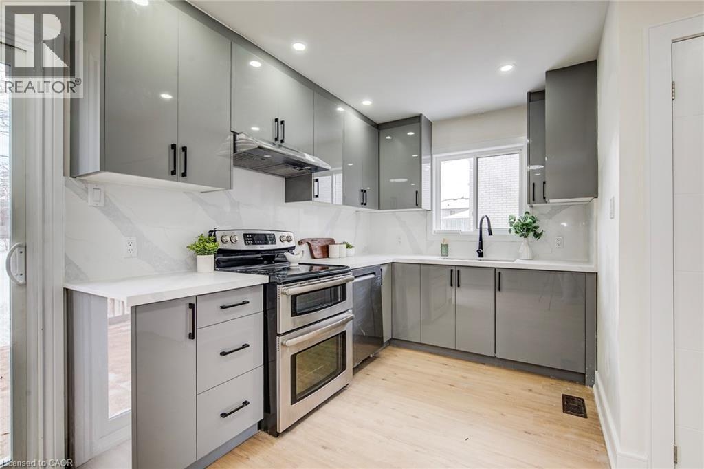 This extensively renovated, carpet-free semi-detached home features over $150,000 invested in quality upgrades and offers 3+1 bedrooms and2.5 bathrooms, including a fully finished basement with a side entrance. The comprehensive upgrades include a new furnace, new air conditioner,upgraded electrical panel, modern interior doors, updated baseboards and trim, new flooring throughout, fresh paint, pot lights throughout thehome, extended kitchen countertops for added storage, a dedicated pantry, a wet bar, a modern designed washroom with glass shower doors,and nearly new appliances, along with black soffits, eavestroughs, and rain downpipes enhancing the exterior appeal. The bright basement isenhanced by large windows in both the living area and bedroom, allowing for excellent natural light, and includes a stackable laundry setup.Situated on a deep 150-ft fully fenced lot, the property also features newly built decks at both the front and back, ideal for outdoor enjoyment.The home offers parking for up to 4 vehicles. Ideally located directly across from Stanley Park Senior Public School, within walking distance toStanley Park Mall, Canadian Tire, Zehrs, the Stanley Park Community Centre, and transit, and just minutes to shopping centres, local businesses,the GO Station, and major highways, this move-in-ready home offers exceptional comfort, modern style, and everyday convenience. (70060239)