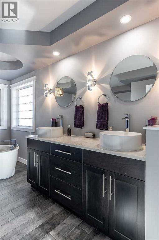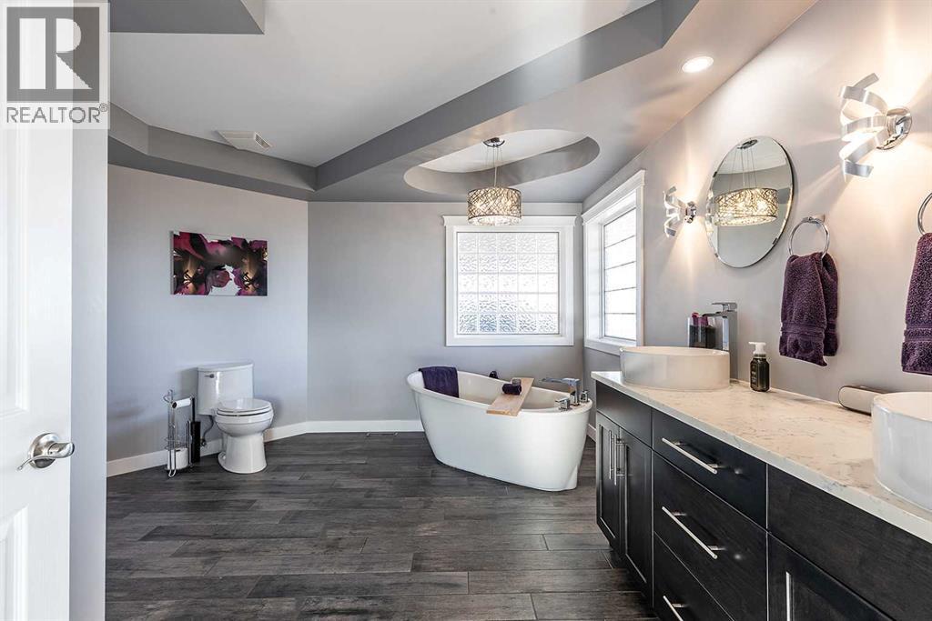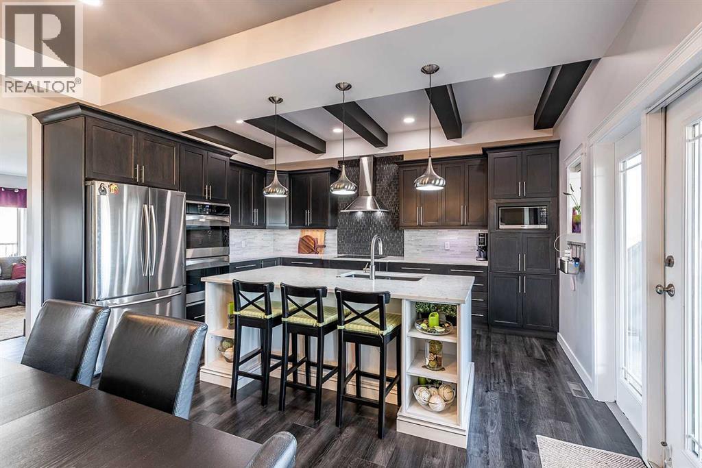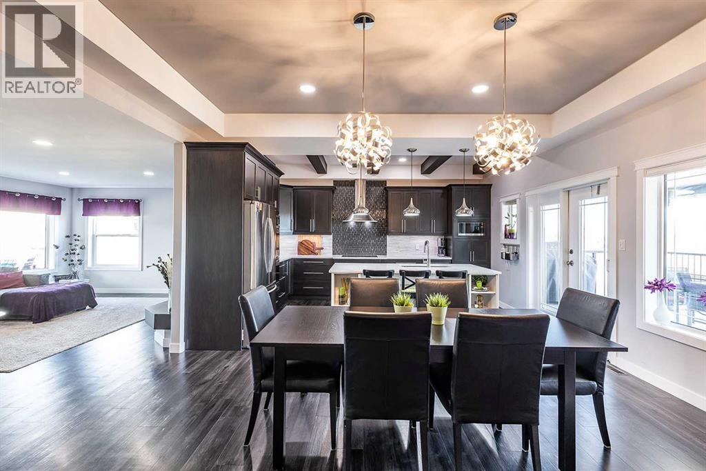 Executive bungalow backing directly onto the wide open coulees and extensive trail system of Southridge, offering stunning views and an unbeatable location. Both the exterior and interior of this home have been extensively updated, including new stucco, siding, and shingles replaced in 2025, creating exceptional curb appeal. Built with wheelchair accessibility in mind, this thoughtfully designed bungalow offers wide, functional spaces and an intuitive layout that makes it easily wheelchair friendly, while still appealing to a wide range of lifestyles. Inside, gorgeous luxury vinyl plank flooring flows throughout the main level, complemented by new window coverings in the main living areas on both the main and lower levels, enhancing both style and privacy. The show-stopping kitchen has been completely renovated by Wood Visions and features custom 8-foot soft-close cabinetry with an impressive array of thoughtful built-ins, including a custom coffee bar, built-in spice racks, a pull-out Lazy Susan, and integrated trash and recycling bins. Quartz countertops, an induction cooktop, and a double convection oven complete this highly functional and beautifully designed space. A large eat-at island and spacious dining area make it ideal for both everyday living and entertaining. Step outside to the impressive covered back deck complete with a wind wall, Duradek finish, and custom railing—an ideal space to relax while taking in the serene coulee views. The front living room is equally impressive, offering expansive windows, generous space for furnishings, and a modern TV feature wall accented by a sleek biofuel fire feature. A standout feature of this home is the oversized mudroom with custom built-ins and abundant storage, conveniently located off the oversized attached double garage (27x27). The main floor also includes a luxurious primary retreat showcasing coulee views, private access to the back deck, a walk-in closet, and a stunning 5-piece ensuite with a stand-alone soaker tub, custom tiled walk-in shower, and dual sinks. Down the hall, you’ll find an updated 4-piece main bathroom and a large second bedroom with its own walk-in closet. The fully finished walk-out lower level is flooded with natural light and offers a spacious family room and games area with a pool table (negotiable), two additional large bedrooms, a home gym that could easily function as a fifth bedroom, a third full 4-piece bathroom, a laundry area, and plenty of storage. Additional noteworthy updates include: on-demand hot water system (2019), furnace (2019), A/C (2022), washer and dryer (2022), new window coverings in the main living areas on both levels (2025), and all kitchen appliances (2015). Perfectly located and thoughtfully designed, this exceptional home offers an ideal floorplan for a growing family, those seeking main-floor living, or buyers looking for accessible design, all while embracing the beauty of its natural surroundings. (31541061)