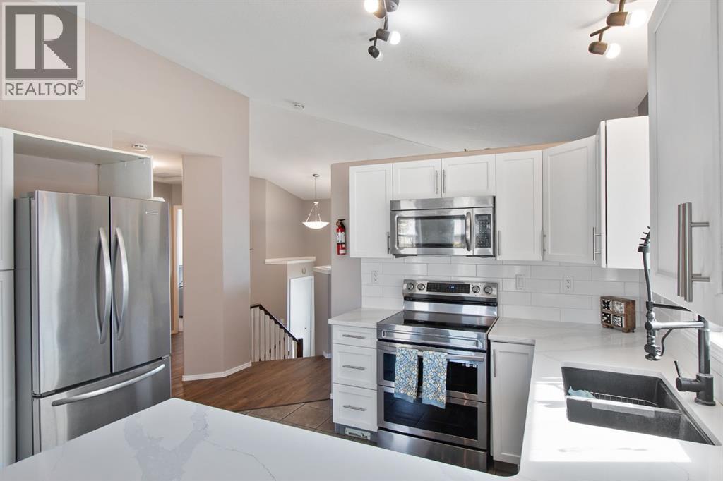 This beautifully updated bi-level offers 4 bedrooms, 3 baths, and a bright, open floor plan perfect for family living. Recent upgrades include new shingles (2022), hot water tank (2019), and a furnace heat pump (2024). The main floor boasts a wide open layout with plenty of natural light. From the dining room you can access the rear, 2 level cedar wood deck (built 2024) which overlooks the rear, fully fenced yard. Downstairs features a spacious recreation room with gas fireplace, two additional bedrooms, and a full laundry/mechanical room. Enjoy the crab apple trees located in the rear yard, and here you will also find the detached, double garage perfect for your vehicles and toys. Garage is fully winterized and plumbed for gas heat, making it functional year-round. This amazing home with great value and comfort inside and out, is located on a quiet cul de sac, in the friendly community of Penhold. Call your favourite Realtor today to schedule your viewing. (31543377)