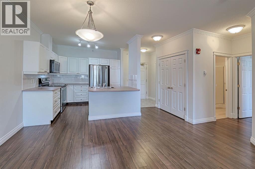 A RARE offering in the sought after complex of Beacon Hill, located in beautiful Shawnee Slopes. This is your opportunity to own a large 2 bedroom, 2 bathroom apartment condo on the TOP FLOOR. ***TWO TITLED UNDERGROUND PARKING STALLS*** The unit offers great South Eastern views from the balcony, which includes a gas BBQ outlet.The complex is very well managed and offers 2 gyms, 2 guest suites, a woodworking shop, a car wash bay with vacuum and secure underground parking for both owners and visitors. The location is excellent, with a short walk to Fish Creek Park and the LRT station, and easy access to Shawnessy Plaza with a wide variety of stores and services.The home features a spacious living room with a GAS FIREPLACE, a kitchen with plenty of cupboards, a kitchen island, and NEWER STAINLESS STEEL APPLIANCES. The primary bedroom includes a large 5PC ensuite and a walk-in closet, along with a second bedroom and an additional 4PC bathroom. Large laundry room (newer washer/dryer).The unit has just been FRESHLY PAINTED. Laminate flooring runs throughout, offering DUST FREE LIVING. Both bathrooms feature brand new LVP vinyl plank flooring. Large EAST facing windows bring in plenty of natural light and allow you to enjoy the sunrise. NOTE: there is an assigned storage locker for your convenience as well!If you are looking for a GREAT PLACE TO CALL HOME, book your private viewing NOW. This is a great opportunity and won’t last long. (31543915)