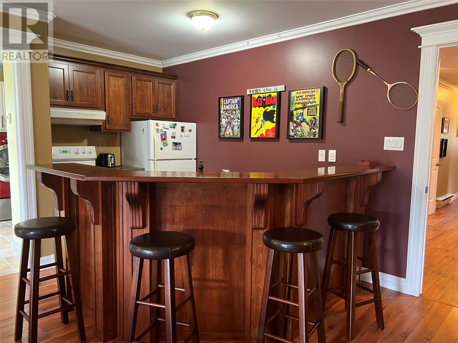 This stunning home offers ease of single-level living with a spacious layout. It features a large entryway and a beautiful foyer with a propane fireplace, leading to an open-concept living room, dining room, and kitchen. The kitchen boasts custom-built cabinets, a large island, a countertop range with a pot filler, and a double wall oven. The primary bedroom includes a walk-in closet and a full ensuite with a whirlpool tub. There are two additional bedrooms, a three-piece bath with a corner shower, an office with built-in shelving, a storage room, a large rec room with a wet bar and pool table, and a generously sized laundry room with folding table and lots of storage space. The home is wheelchair accessible and equipped with 200 AMP electrical service, a humidex system, electric heat. Outside, you'll find a double-paved driveway, a 16x20 storage shed, a 16x16 rear deck with storage space beneath, and an 8x10 deck off the rec room. Basement has a 14 X 24 storage room and access to crawlspace. The sale includes all appliances, including a fridge, countertop range, double wall oven, dishwasher, microwave, wine fridge, washer, dryer, bar fridge and stove, as well as the pool table and window coverings. Seller offering a $2,500 decorating bonus on successful closing which can be used to personalize your new home with new furniture or stylish decor of your choice! (30558356)