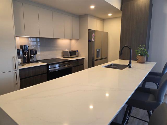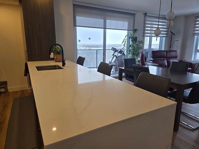 MOSAIC-LE RUBIS NEIGHBORHOOD! Lease transfer until June 30, 2027. Located on the 10th floor in a bright corner unit, this stunning 1,317 sq ft open-concept 2-bedroom apartment offers two large bedrooms, including one with an ensuite bathroom, as well as a modern kitchen with an island and quartz countertops. The very spacious living room perfectly complements this elegant and comfortable space. Enjoy exceptional common areas: heated indoor pool, gym, lounge with fireplace and pool tables, outdoor terrace, and much more. Close to all amenities, this prestigious unit stands out for its comfort and location! (48973936)